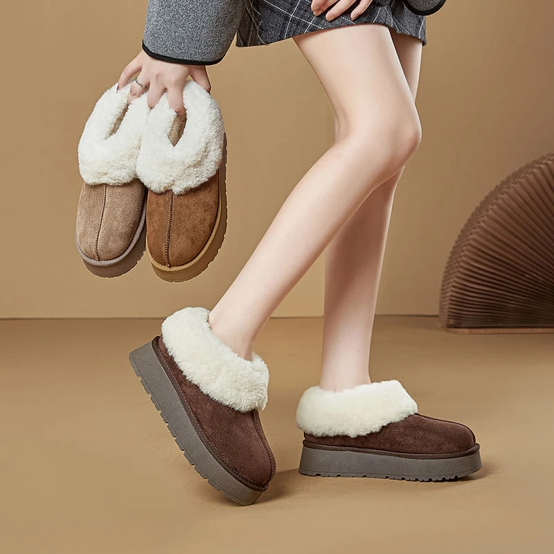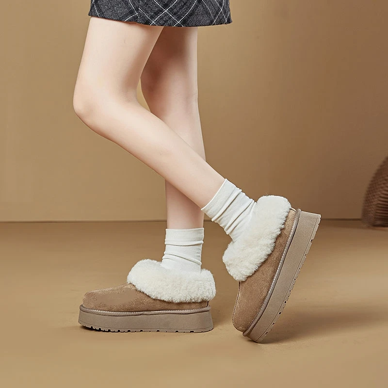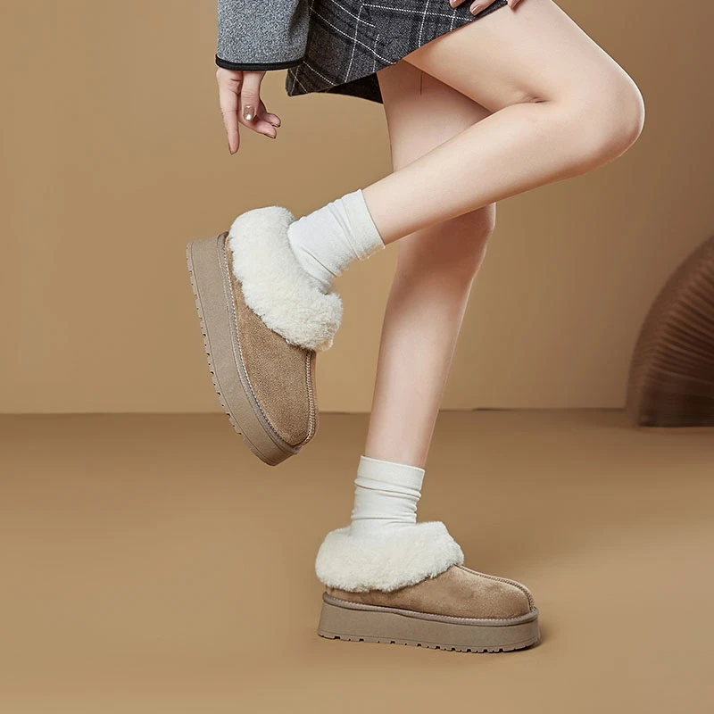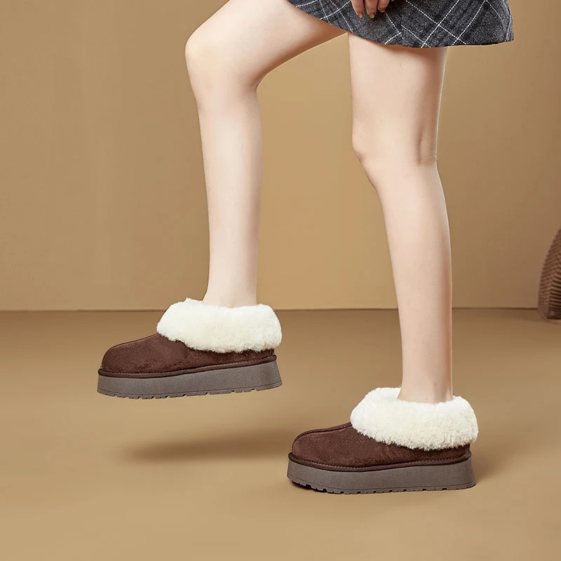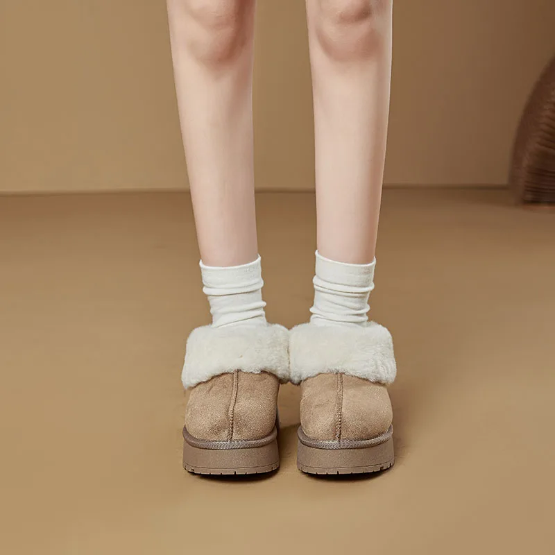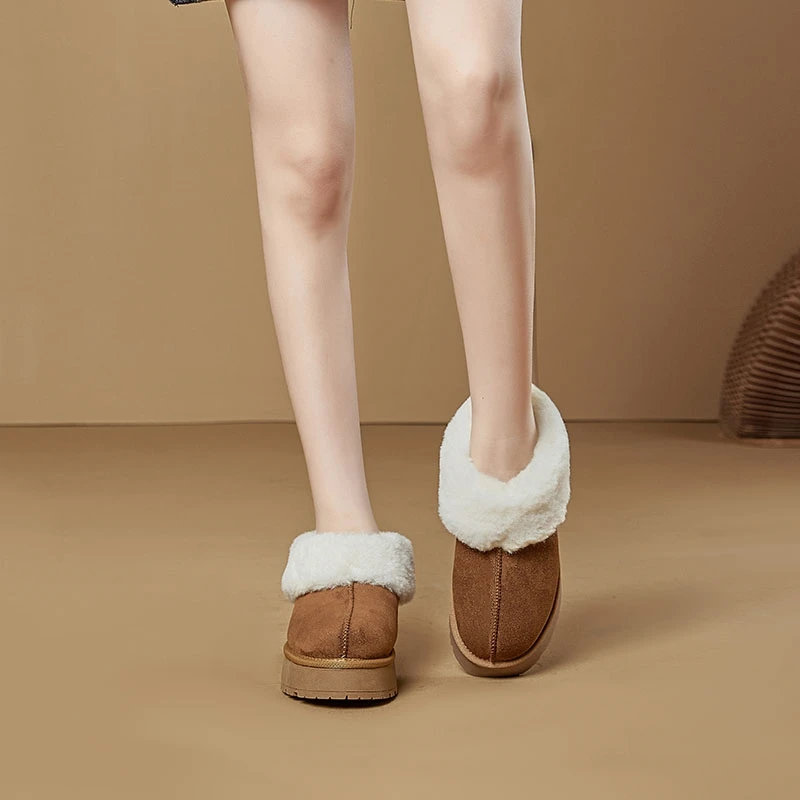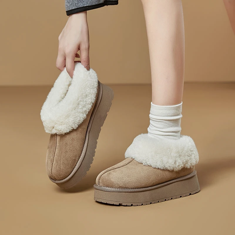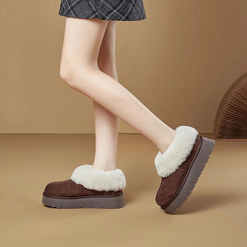 2025 nuovi stivali da neve da donna punta grande stivali invernali da donna corti peluche piatto per il calore scarpe imbottite in cotone femminile