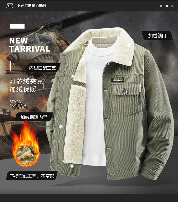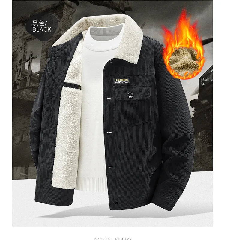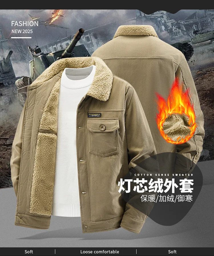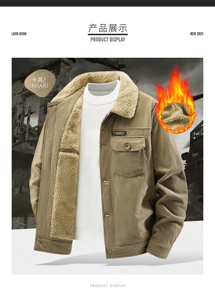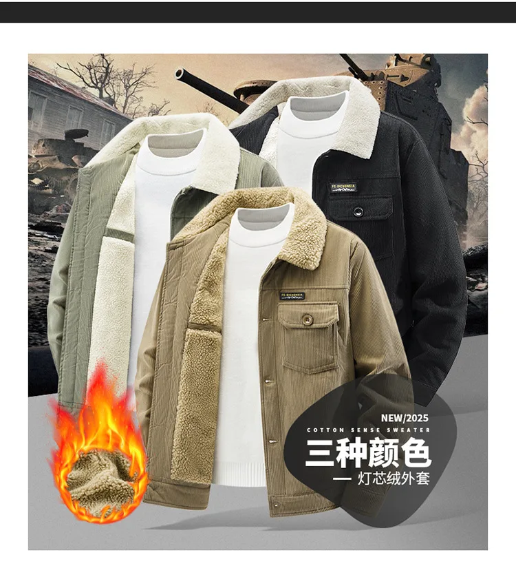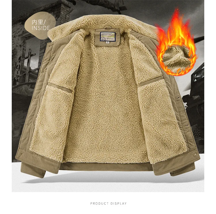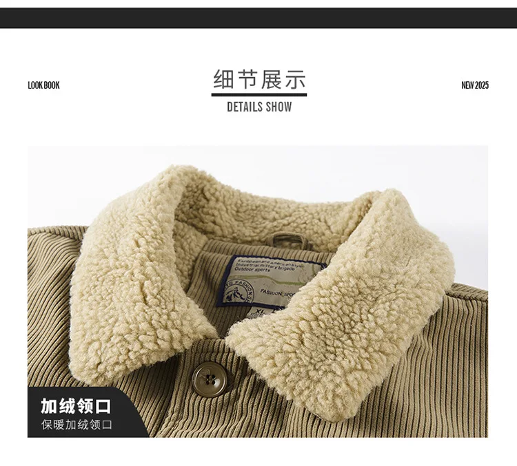 2025 Nuovi Uomini di Inverno Velluto A Coste In Pile Giubbotti Caldi Parka Cappotti Maschili Outwear Cappotti Casuali Uomini di Qualità Allentati Utensili Giubbotti