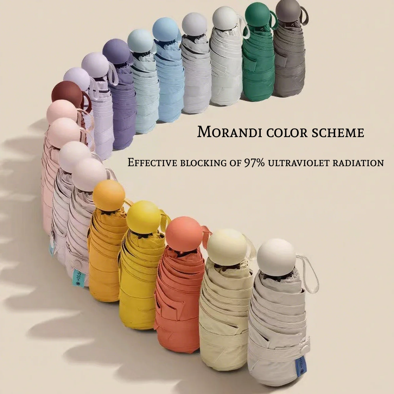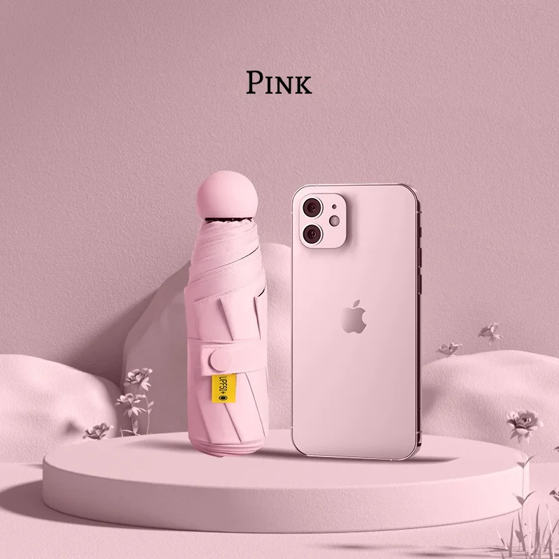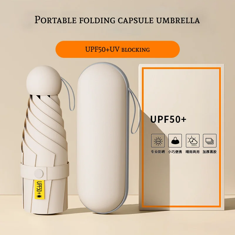 Nome del prodotto: Ombrello pieghevole compatto – Mini ombrello portatile resistente al vento con protezione antipioggia UV solare UPF 50+ (5 pieghe)