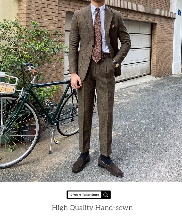 Doppiopetto, con motivo retrò a spina di pesce, questo abito spesso è perfetto per l’autunno e l’inverno. È perfetto per occasioni formali come matrimoni, feste, banchetti e riunioni di famiglia, ti fa sembrare più elegante e gentiluomo!