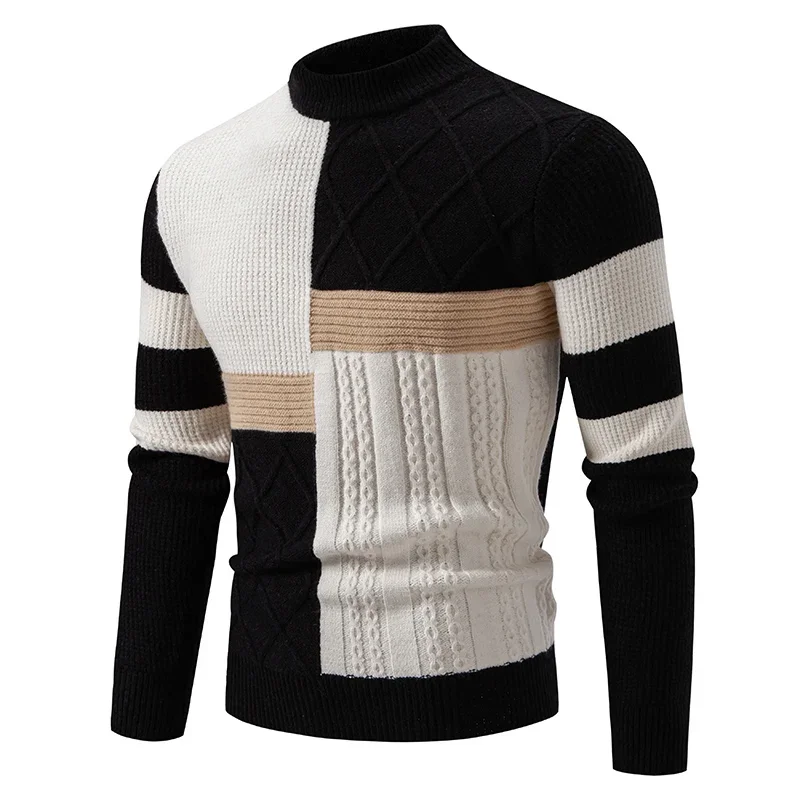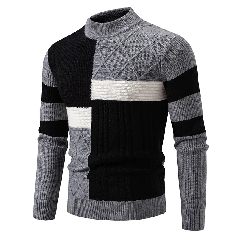 2025 Nuovo autunno e inverno da uomo di alta qualità Casual maglione a blocchi di colore caldo Top in maglia Abbigliamento uomo