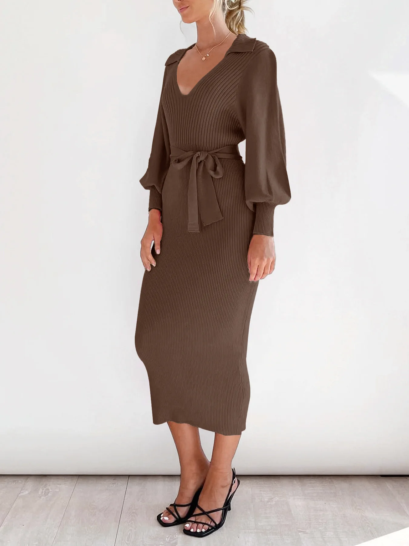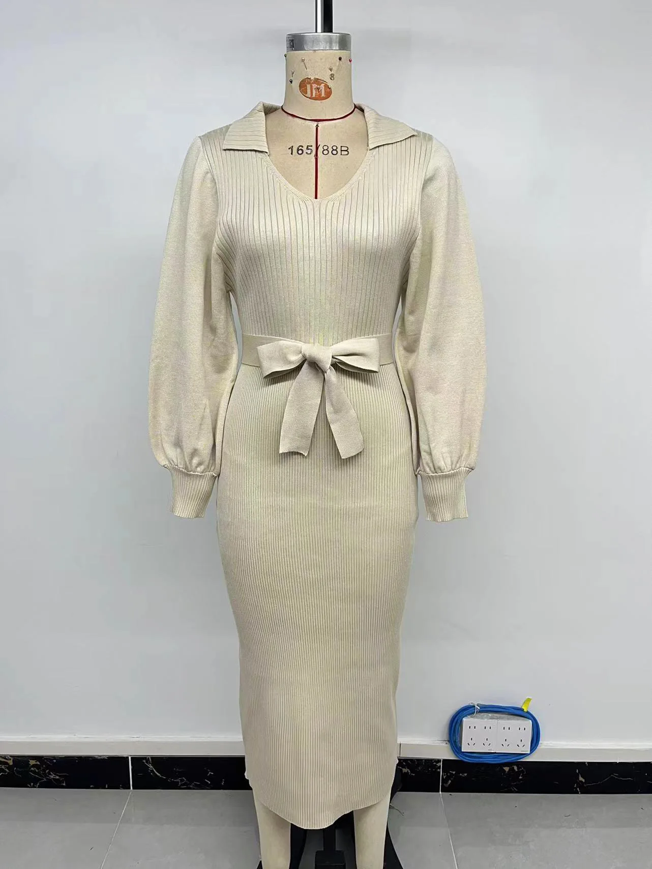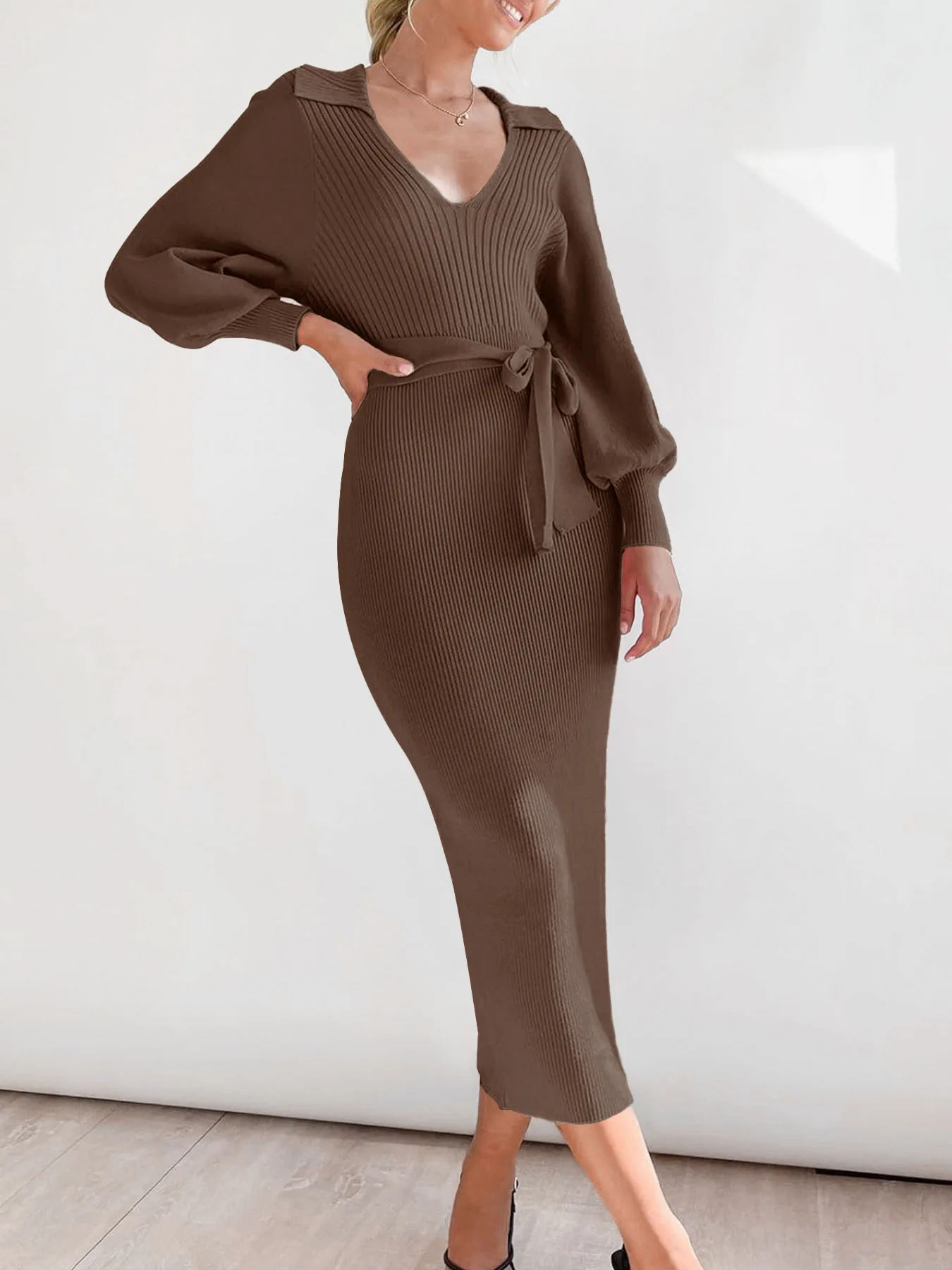 2025 Nuovo autunno e inverno elegante retrò leggero stile maturo maniche a lanterna scollo a V gonna maglione lavorato a maglia tinta unita 12025 Nuovo autunno e inverno elegante retrò leggero stile maturo maniche a lanterna scollo a V gonna maglione lavorato a maglia tinta unita