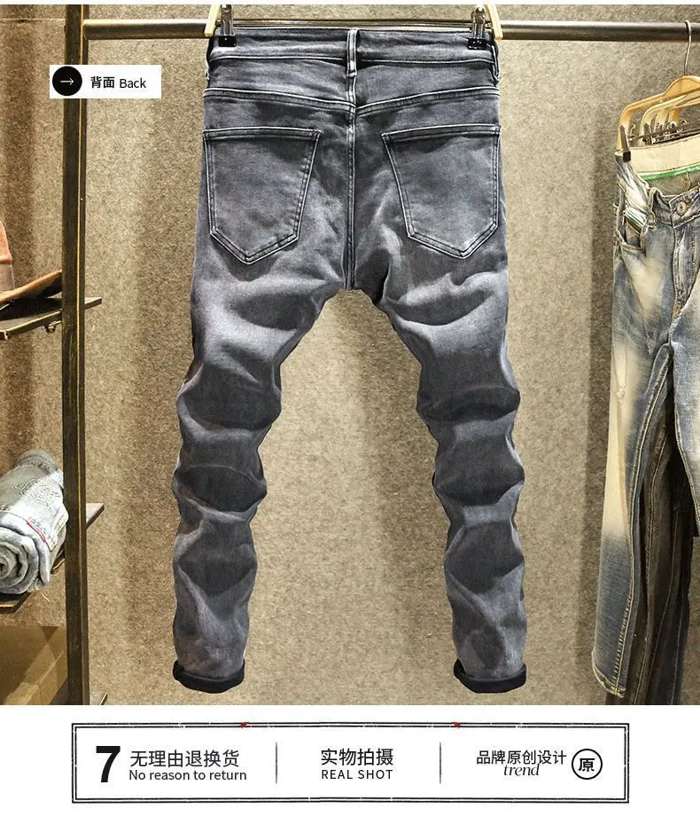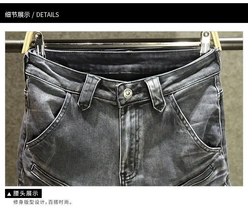 2025 Nuovo autunno e inverno Jeans neri e grigi Pantaloni lunghi da locomotiva di fascia alta da uomo Splicing Pantaloni attillati resistenti all'usura 12025 Nuovo autunno e inverno Jeans neri e grigi Pantaloni lunghi da locomotiva di fascia alta da uomo Splicing Pantaloni attillati resistenti all’usura