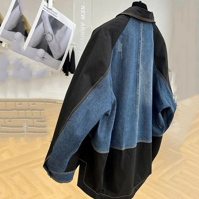 2025 Nuovo Autunno Giacca di jeans Cappotto Donna Splicing Blazer Denim Tuta sportiva Donna Maniche lunghe Giacca di jeans allentata Giacca a vento da donna