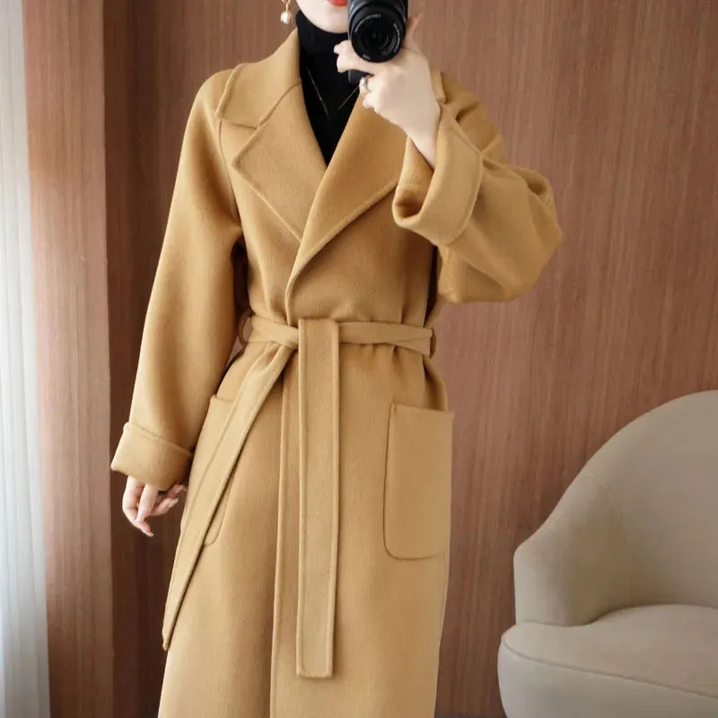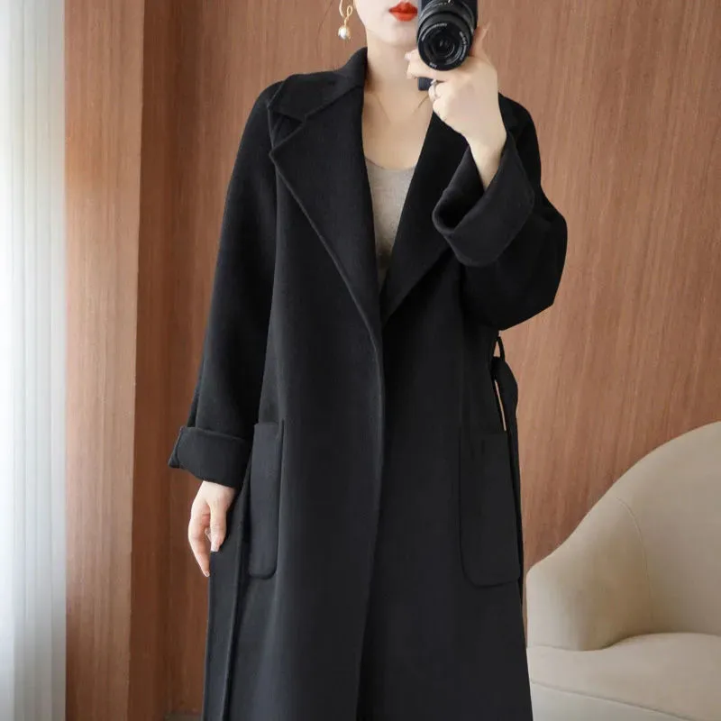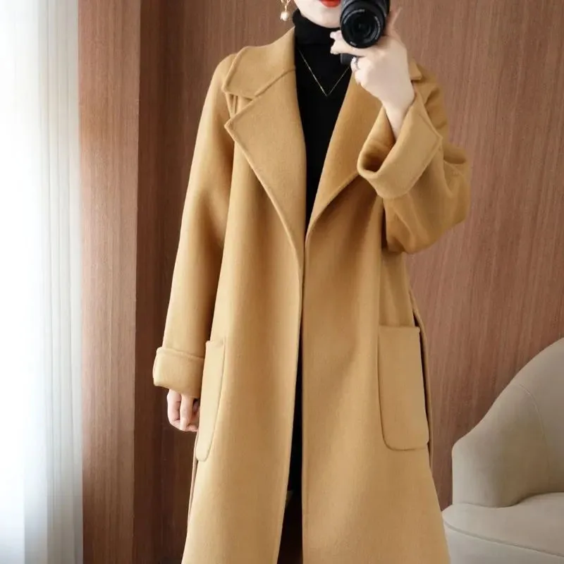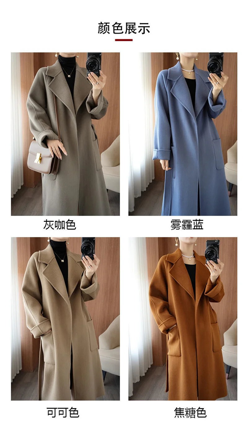 2025 Nuovo Autunno Inverno Donna Cappotto lungo di lana High-End Moda Double-Sided Cashmere Giubbotti Colletto con risvolto Cappotto casual femminile