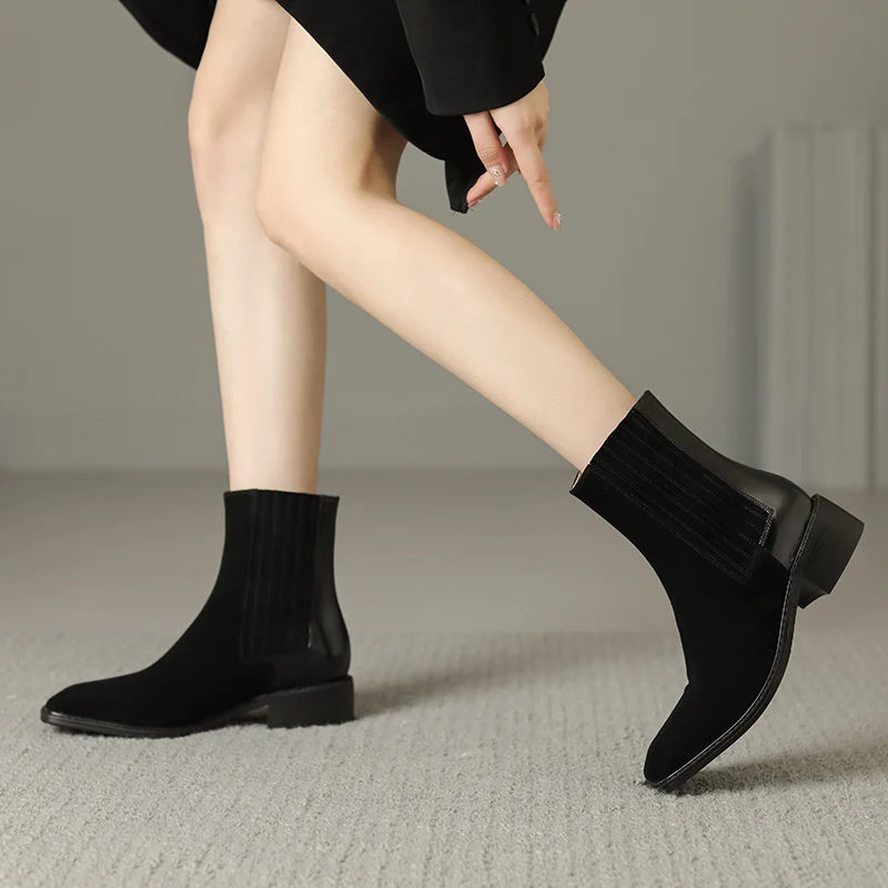 2025 Nuovo autunno/Witner Kid Stivali da donna in pelle scamosciata Stivaletti Scarpe da donna Stivali Chelsea retrò Scarpe fatte a mano in vera pelle