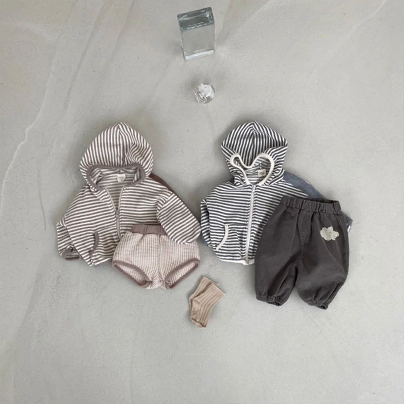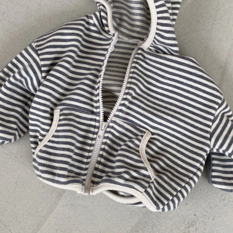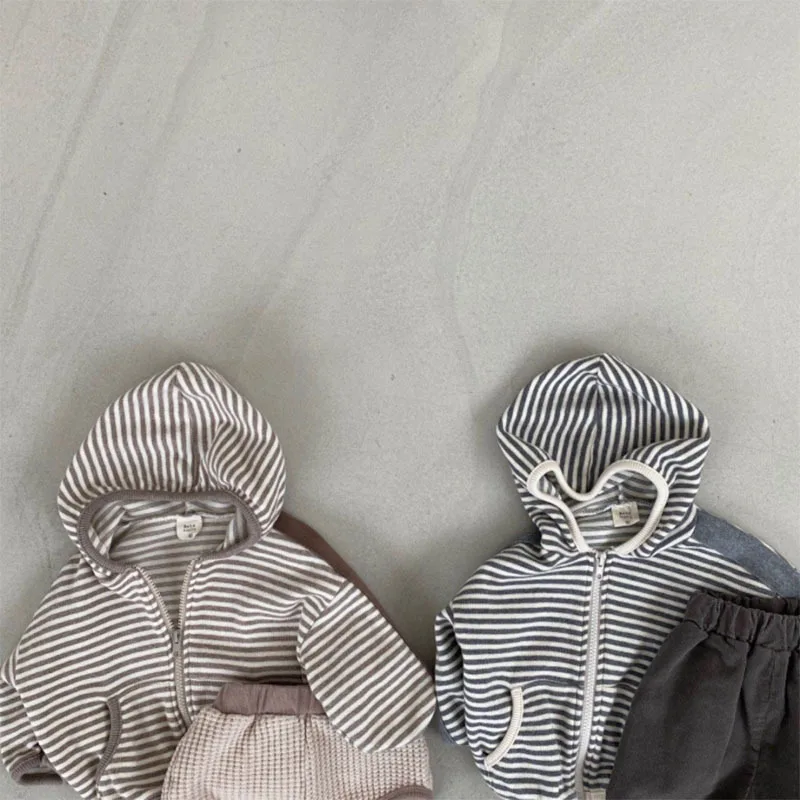 2025 Nuovo bambino autunno cappotto con cappuccio giacca in cotone a righe per bambini manica lunga bambini abbigliamento casual bambini ragazzi ragazze felpa con cappuccio 12025 Nuovo bambino autunno cappotto con cappuccio giacca in cotone a righe per bambini manica lunga bambini abbigliamento casual bambini ragazzi ragazze felpa con cappuccio