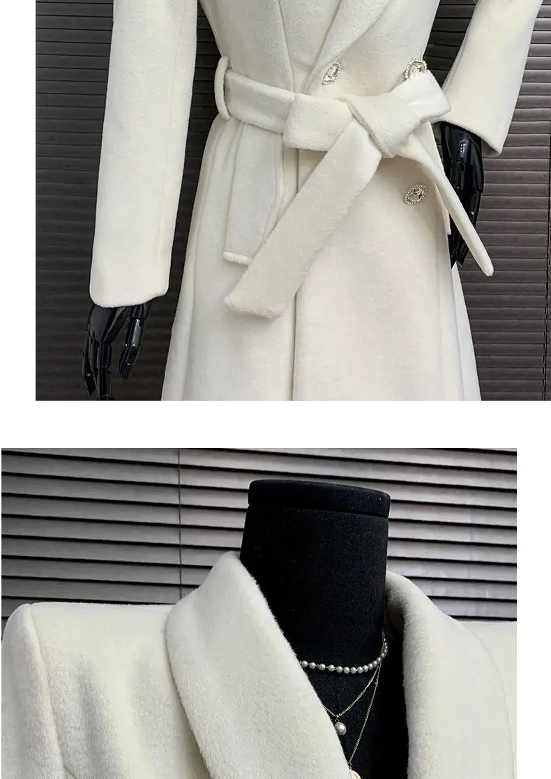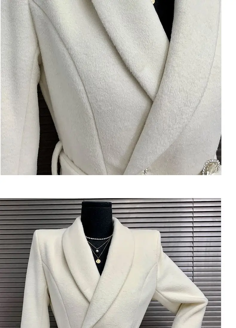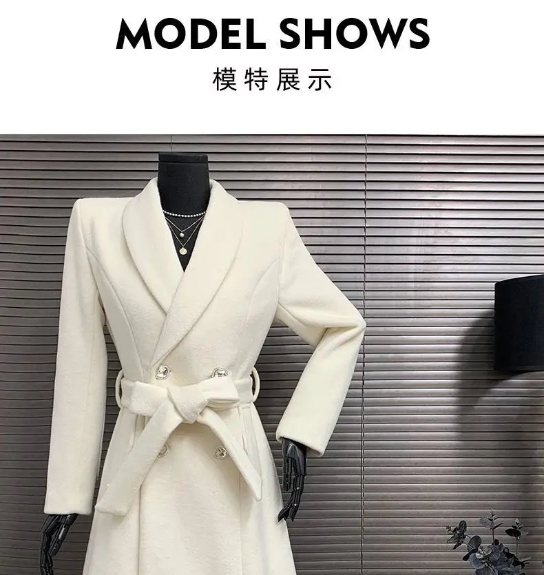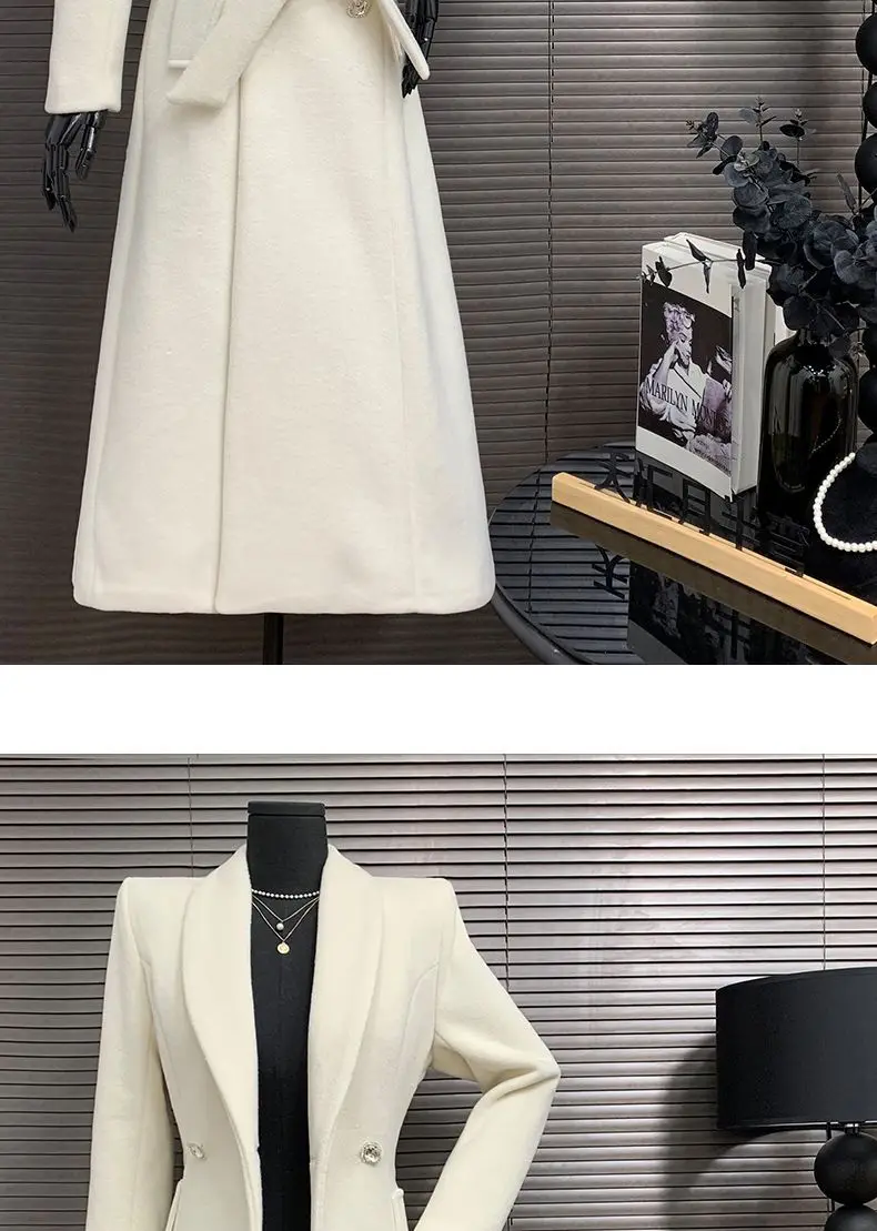 2025 Nuovo cappotto di lana da donna doppiopetto ispessito di alta qualità Autunno Inverno Cappotto di lana da donna bianco elegante alla moda H471
