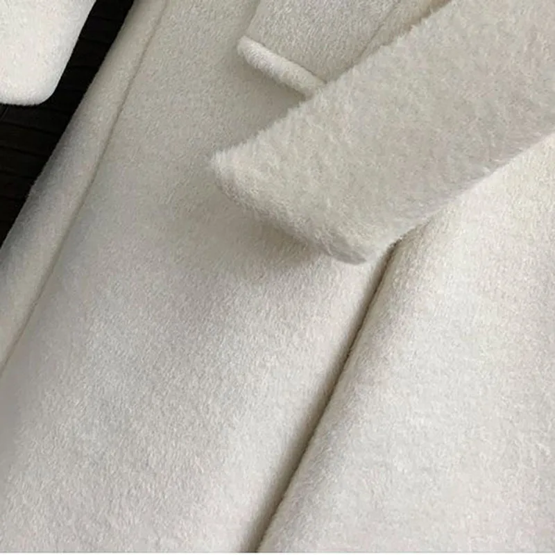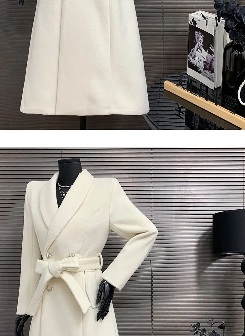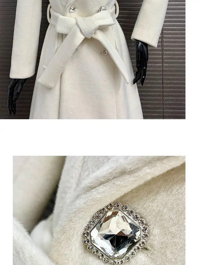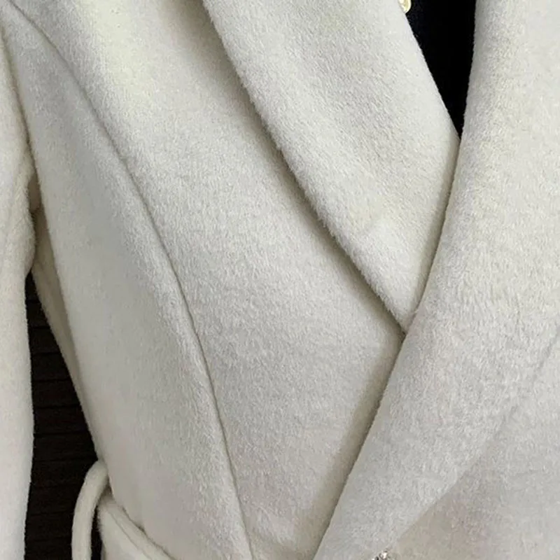 2025 Nuovo cappotto di lana da donna doppiopetto ispessito di alta qualità Autunno Inverno Cappotto di lana da donna bianco elegante alla moda H471