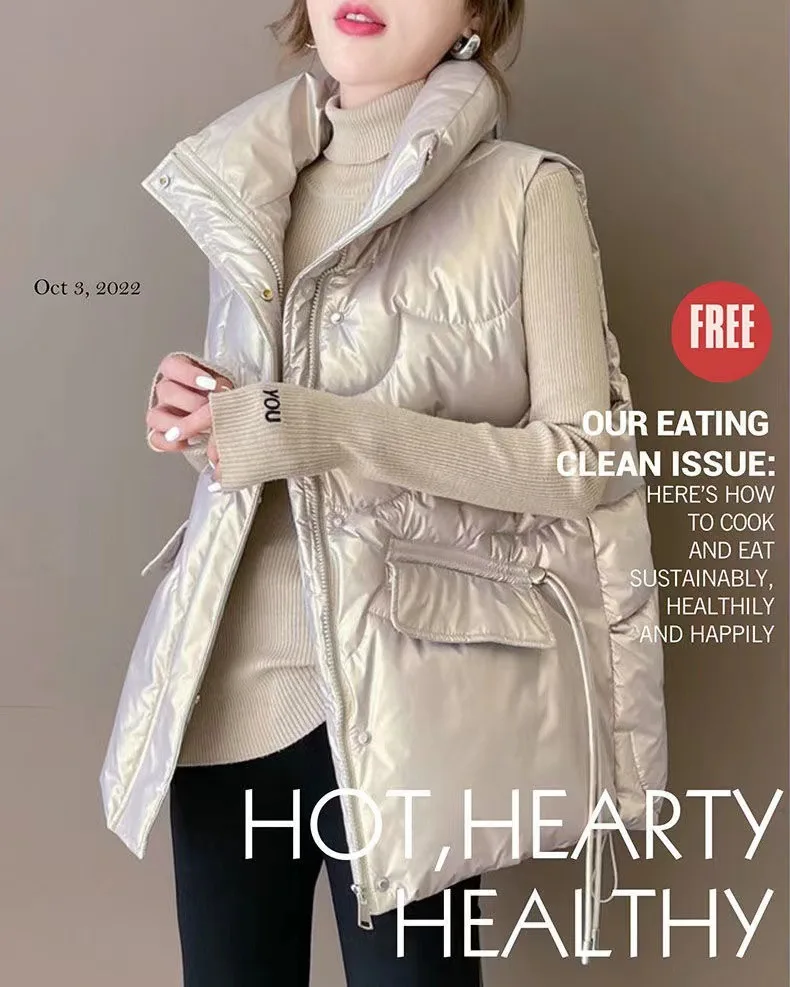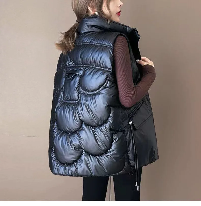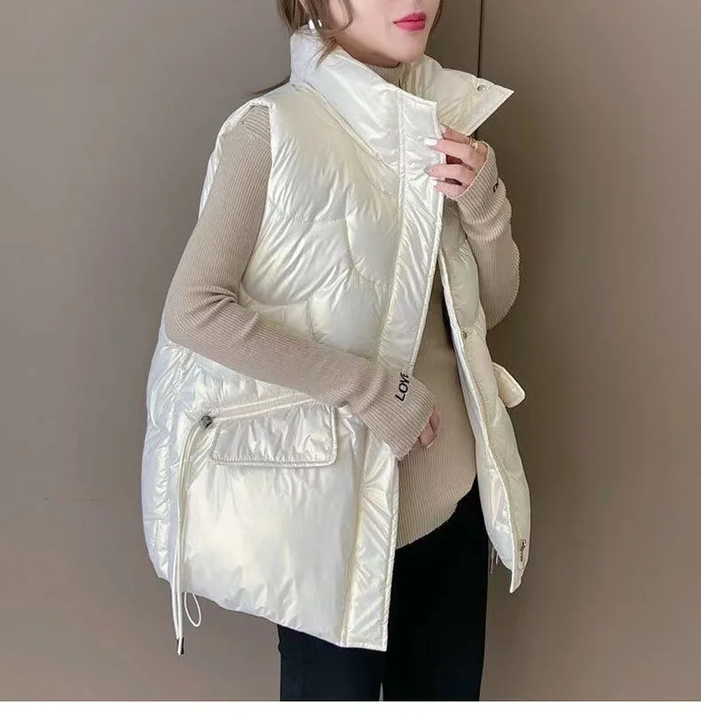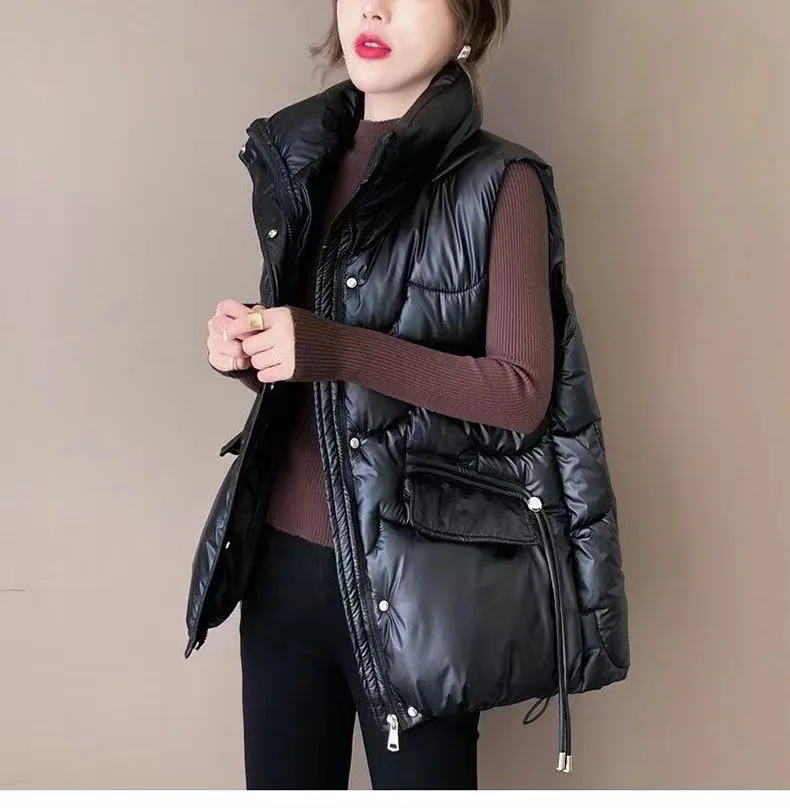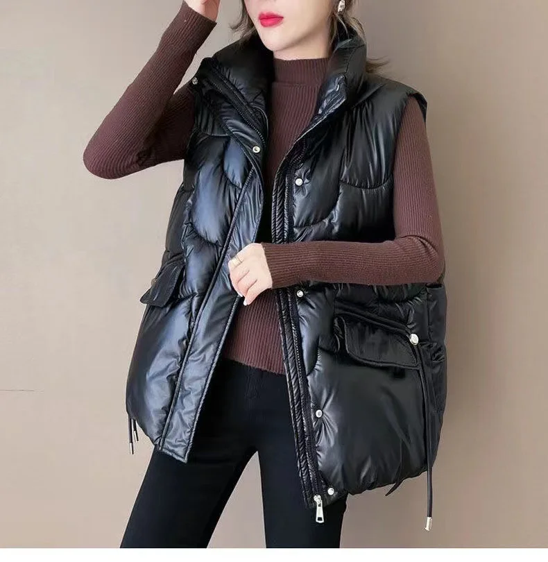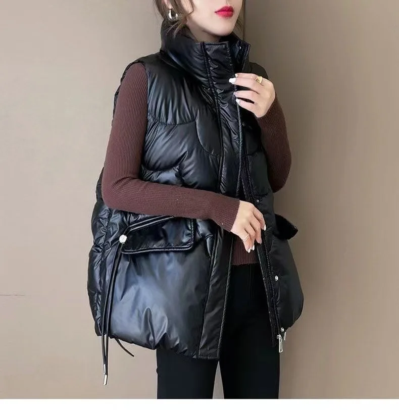 2025 Nuovo Giù Gilet di Cotone Delle Donne Autunno Inverno Parka Addensare Caldo Gilet Imbottito di Cotone Cappotto Femminile Senza Maniche Puffer Gilet