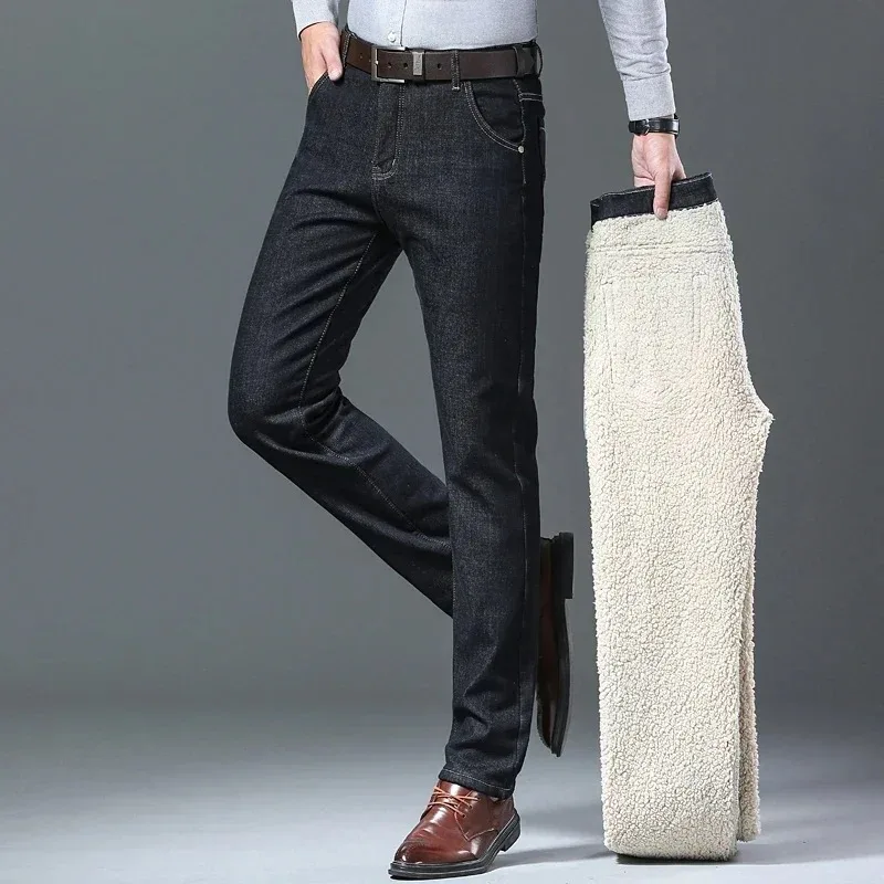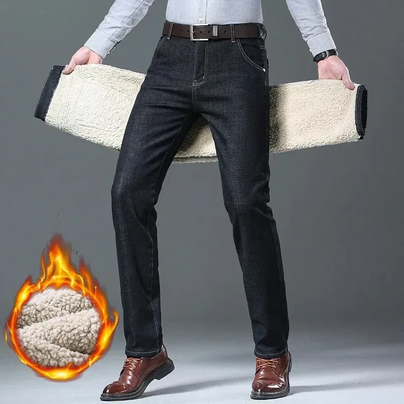 2025 Nuovo Inverno Agnello Fluff Jeans Da Uomo Pantaloni In Denim Dritto Addensare In Pile Caldo Stretch Jeansy Foderato In Peluche Pantaloni Da Uomo D'affari 12025 Nuovo Inverno Agnello Fluff Jeans Da Uomo Pantaloni In Denim Dritto Addensare In Pile Caldo Stretch Jeansy Foderato In Peluche Pantaloni Da Uomo D’affari