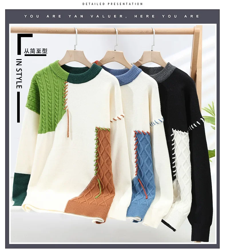 2025 Nuovo maglione patchwork Trend High Street Fashion Autunno e inverno Abbigliamento da strada hip-hop da uomo caldo