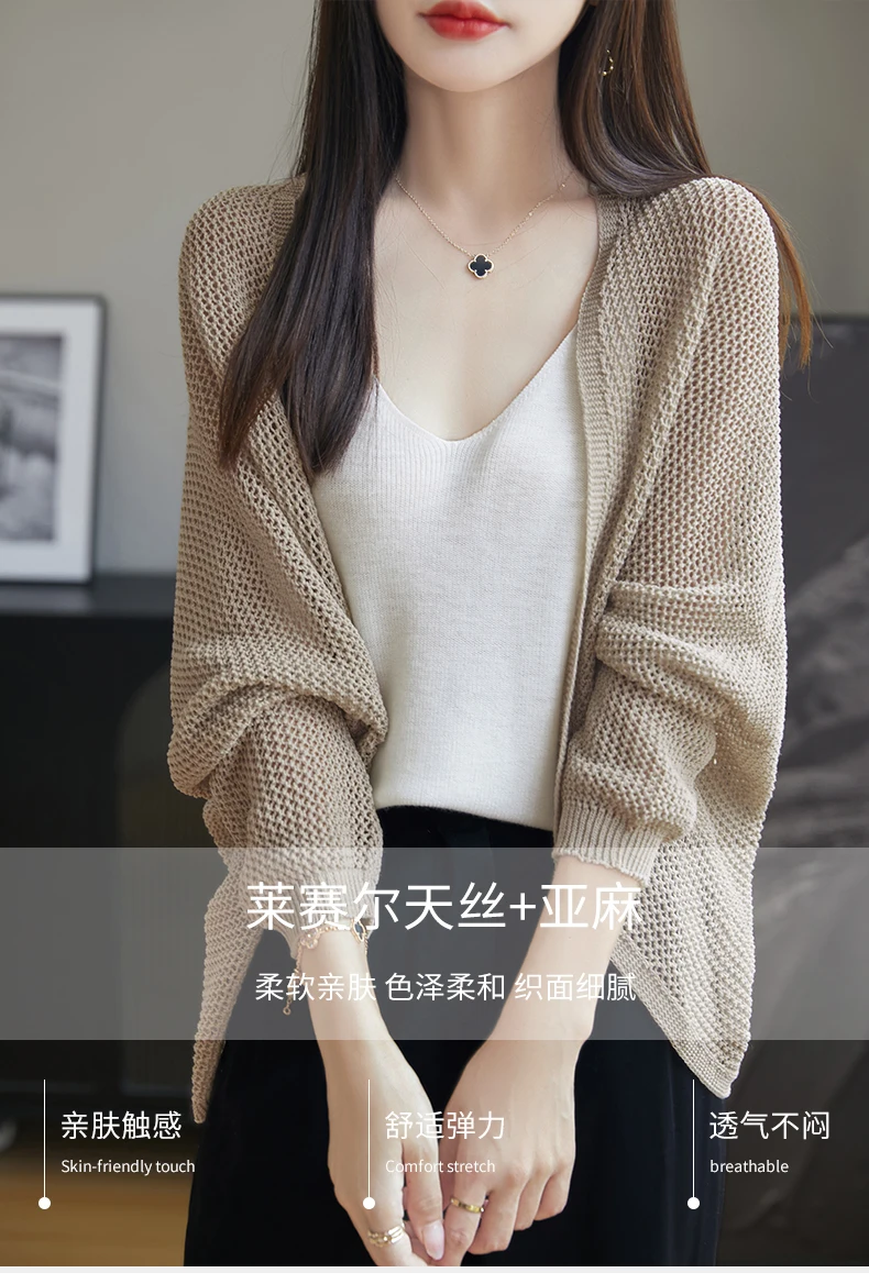 2025 Nuovo Scava Fuori Maglia Allentata Cardigan Donne Traforato Scialle di Lino Estate Kimono Stile Unico Mantello Scialle Maglione Coprispalle Top