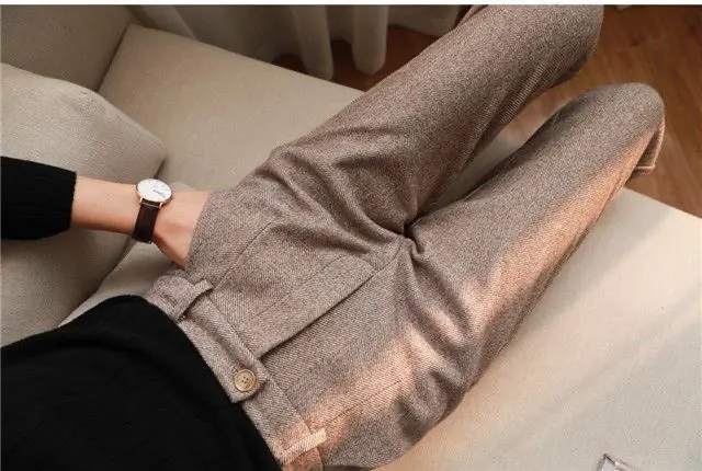 2025 Pantaloni da donna Grigio Khaki Nero Pantaloni a matita Harem Pantaloni da donna a vita alta Moda donna Autunno Inverno Pantaloni da ufficio