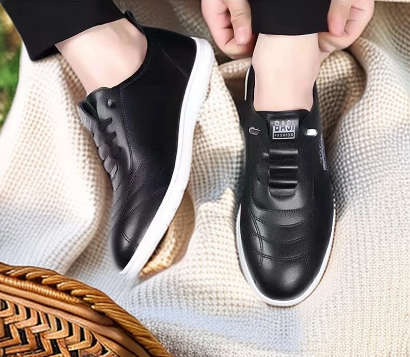 2025 scarpe casual in pelle da uomo nuove in morbida pelle traspirante suola morbida tendenza versatile scarpe bianche scarpe da uomo