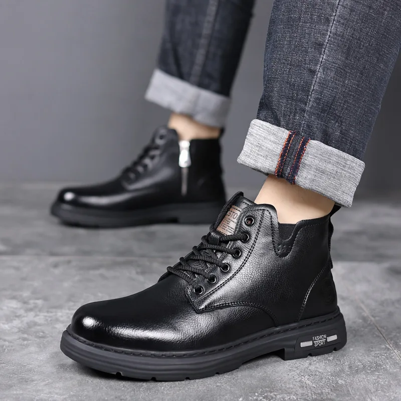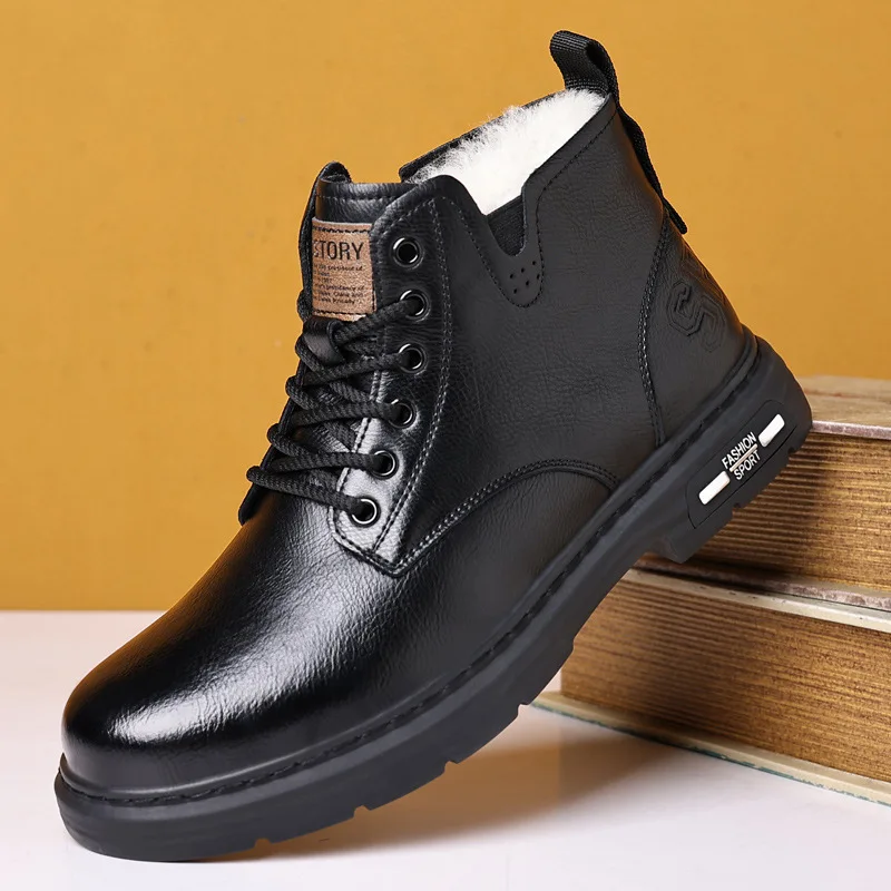 2025 Scarpe invernali in vera pelle Stivali da neve da uomo Stivaletti maschili di marca piatti in peluche caldo Nero Marrone antiscivolo D628