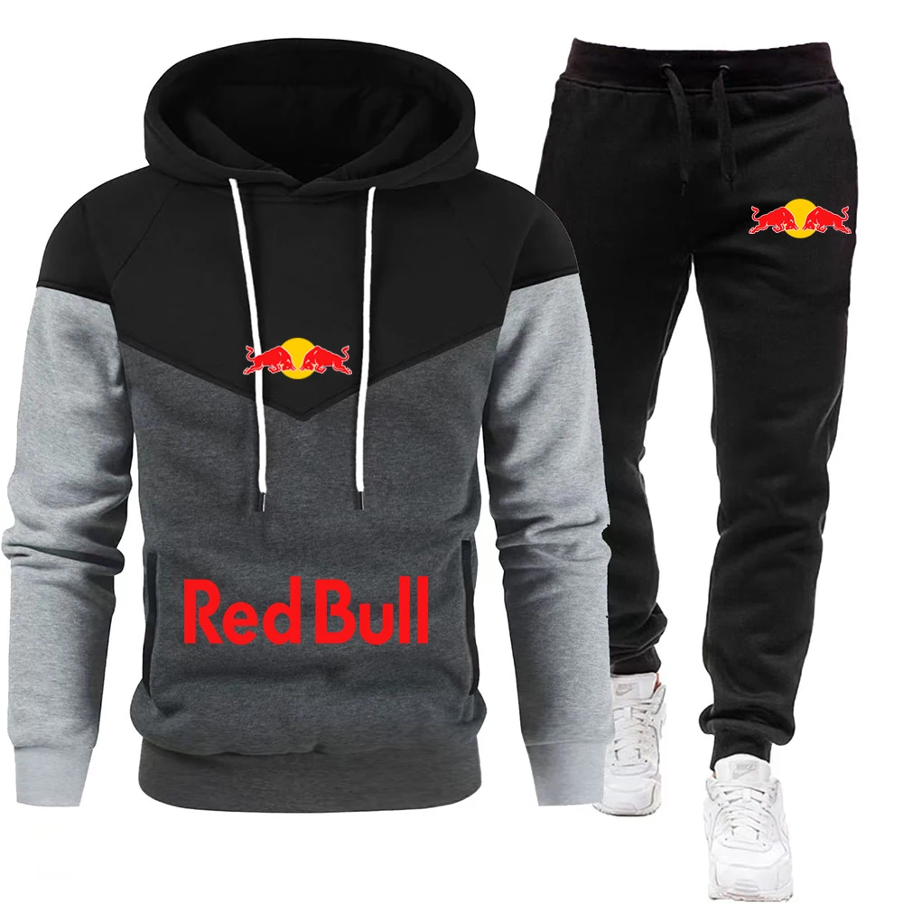 2025 Set con cappuccio sportivo autunno/inverno transfrontaliero da uomo 2 + 3 colori Felpa con cappuccio casual Set di abbigliamento sportivo Pantaloni maglione Stampa Red Bull