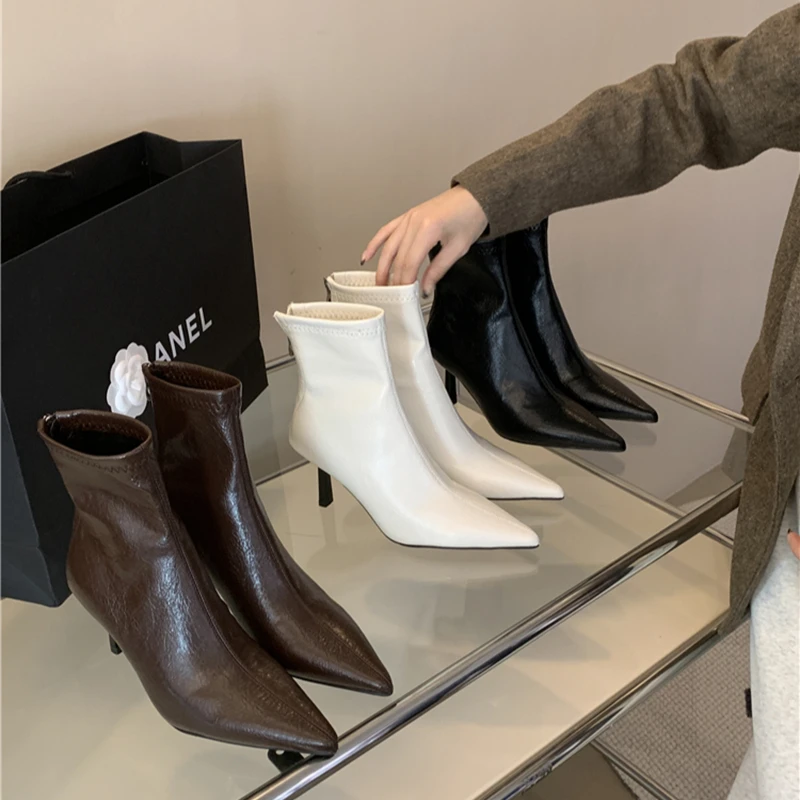 2025 Stivaletti moderni da donna con punta a punta primaverile Stivaletti corti in morbida pelle moda Scarpe con tacco alto concise 12025 Stivaletti moderni da donna con punta a punta primaverile Stivaletti corti in morbida pelle moda Scarpe con tacco alto concise