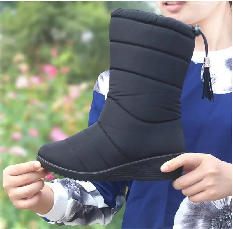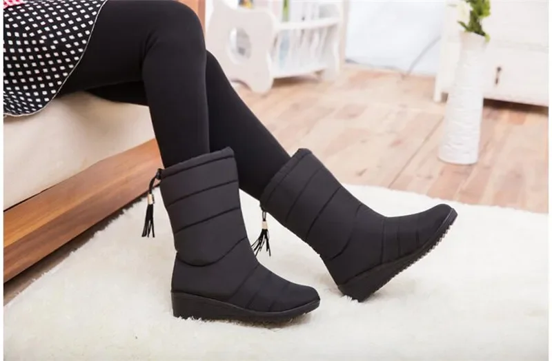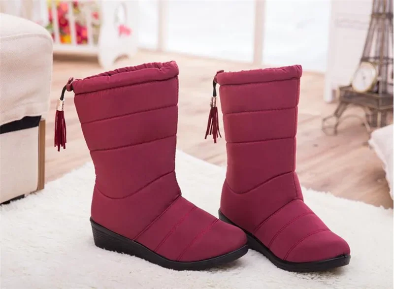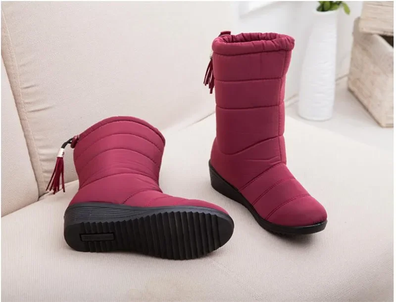 2025 Stivali da donna neri rossi Stivali da equitazione a metà polpaccio Russia Stivali da neve invernali impermeabili per tenere al caldo Scarpe