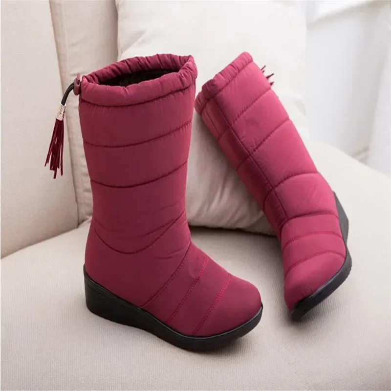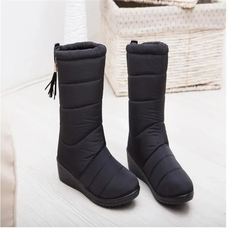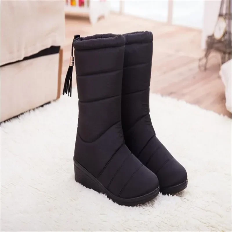 2025 Stivali da donna neri rossi Stivali da equitazione a metà polpaccio Russia Stivali da neve invernali impermeabili per tenere al caldo Scarpe