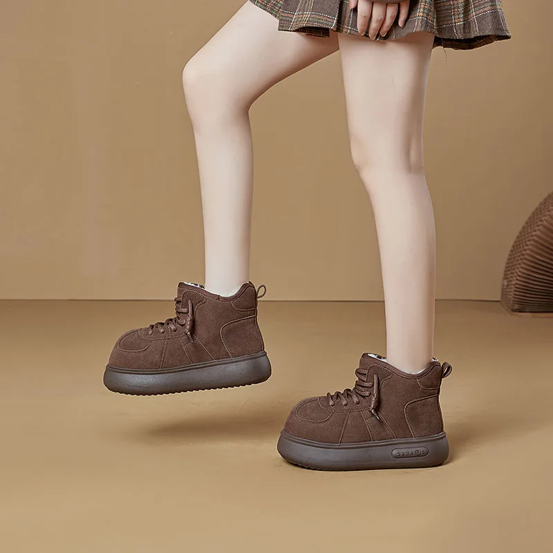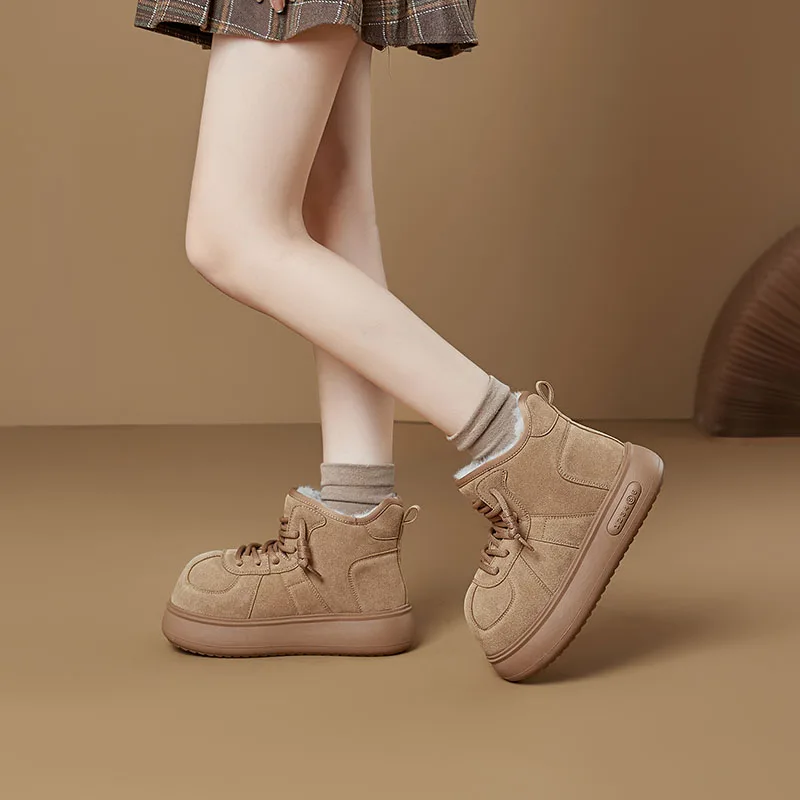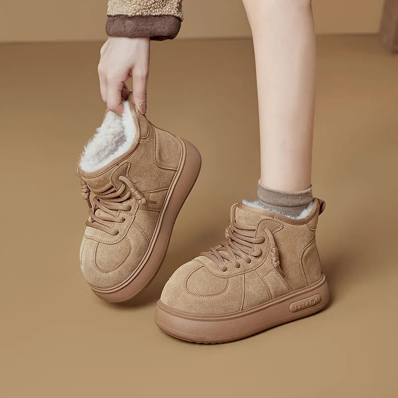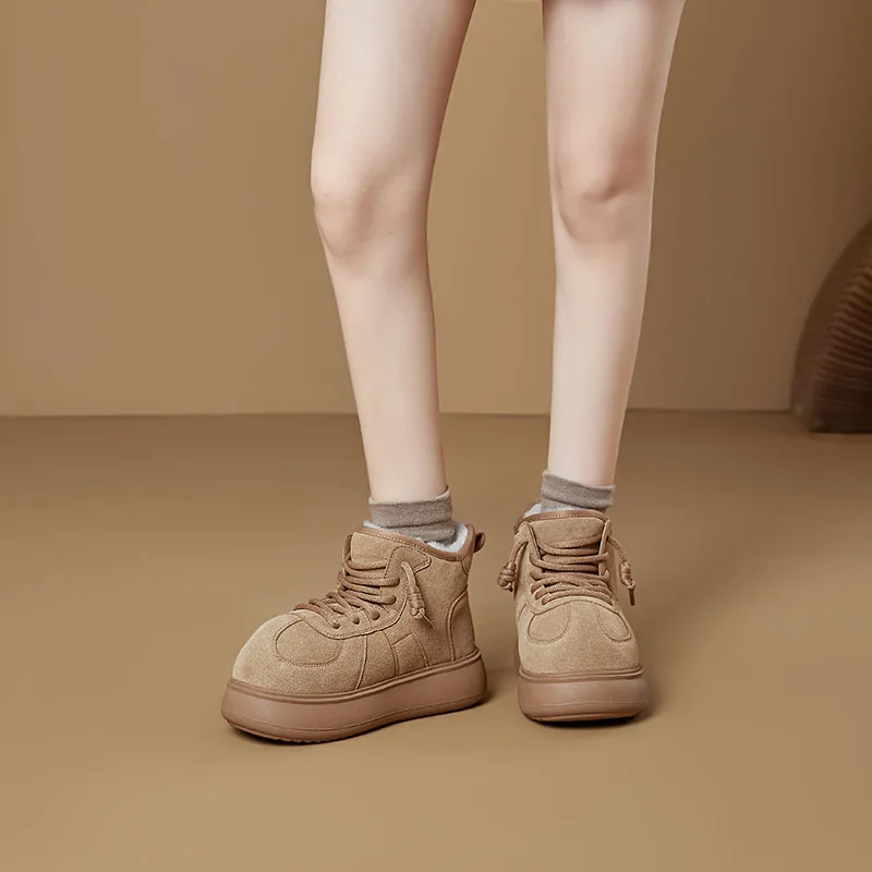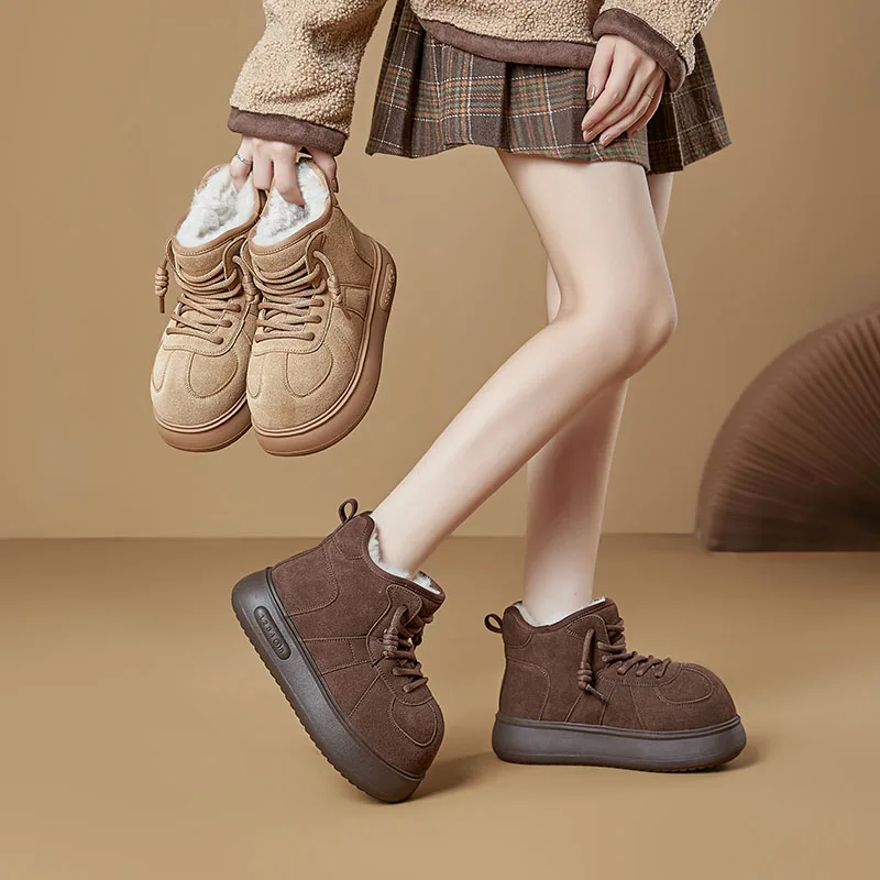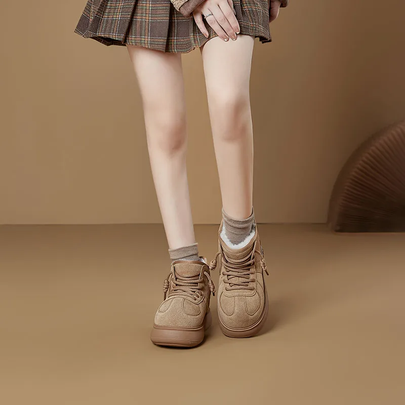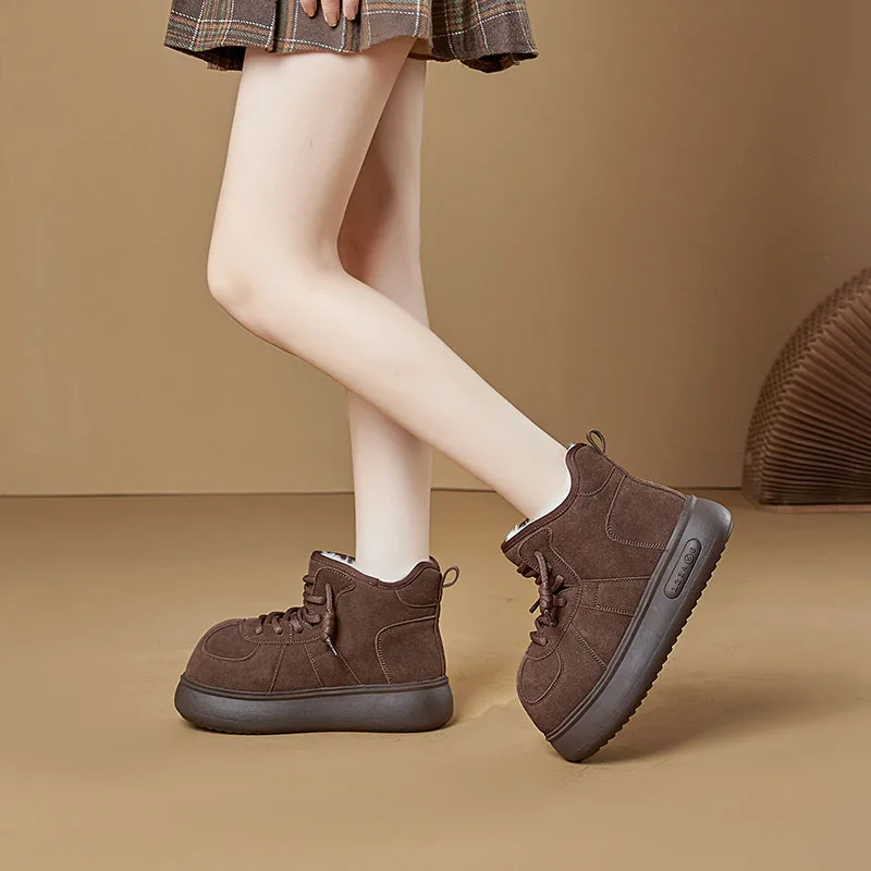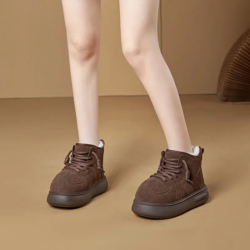 2025 Stivali da neve da donna nuovi Stivali invernali da donna in vera pelle con punta larga Stringati Peluche per il calore Scarpe imbottite in cotone femminile