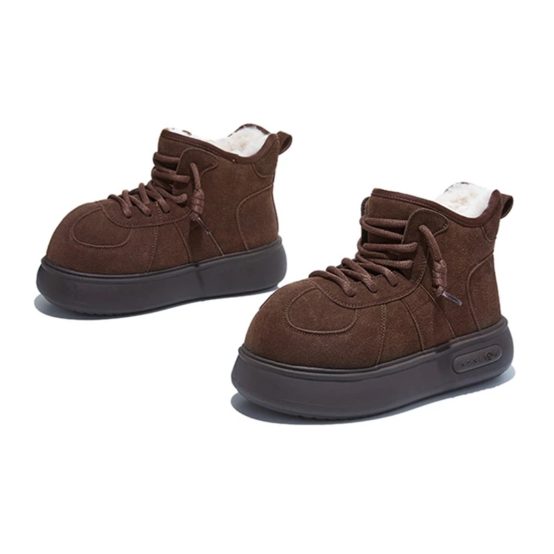 2025 Stivali da neve da donna nuovi Stivali invernali da donna in vera pelle con punta larga Stringati Peluche per il calore Scarpe imbottite in cotone femminile