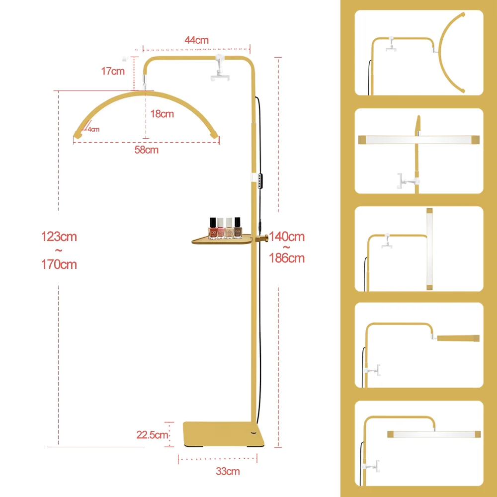1.[NUOVO! U-Joint Omnidirezionale] La nostra lampada da terra a mezzaluna a LED offre una rotazione a 720 gradi non restrizzata, offre una capacità di angolo senza limiti per una massima precisione di illuminazione attraverso tutti i compiti di studio di saloni e tatuaggi.