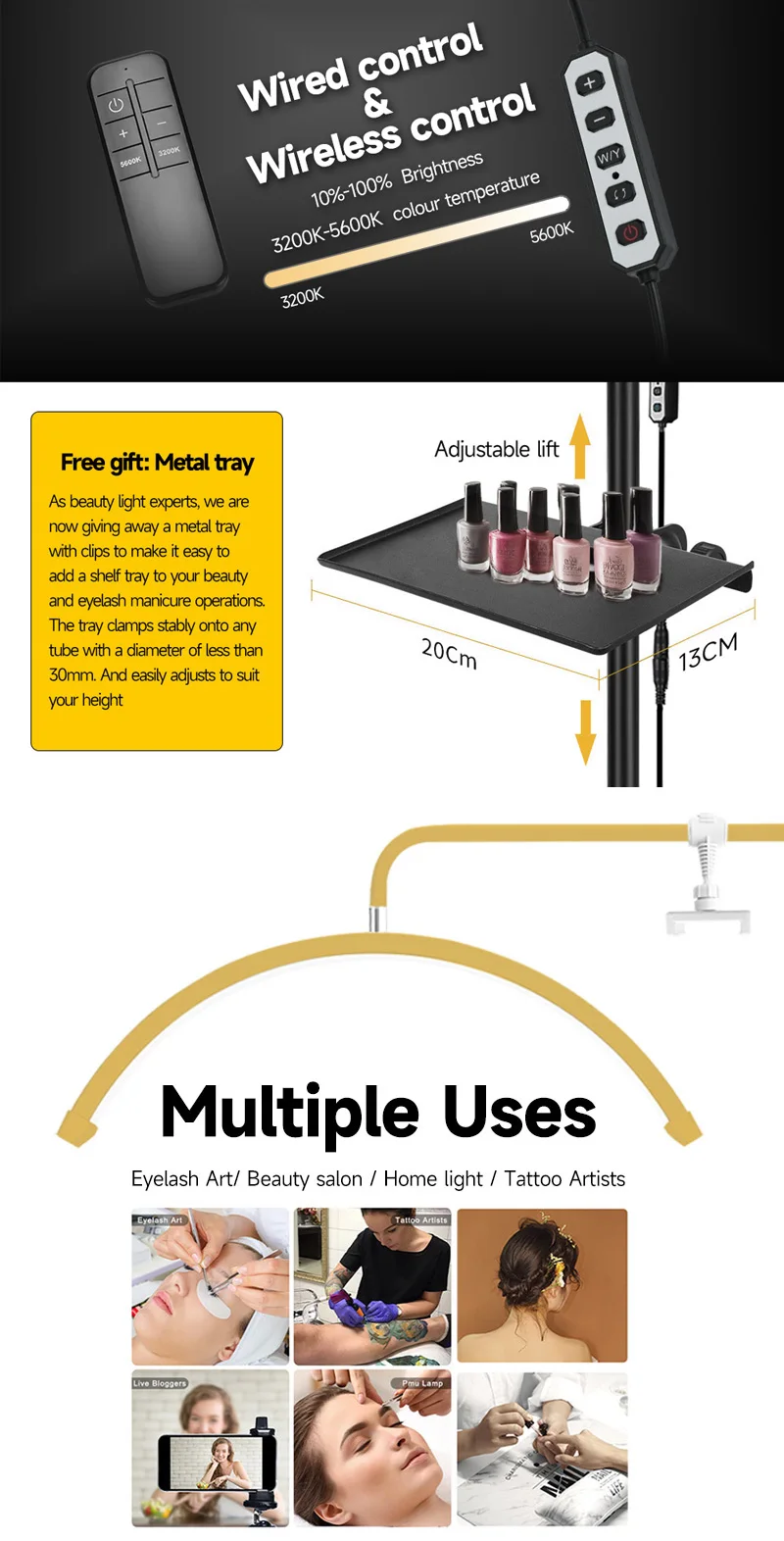 La lampada da terra di bellezza regolabile INLIGHTRAY da 23 pollici GX580Pro è un strumento essenziale per i professionisti che ricerca per migliorare il loro spazio di lavoro.Con alta luminosità, temperatura colore regolabile e design intuitivo, è perfetto per ridurre l’affaticamento degli occhi e potenziare la produttività.Il GX580 presenta un giunto a U avanzato per la gamma completa, il posizionamento della luce a 720 gradi, garantisce un’illuminazione ottimale per i compiti dettagliati.Sono telecomandi e cavi facili da usare, lungo con il vassoio clip-on incluso per un comodo stoccaggio degli attrezzi, prezioso per artisti delle ciglia, tatuatori e estetisti.Plus, con l’opzione per la personalizzazione gratuita del logo, puoi farti il tuo marchio in un set professionale.Ricorda, in INLIGHTRAY, vendiamo solo buoni prodotti e siamo commissionati per essere gentile ai tuoi occhi con la nostra tecnologia LED di alta qualità.
