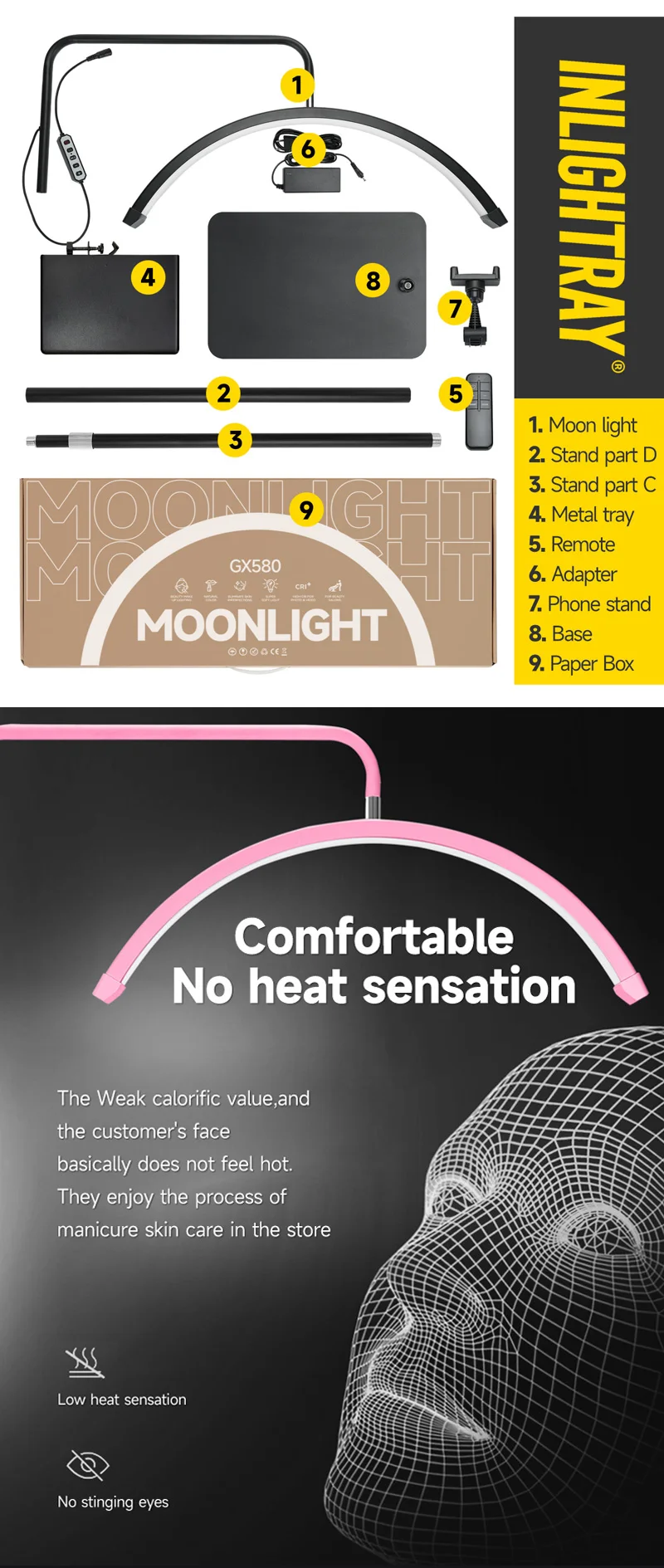 【A: 】Il GX580Pro distingue stesso con la sua tecnologia LED di alta qualità, bassa emissione di luce blu e certificazioni come CE, ROHS, FCC, garantisce sicurezza e affidabilità.È anche presenta un giunto a U avanzato per un posizionamento preciso della luce, progettato per ridurre l’affaticamento degli occhi e migliorare l’ambiente di lavoro per professionisti nell’industria della bellezza.