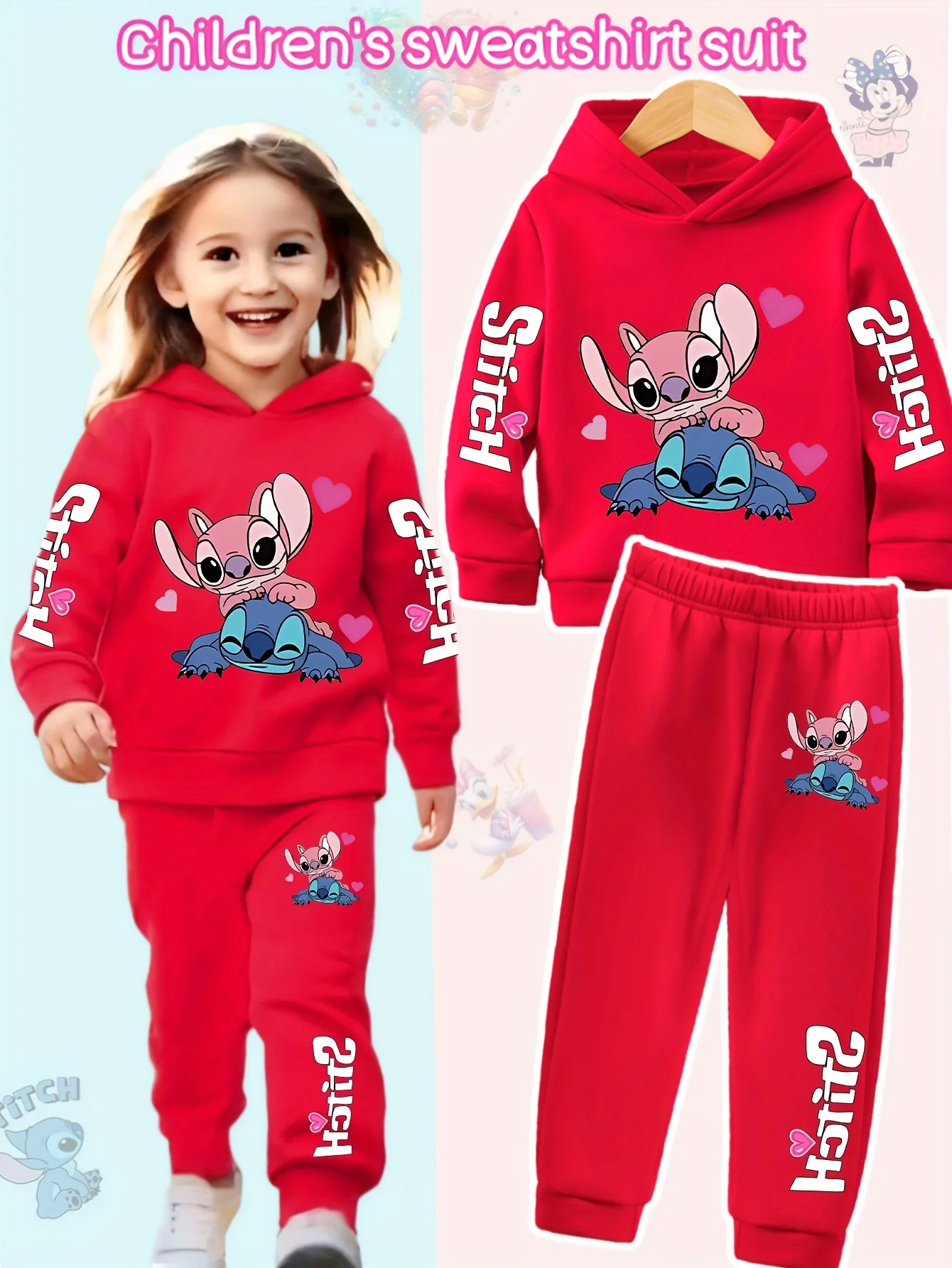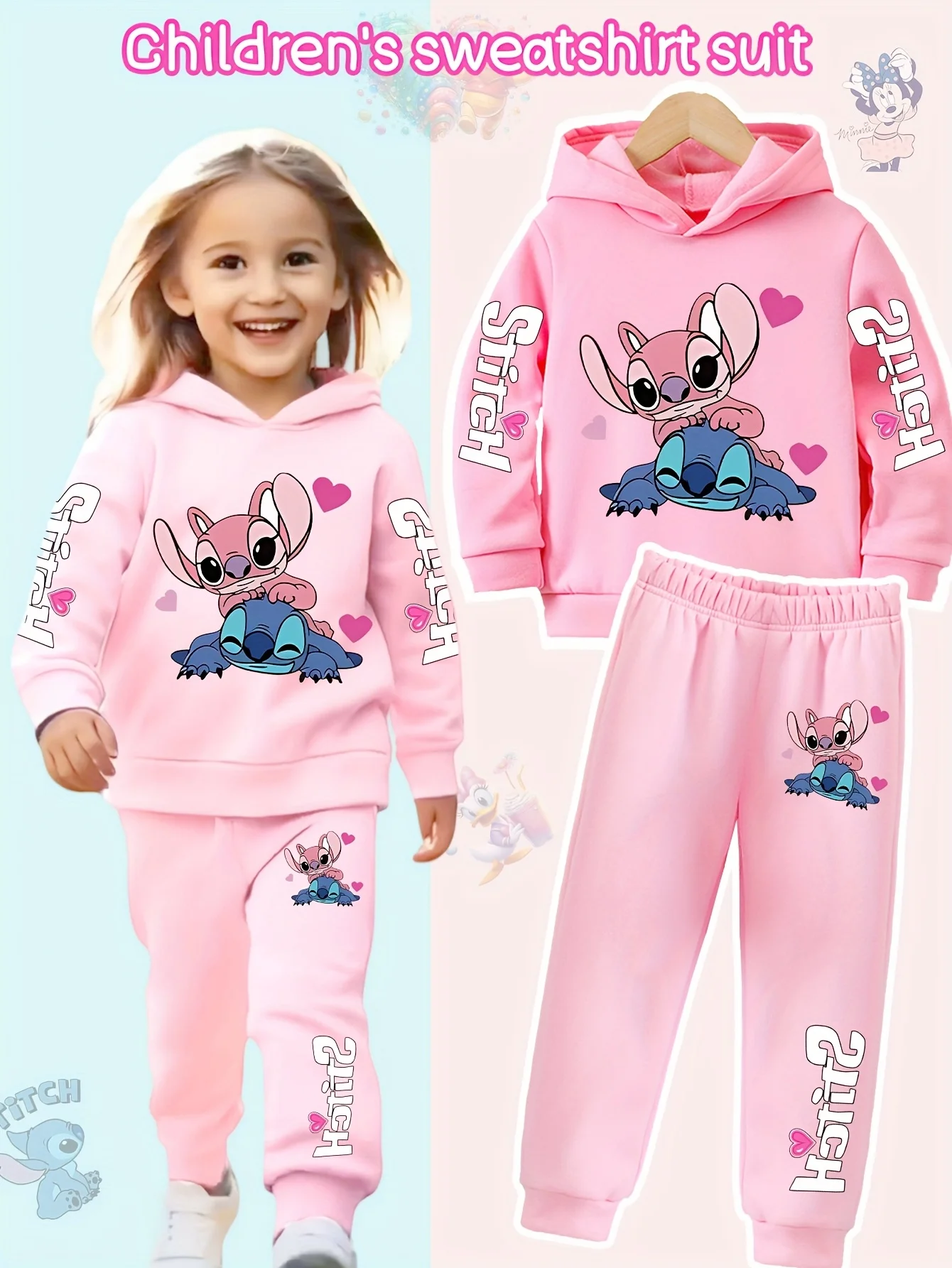 2025 Y2k Abbigliamento in due pezzi Felpa con cappuccio Lilo e Stitch Felpa per bambini a maniche lunghe per ragazze + Pantaloni Set per abbigliamento per neonati