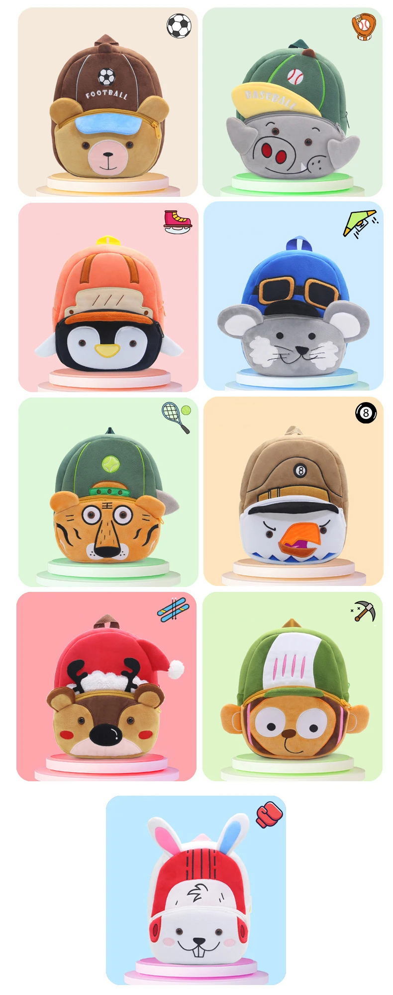 2025 Zaino per bambini nuovo Zaino per cartoni animati con punto peluche carino per bambini Zaini per asilo Regali per bambini Unisex
