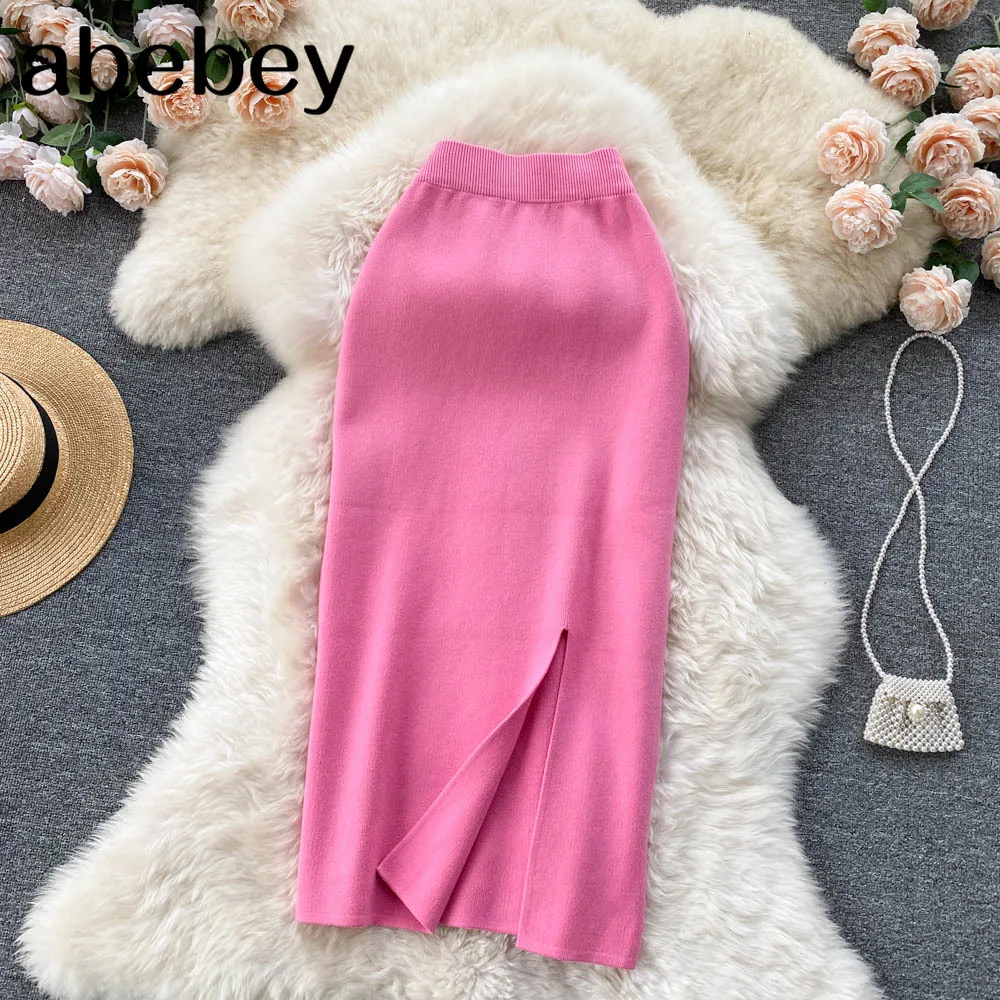 2026 nuove donne maglione gonna matita midi gonna lavorata a maglia gonne a vita alta donna inverno lungo caldo lavoro a maglia gonne divise