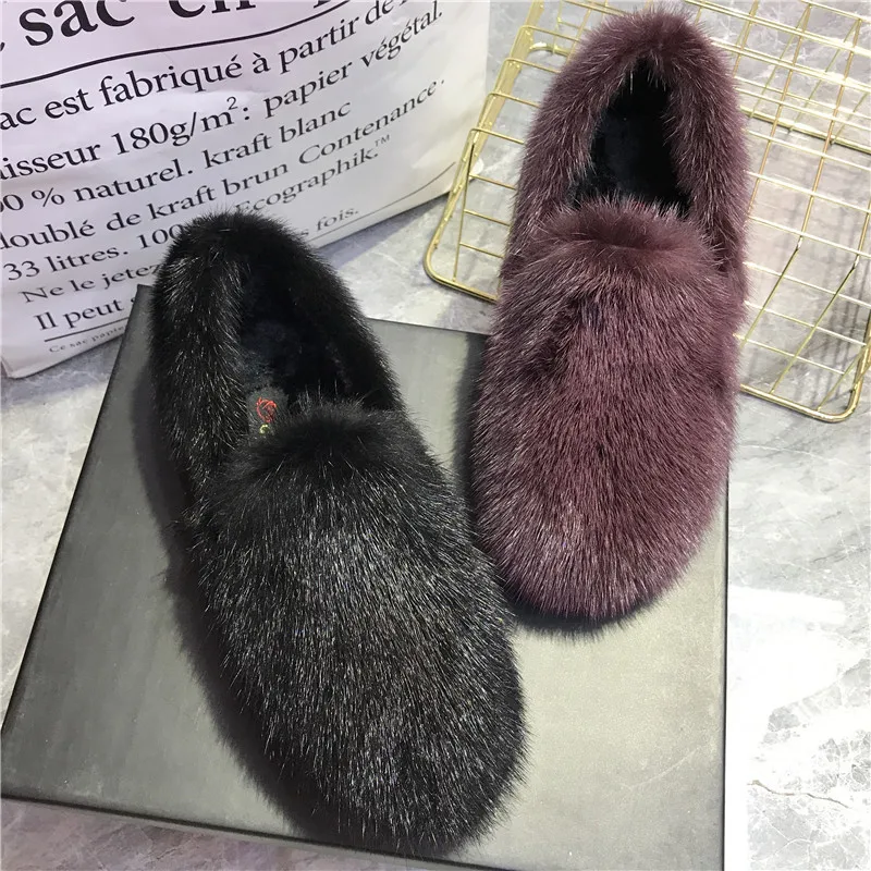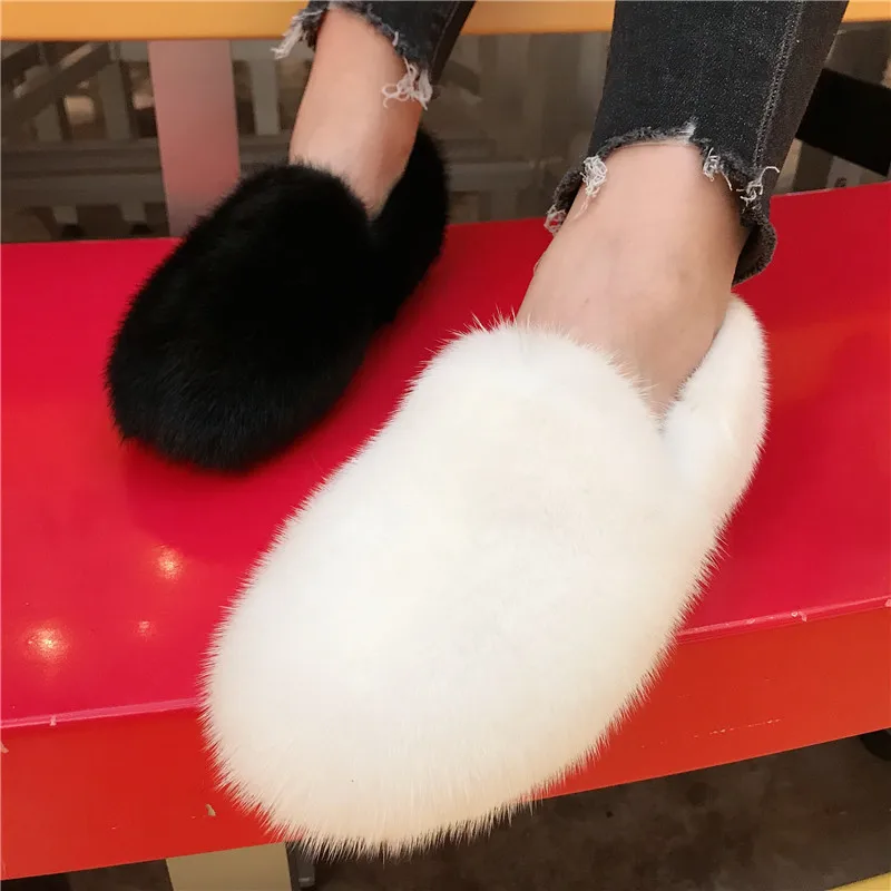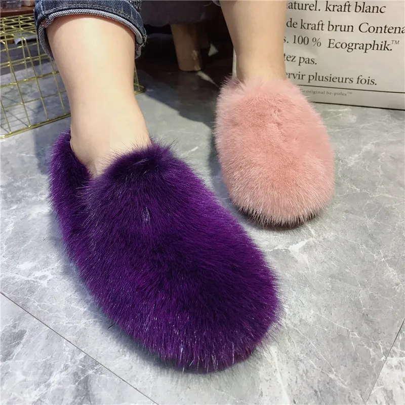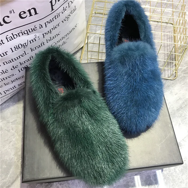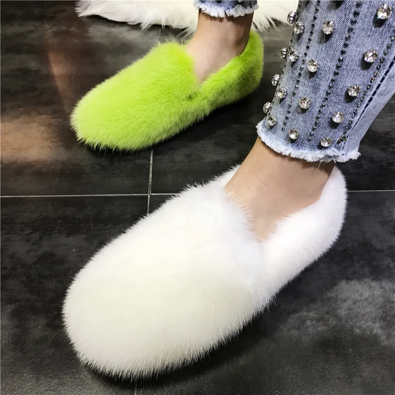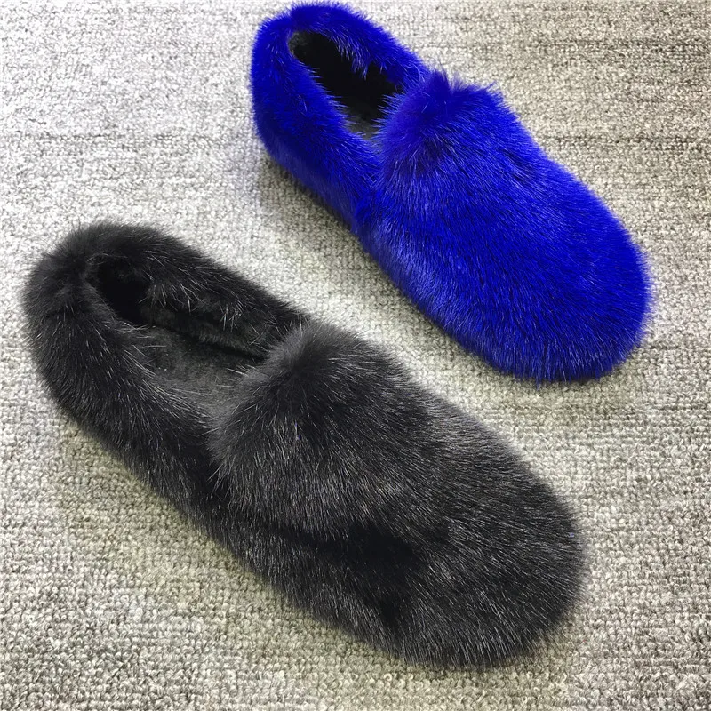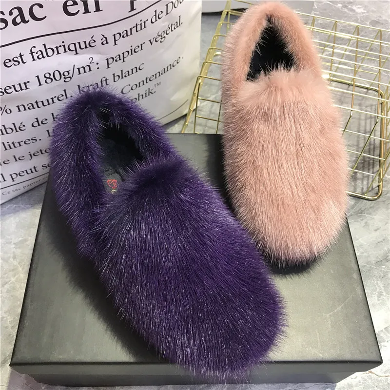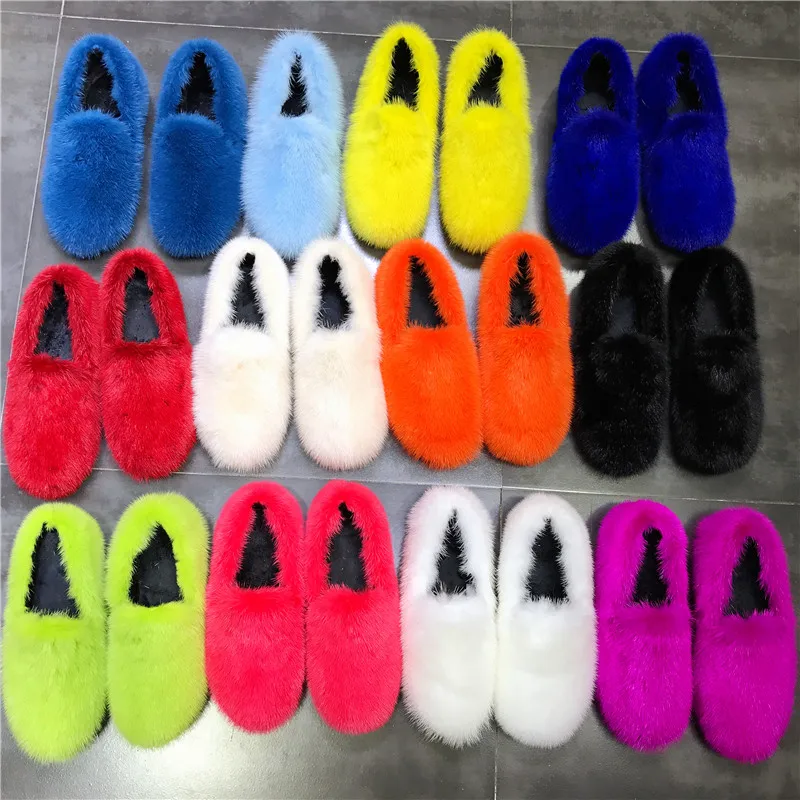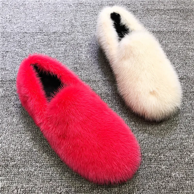 2026 Nuovo Reale Pelliccia di Visone Donne Appartamenti Mocassini Inverno Scarpe Calde Fuori Mocassini Espadrillas Signore Suola Spessa Scarpe di Pelliccia Piatto
