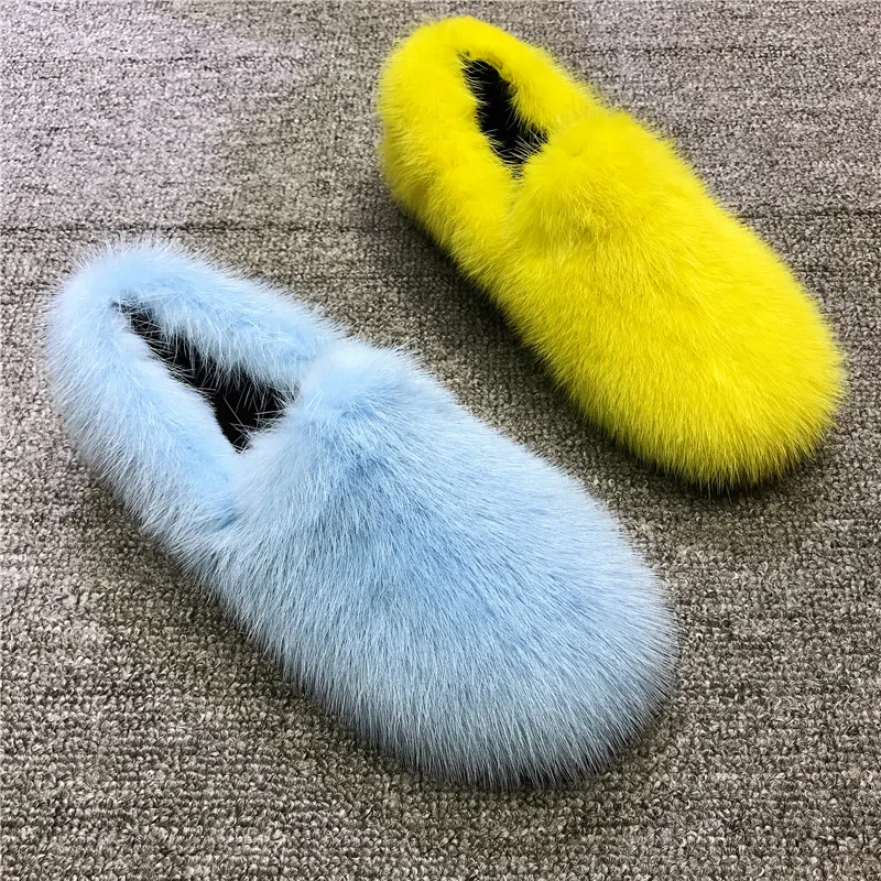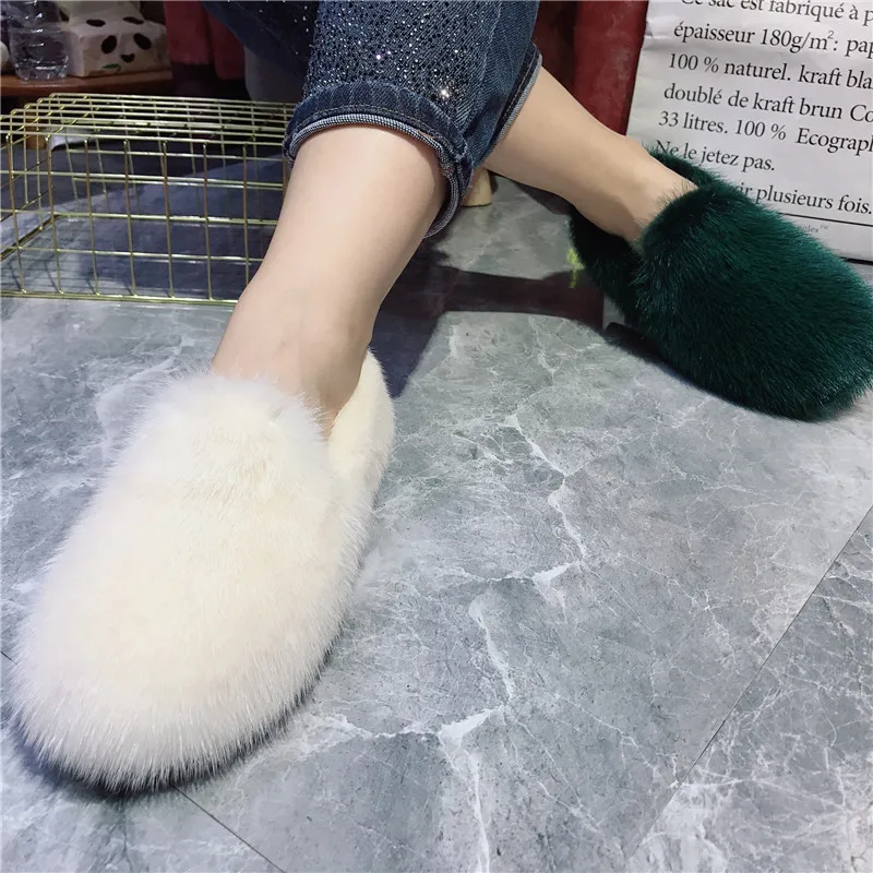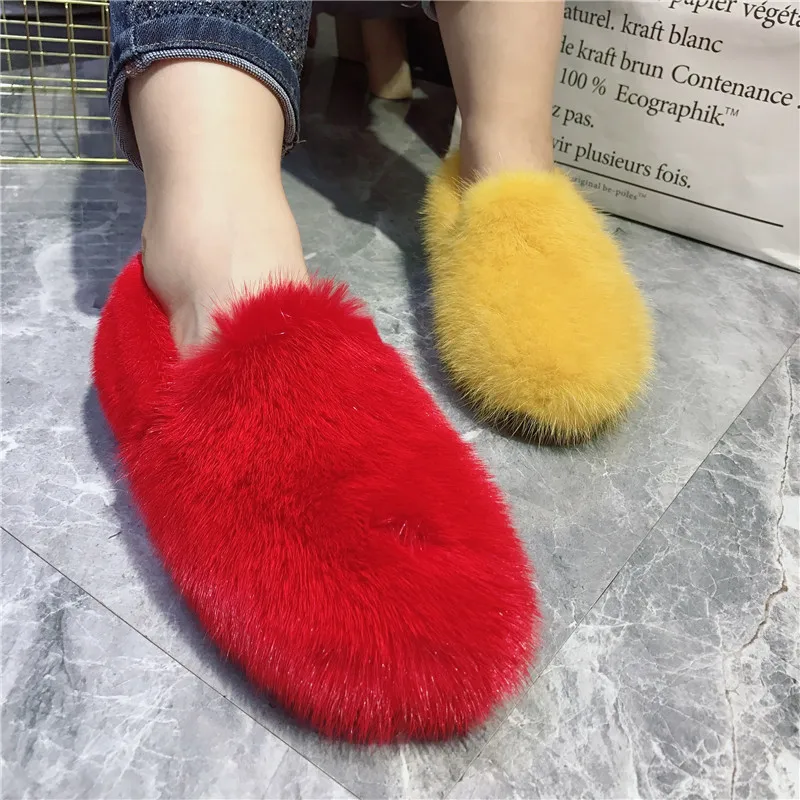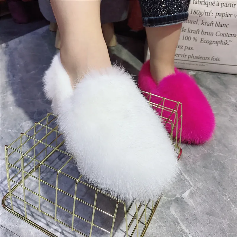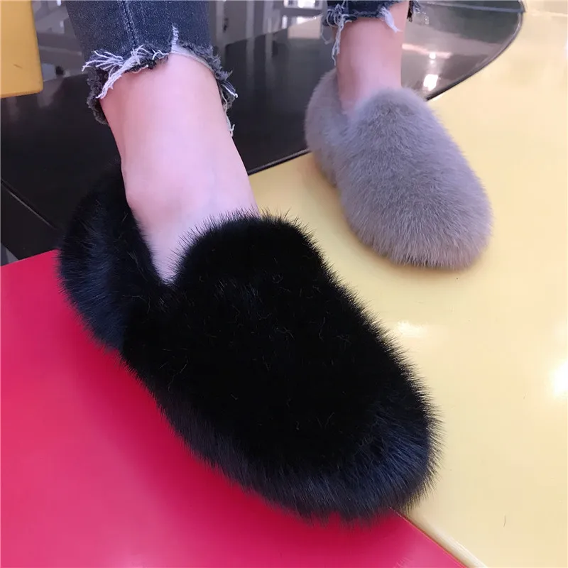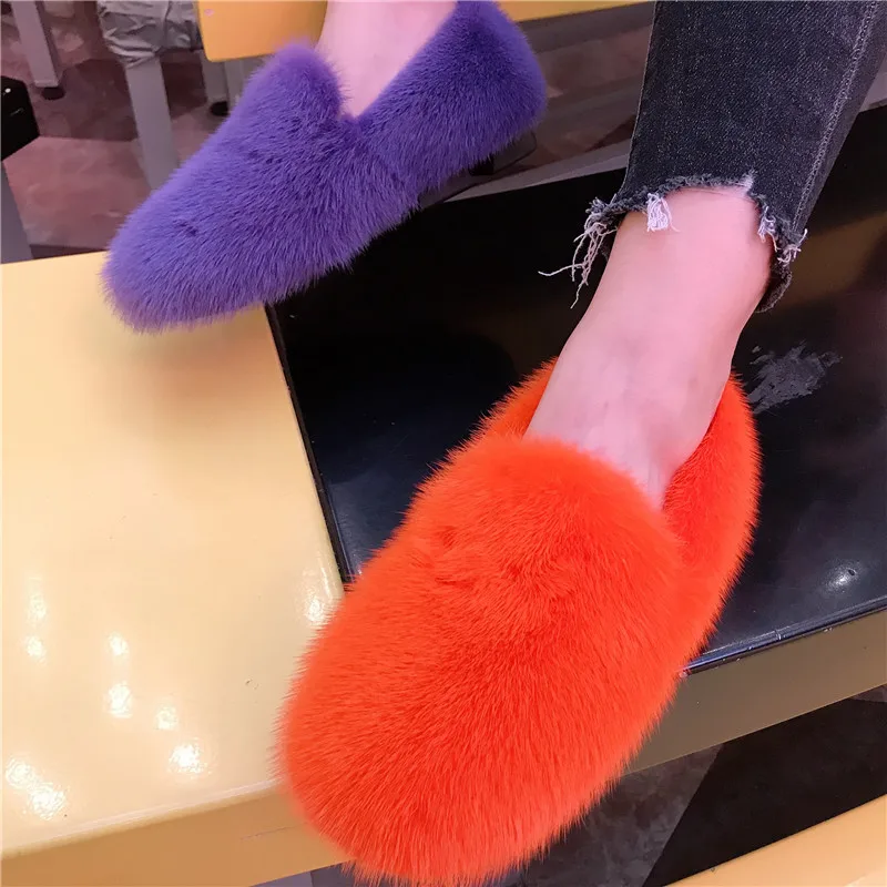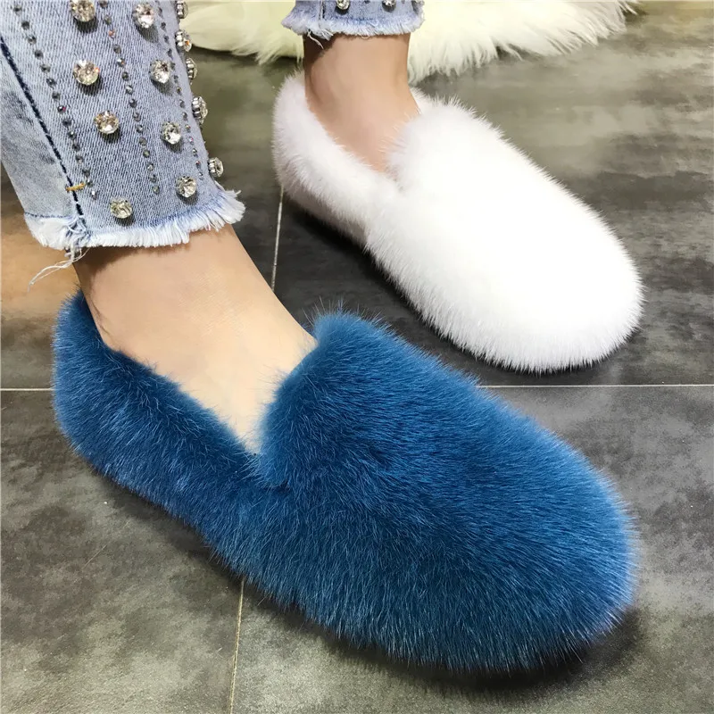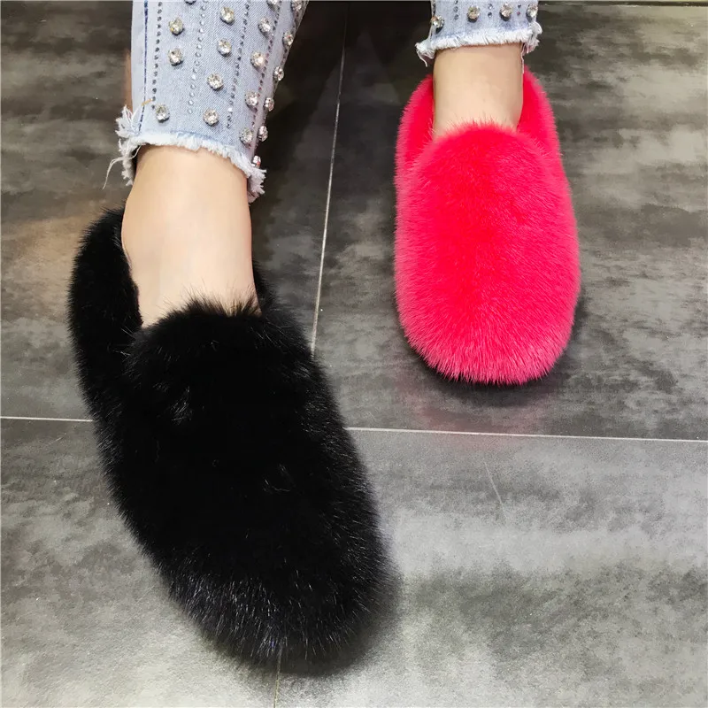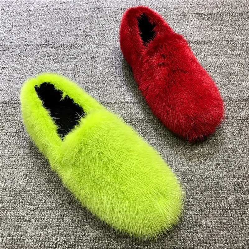2026 Nuovo Reale Pelliccia di Visone Donne Appartamenti Mocassini Inverno Scarpe Calde Fuori Mocassini Espadrillas Signore Suola Spessa Scarpe di Pelliccia Piatto