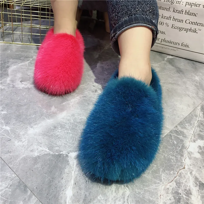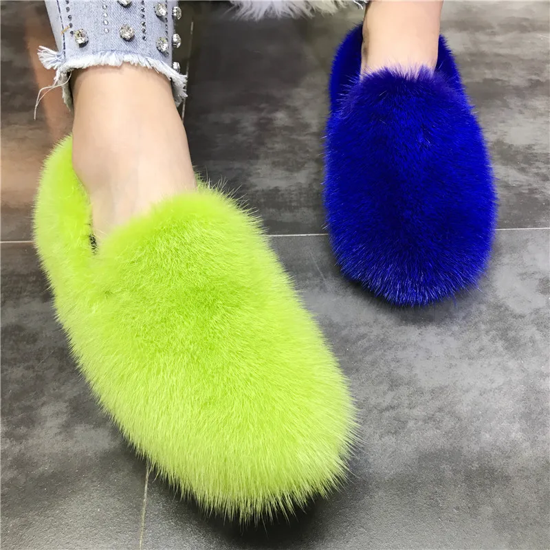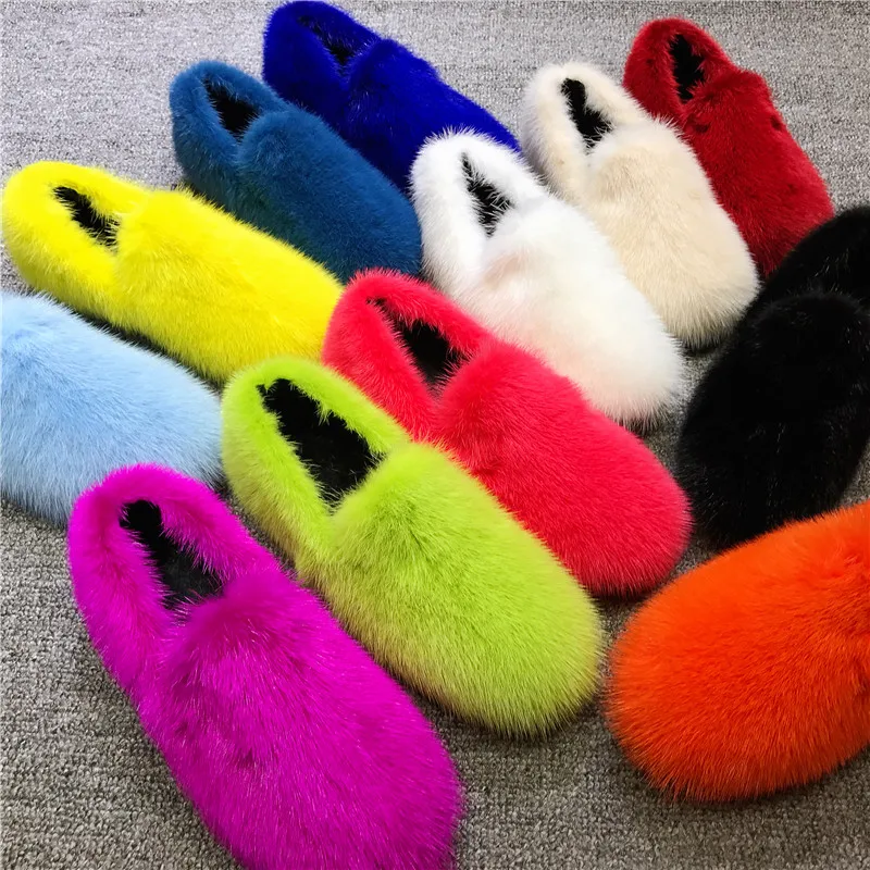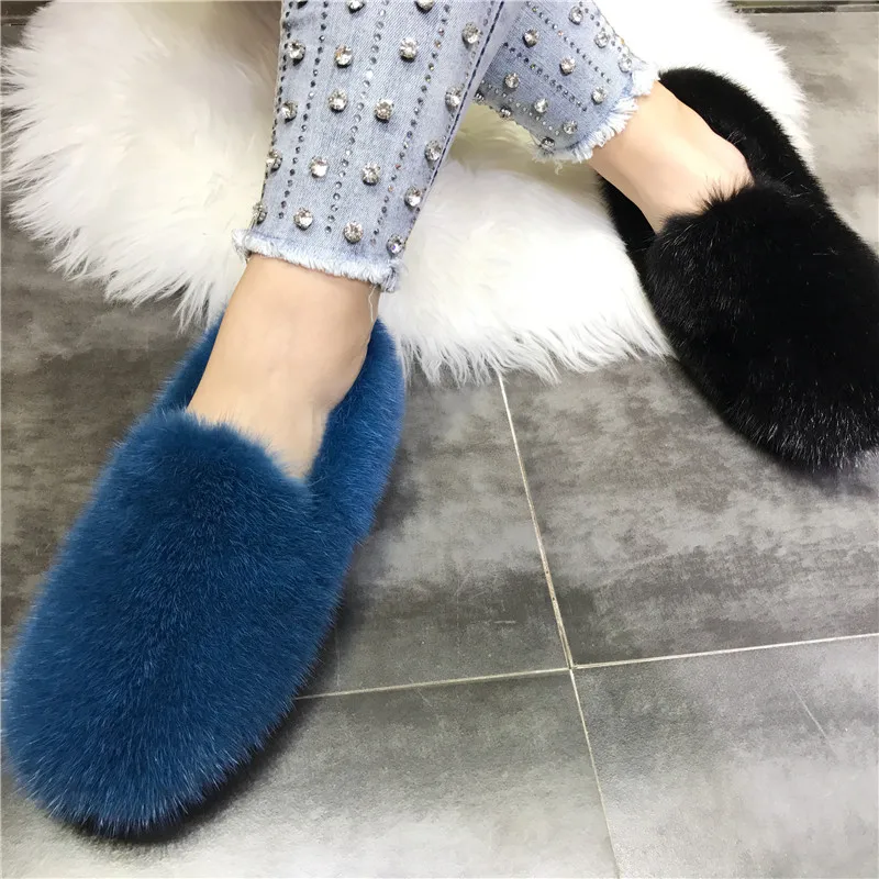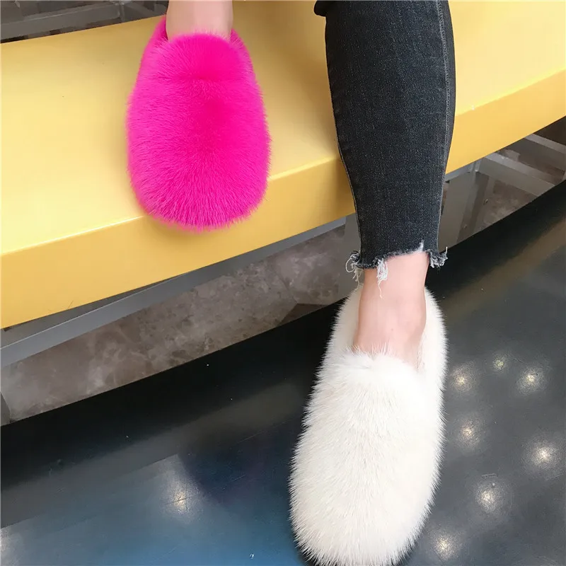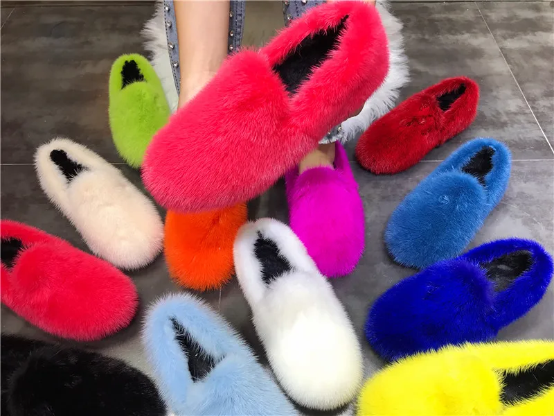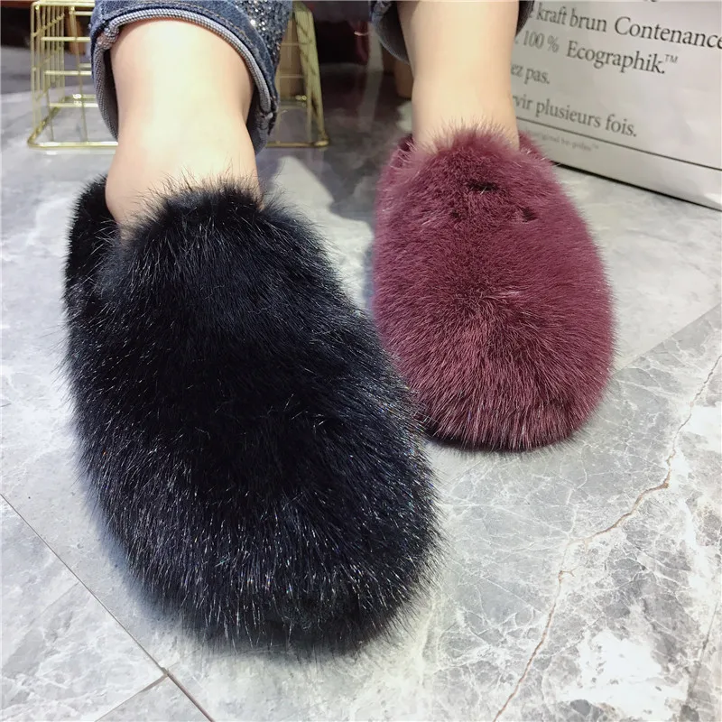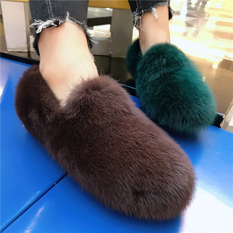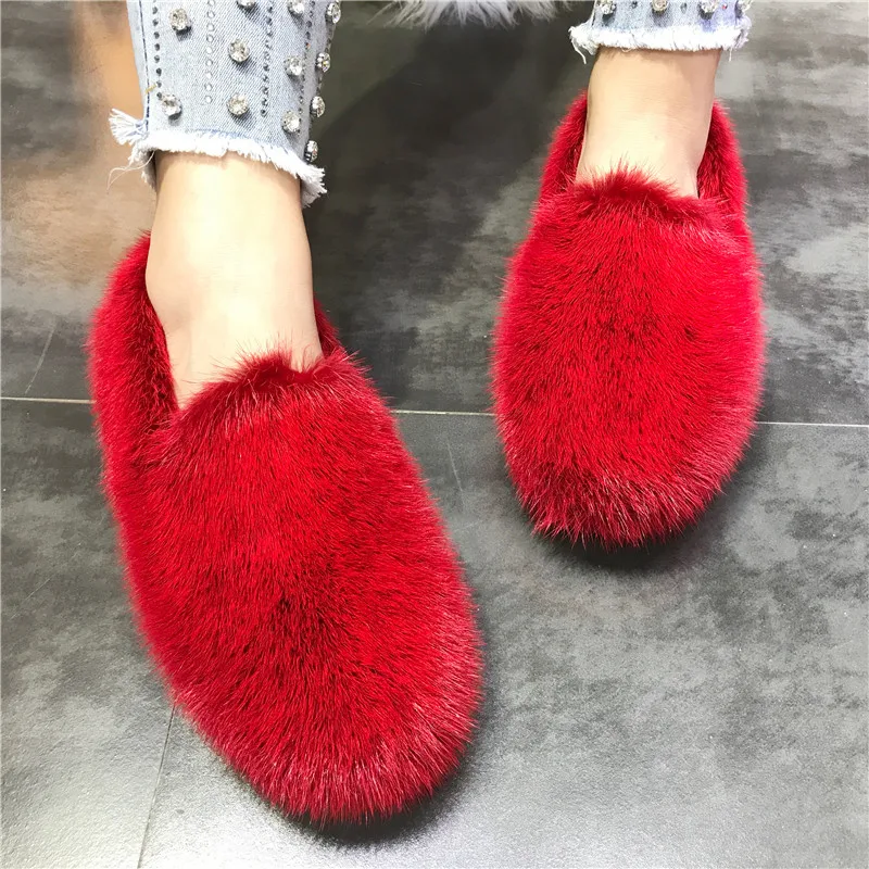 2026 Nuovo Reale Pelliccia di Visone Donne Appartamenti Mocassini Inverno Scarpe Calde Fuori Mocassini Espadrillas Signore Suola Spessa Scarpe di Pelliccia Piatto