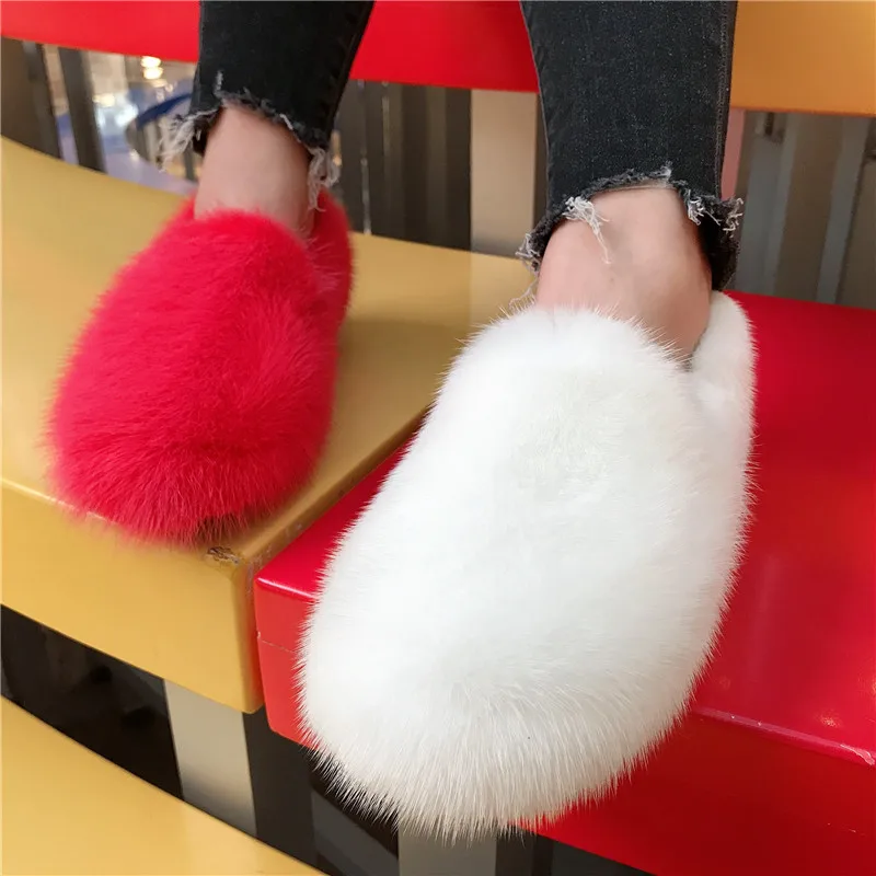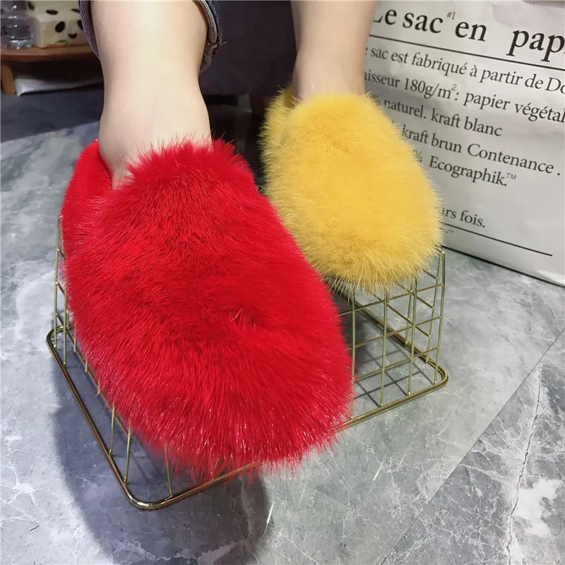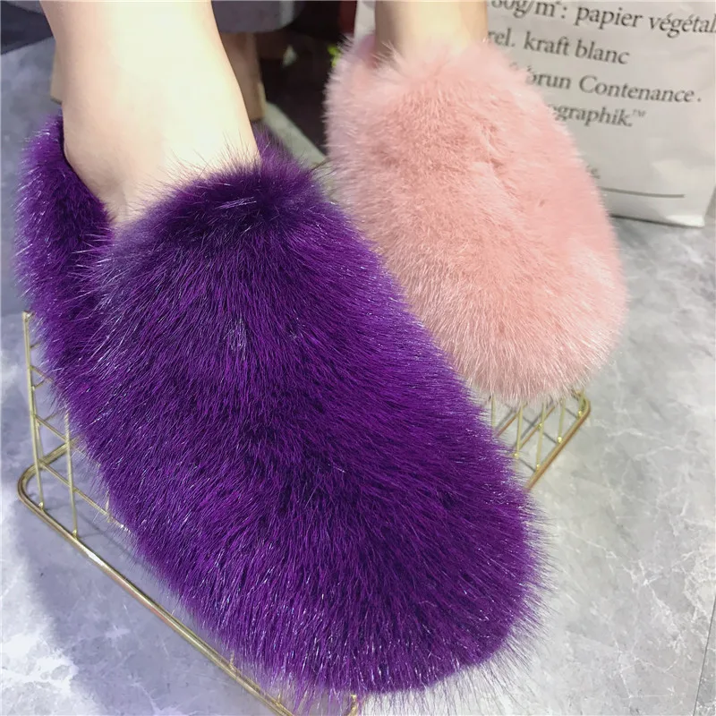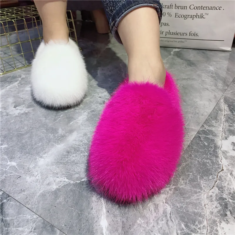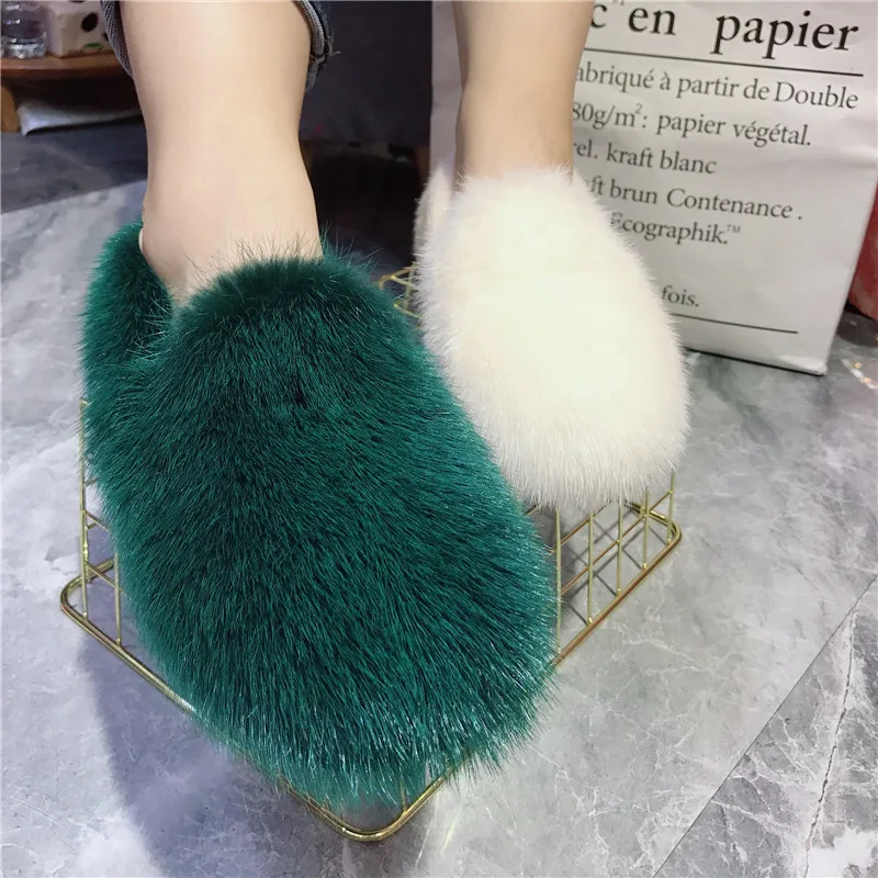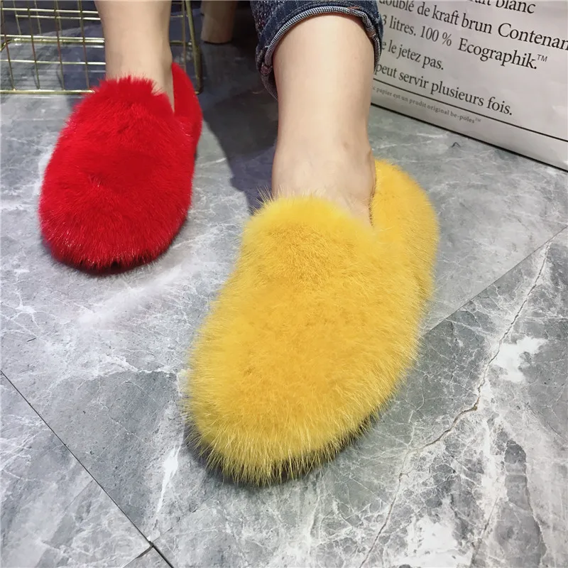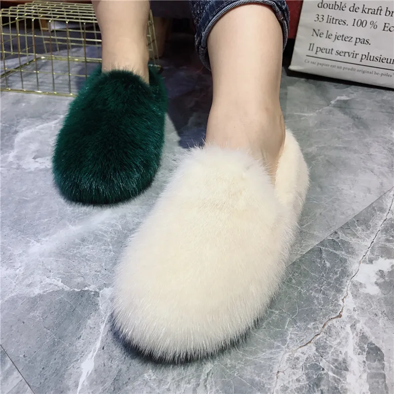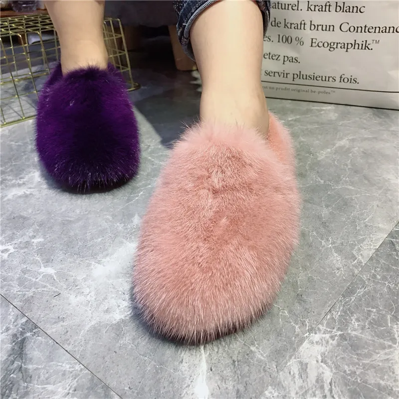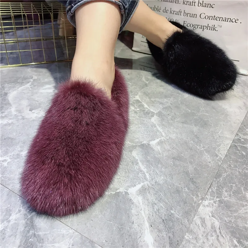 2026 Nuovo Reale Pelliccia di Visone Donne Appartamenti Mocassini Inverno Scarpe Calde Fuori Mocassini Espadrillas Signore Suola Spessa Scarpe di Pelliccia Piatto