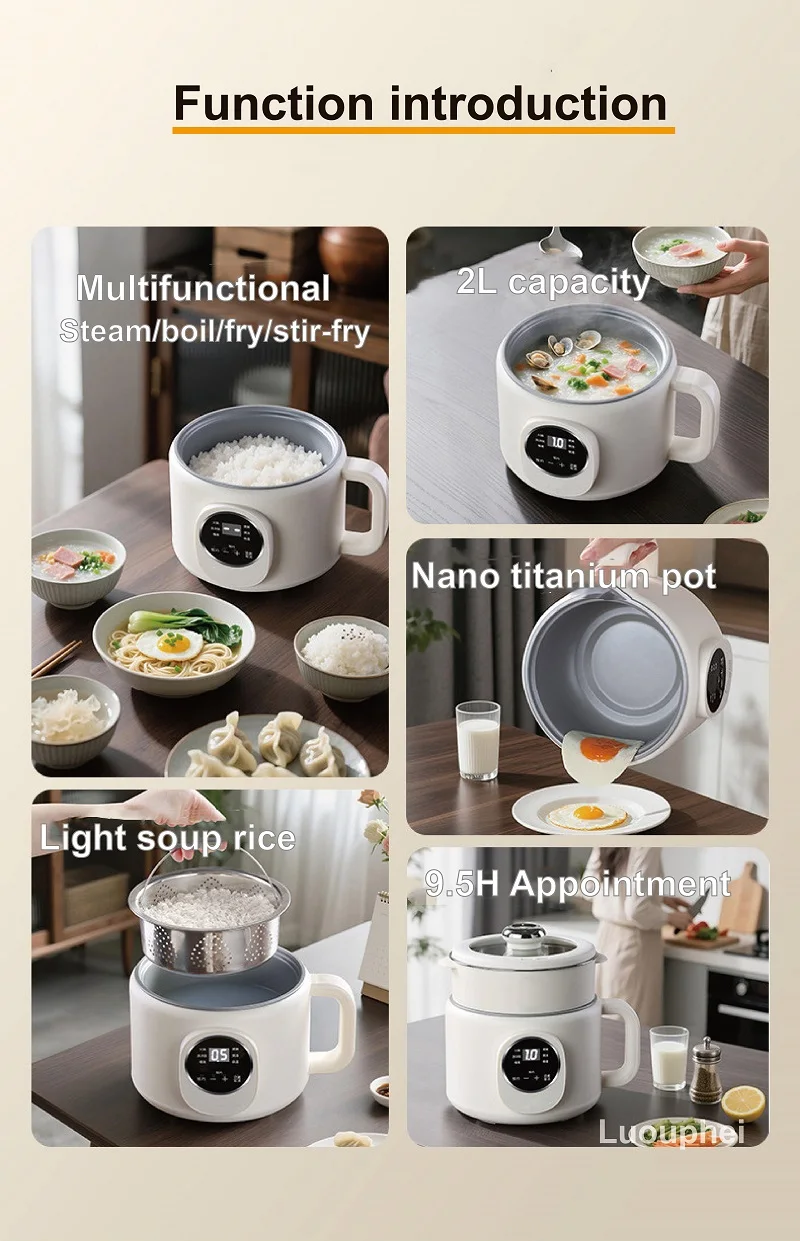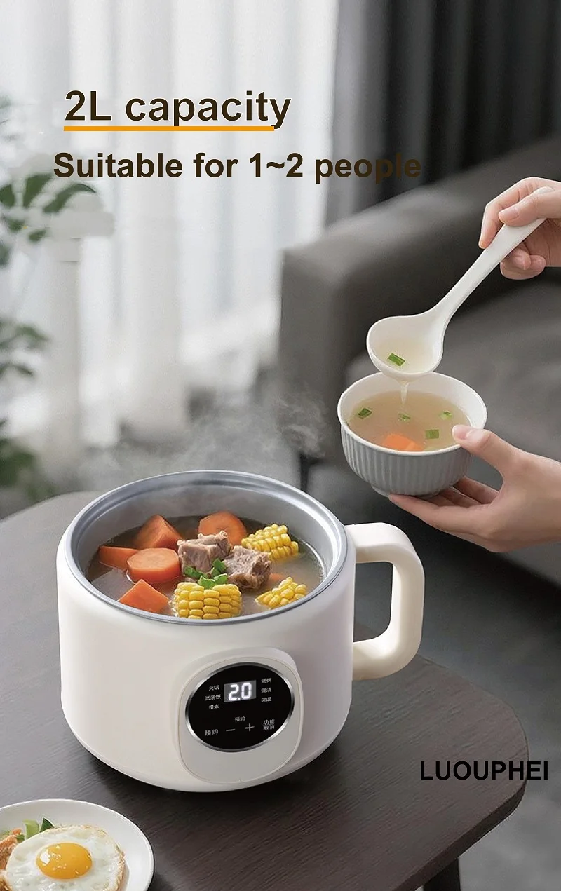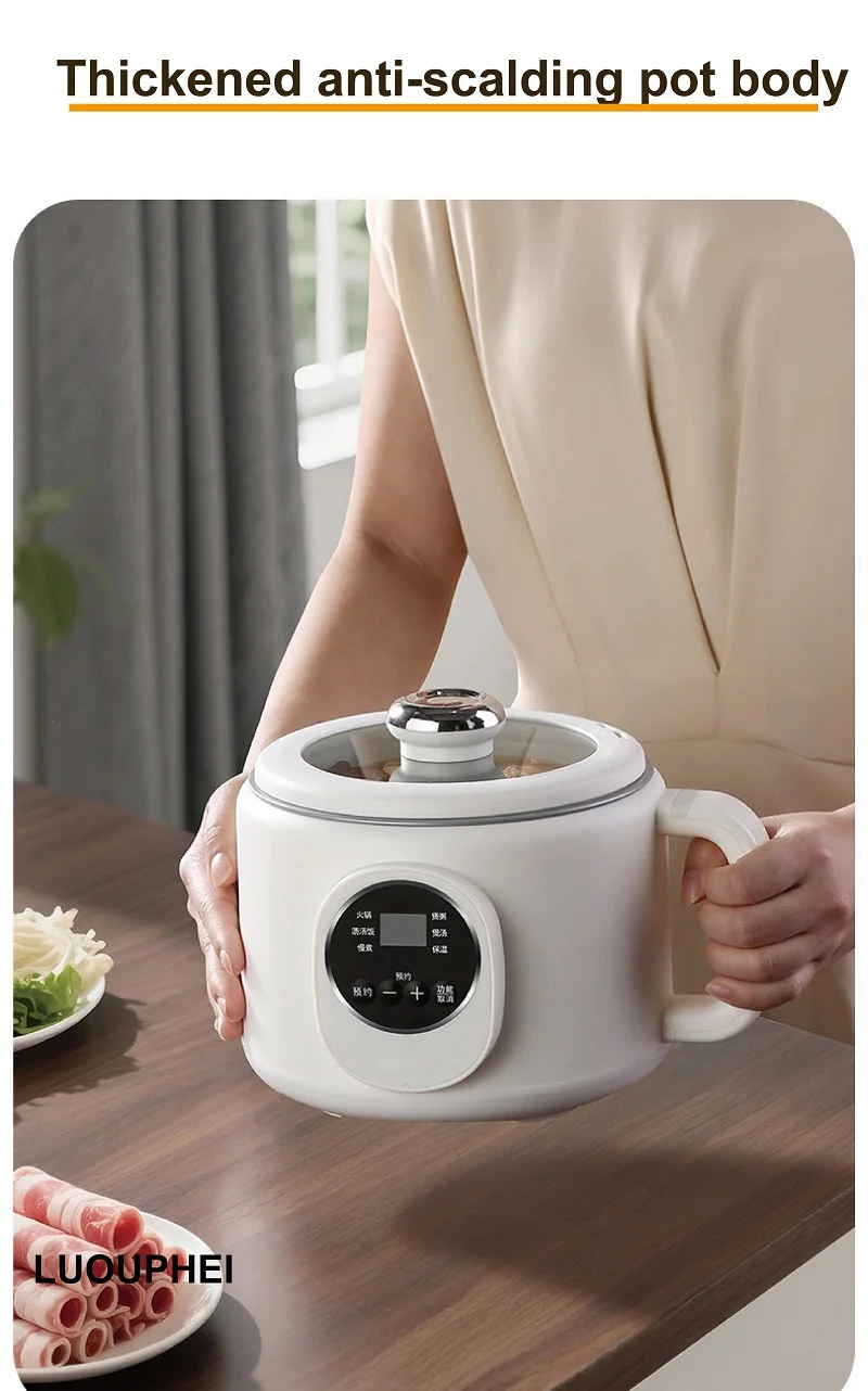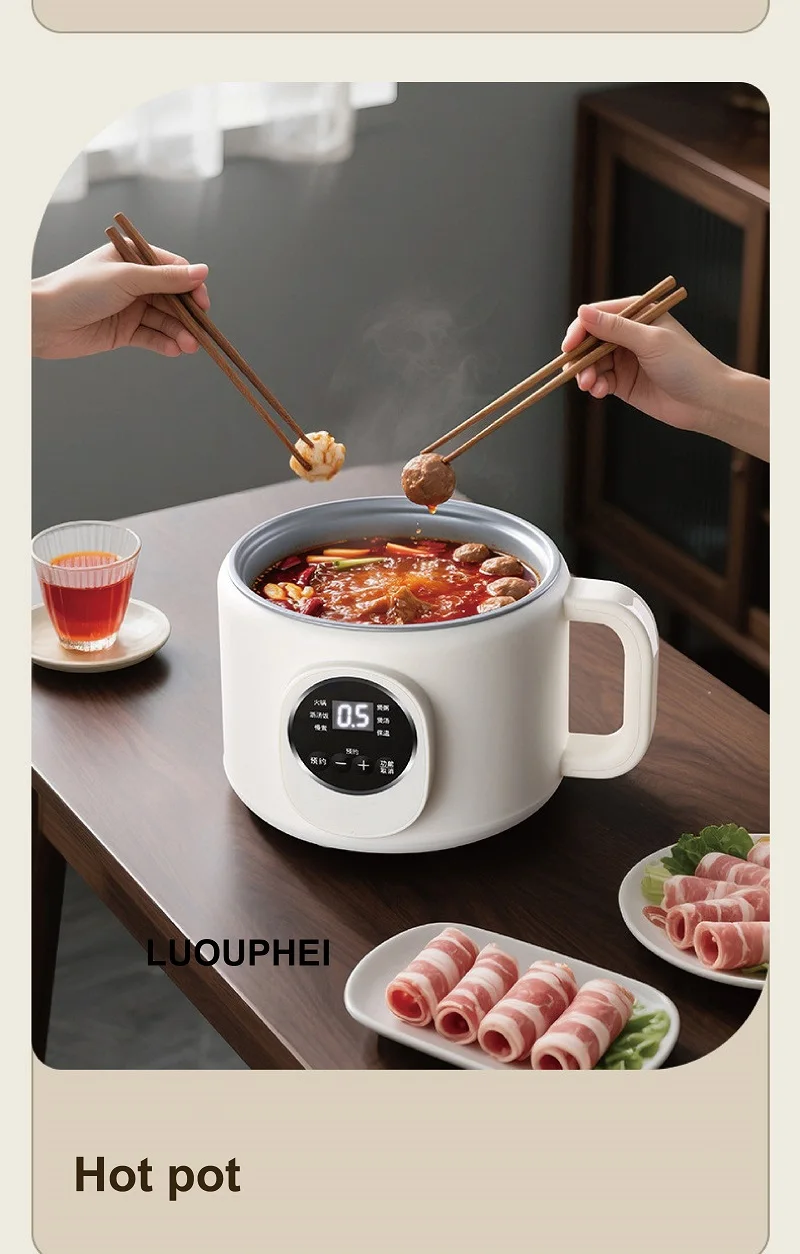 220V Multi-funzione Pentola Elettrica 2L Prenotazione Scarico Zucchero Fornello di Riso Padella Antiaderente Dormitorio Noodle Pentola Calda