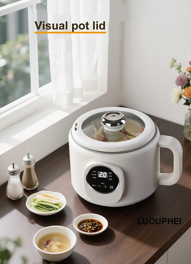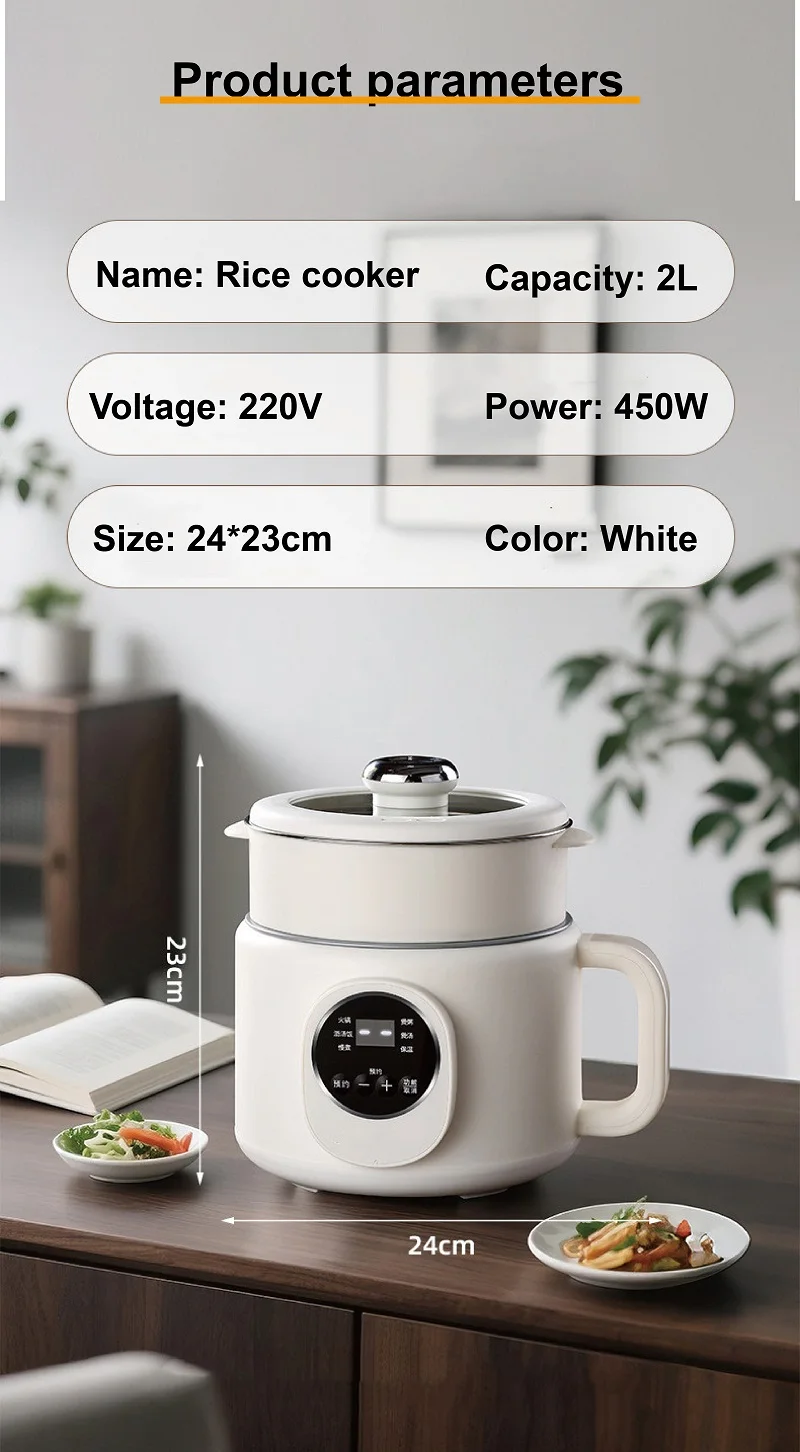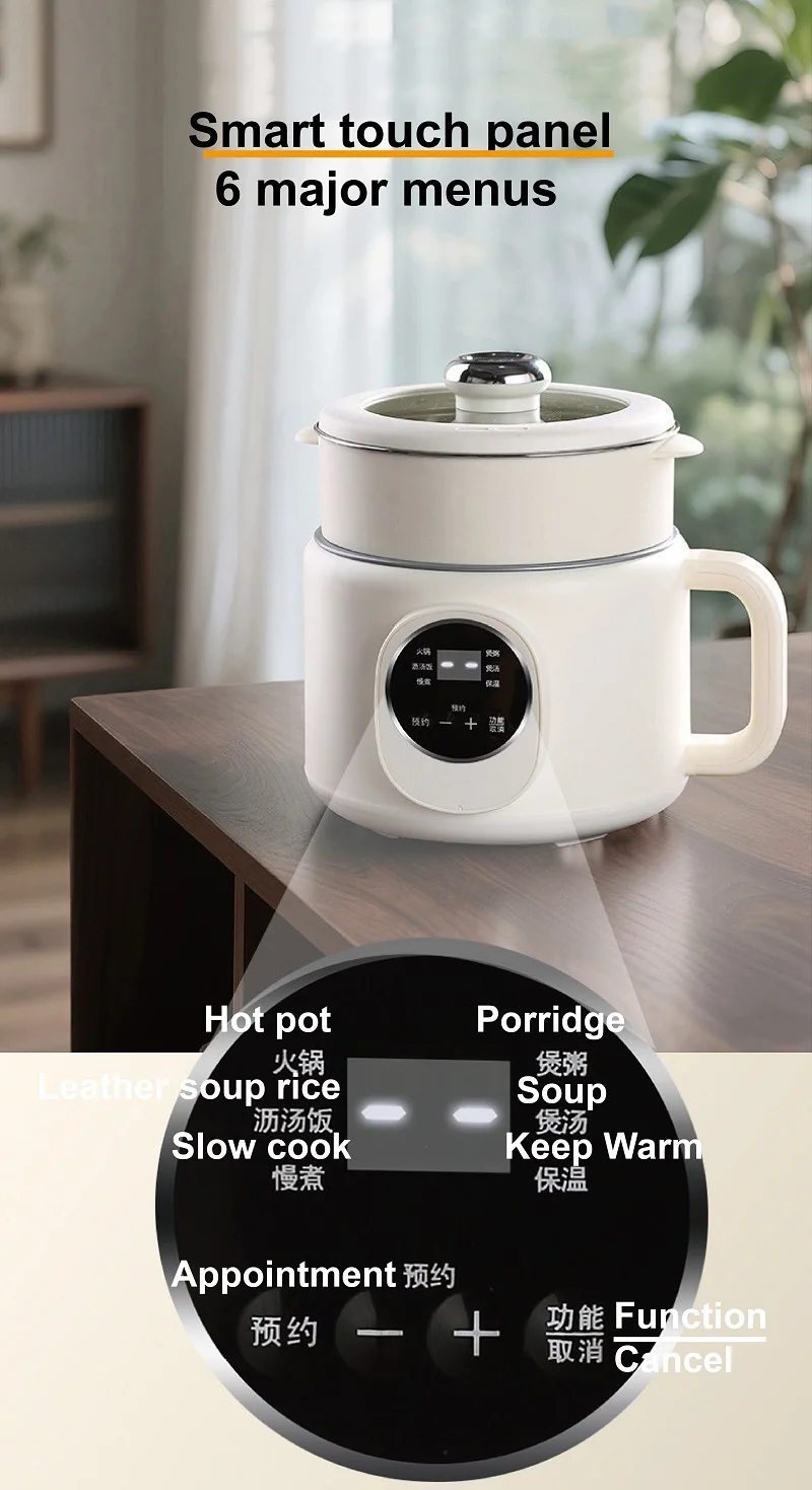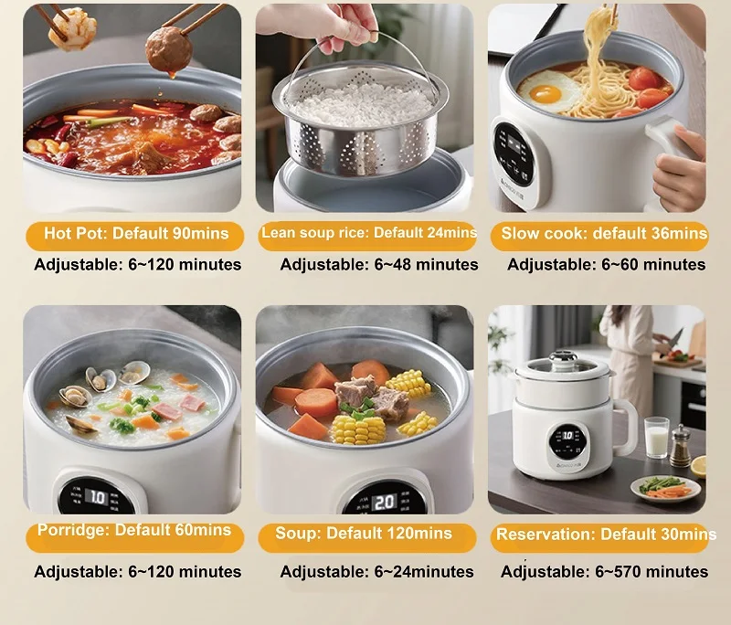 220V Multi-funzione Pentola Elettrica 2L Prenotazione Scarico Zucchero Fornello di Riso Padella Antiaderente Dormitorio Noodle Pentola Calda
