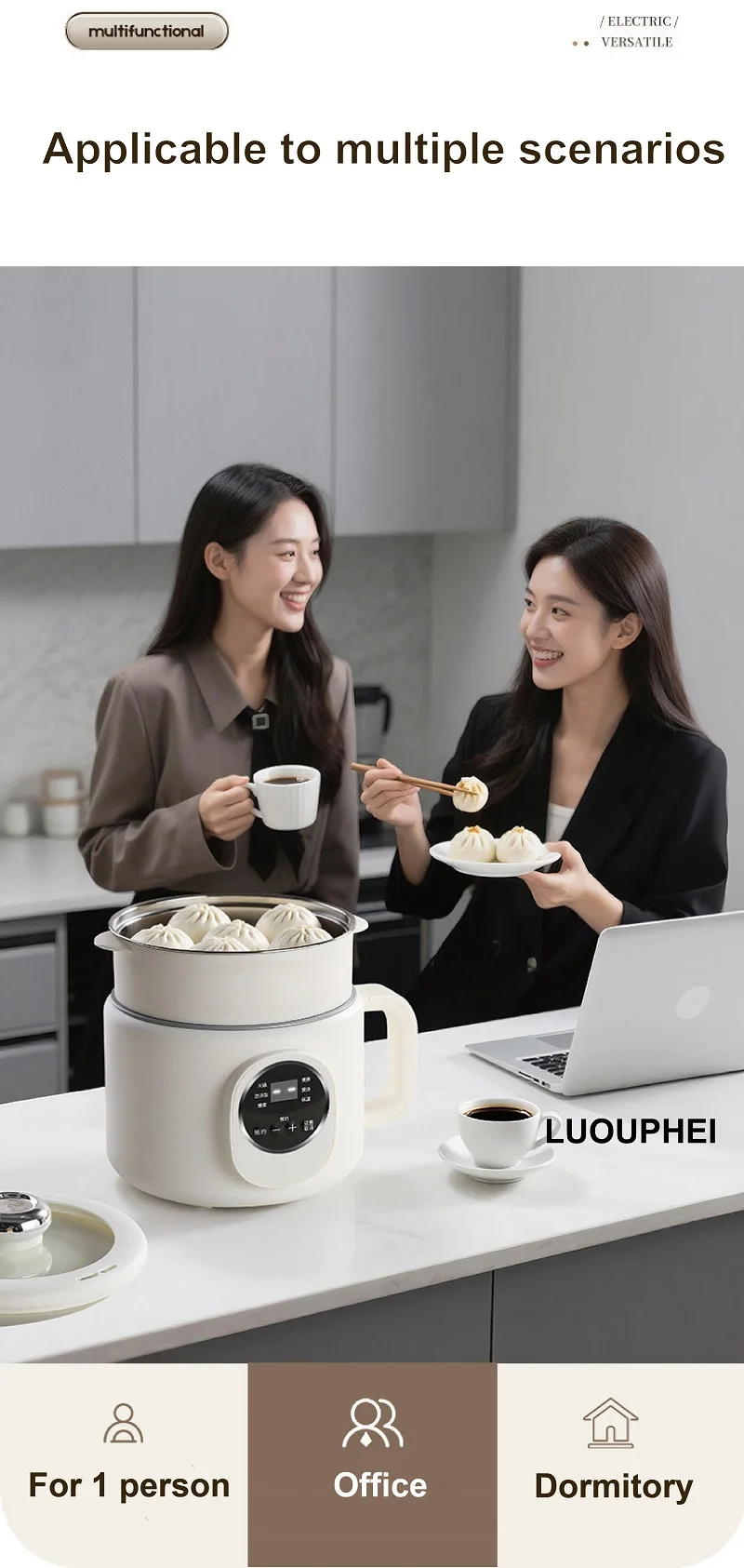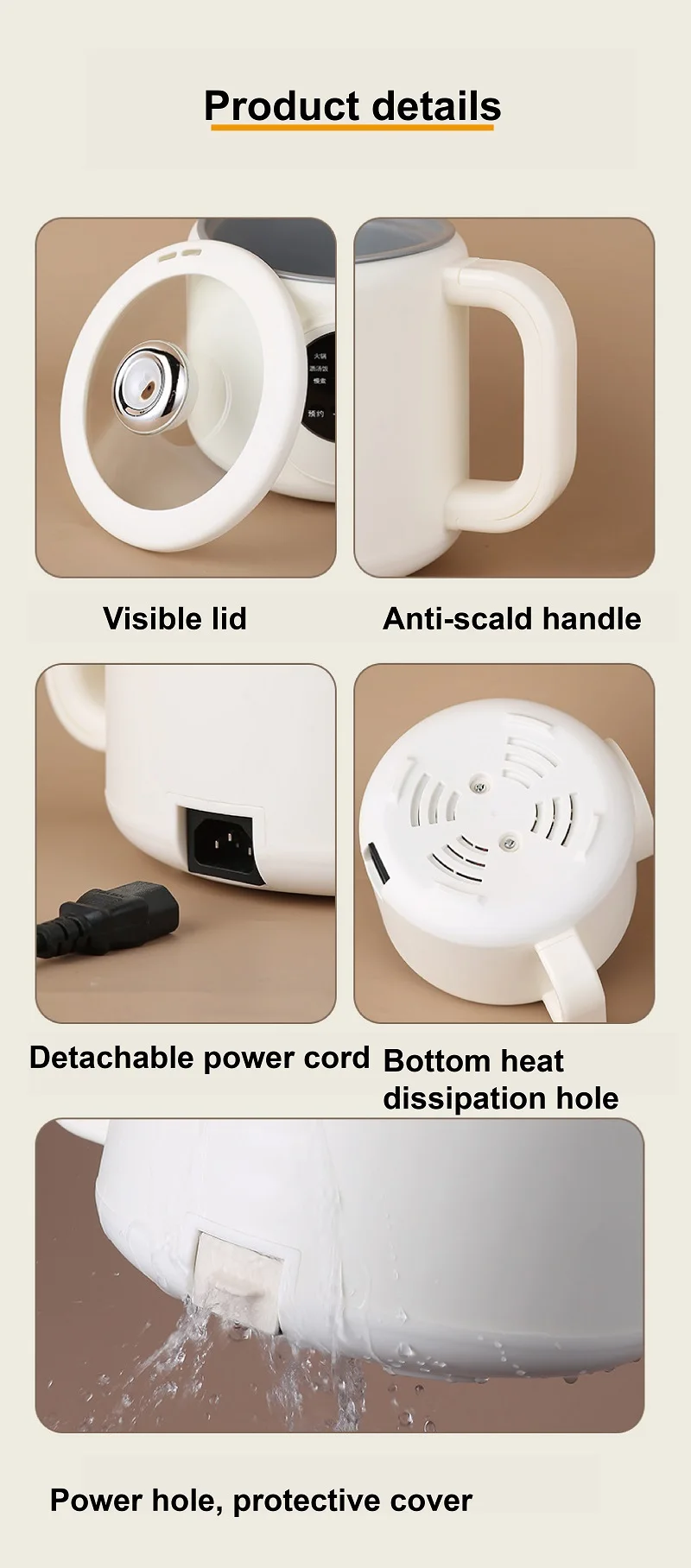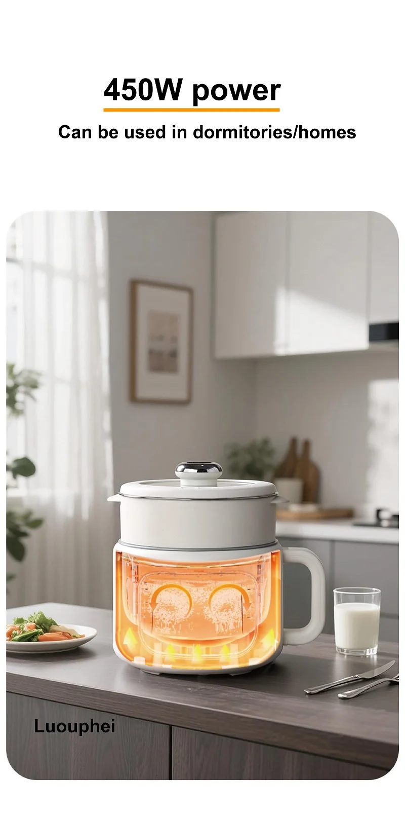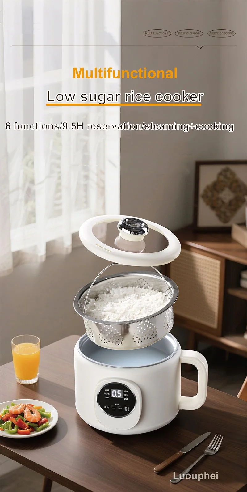 220V Multi-funzione Pentola Elettrica 2L Prenotazione Scarico Zucchero Fornello di Riso Padella Antiaderente Dormitorio Noodle Pentola Calda