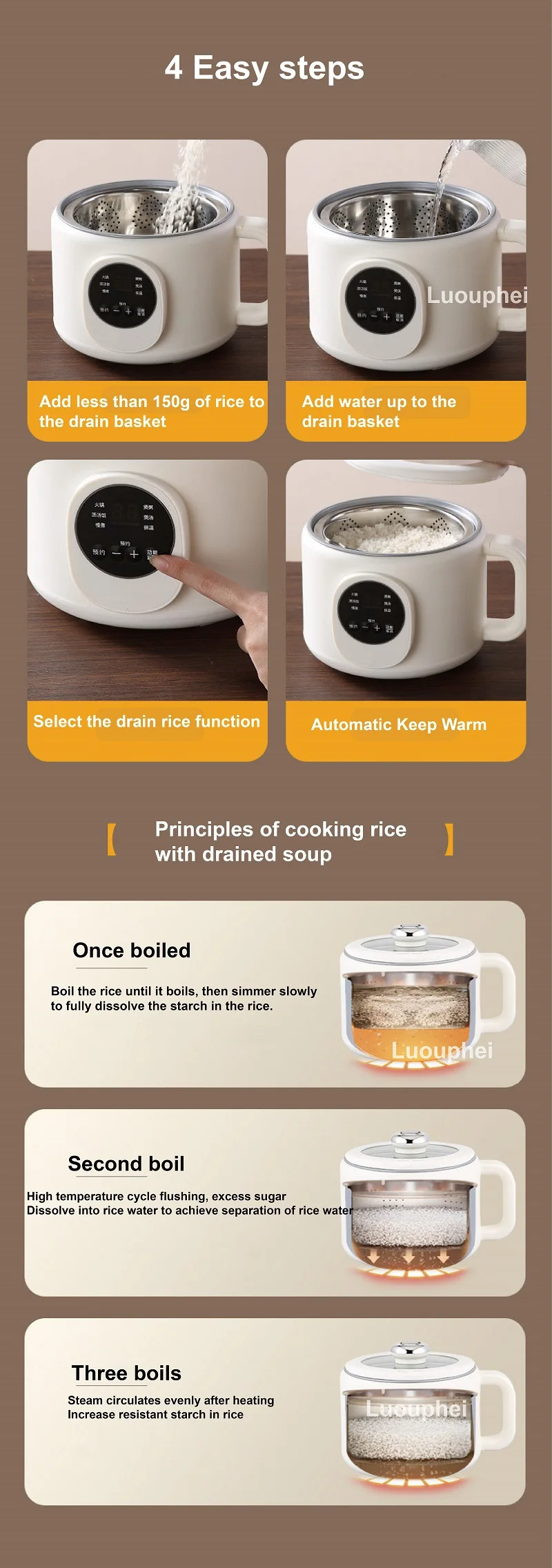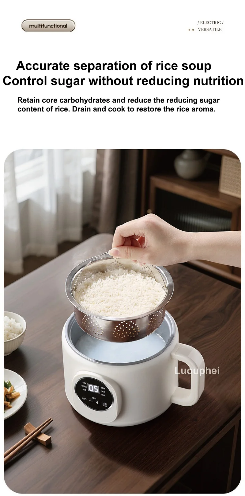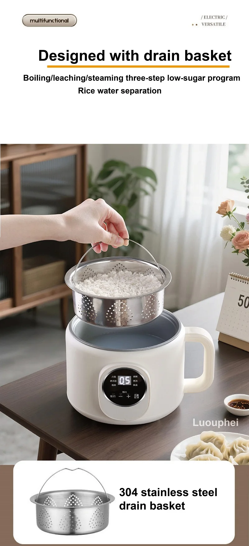 Pentola elettrica multifunzione 220V Prenotazione 2L Pentola per riso drenante di zucchero Padella antiaderente Dormitorio Pentola per noodle calda