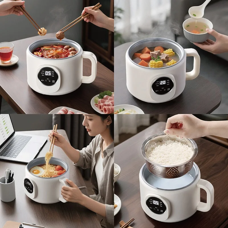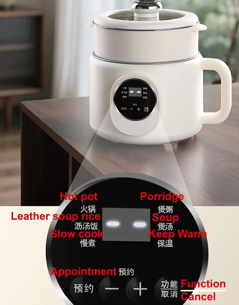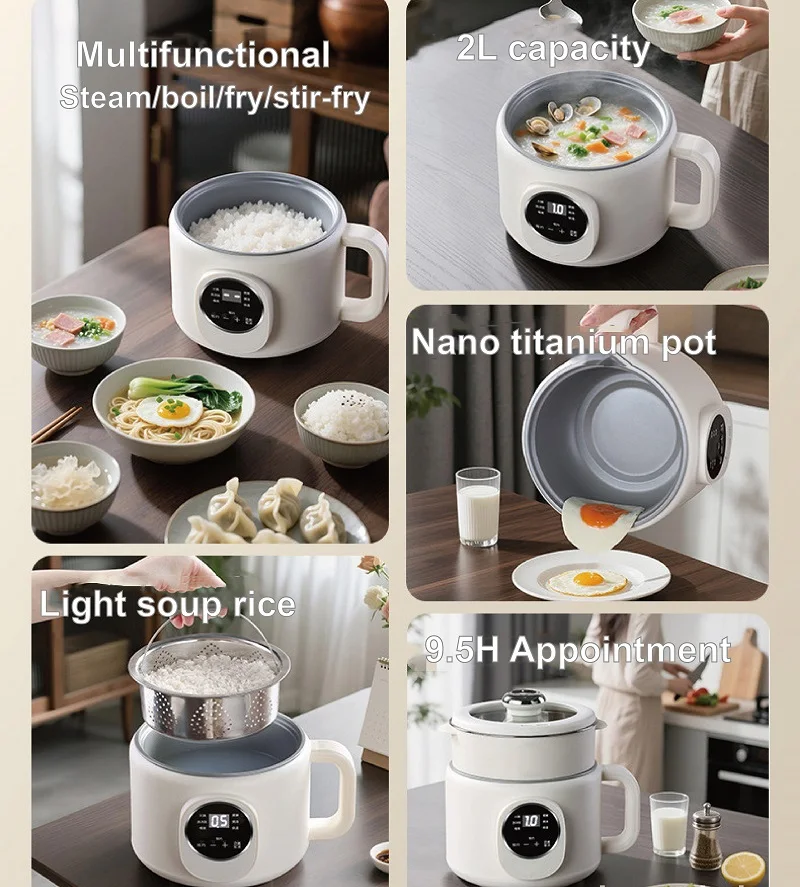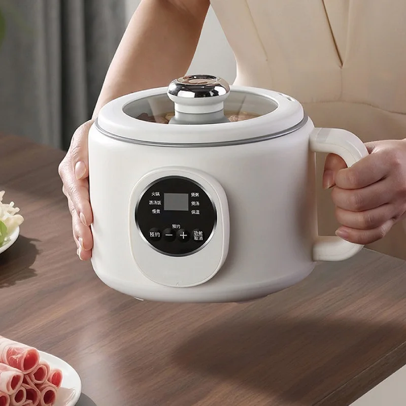 220V Multi-funzione Pentola Elettrica 2L Prenotazione Scarico Zucchero Fornello di Riso Padella Antiaderente Dormitorio Noodle Pentola Calda
