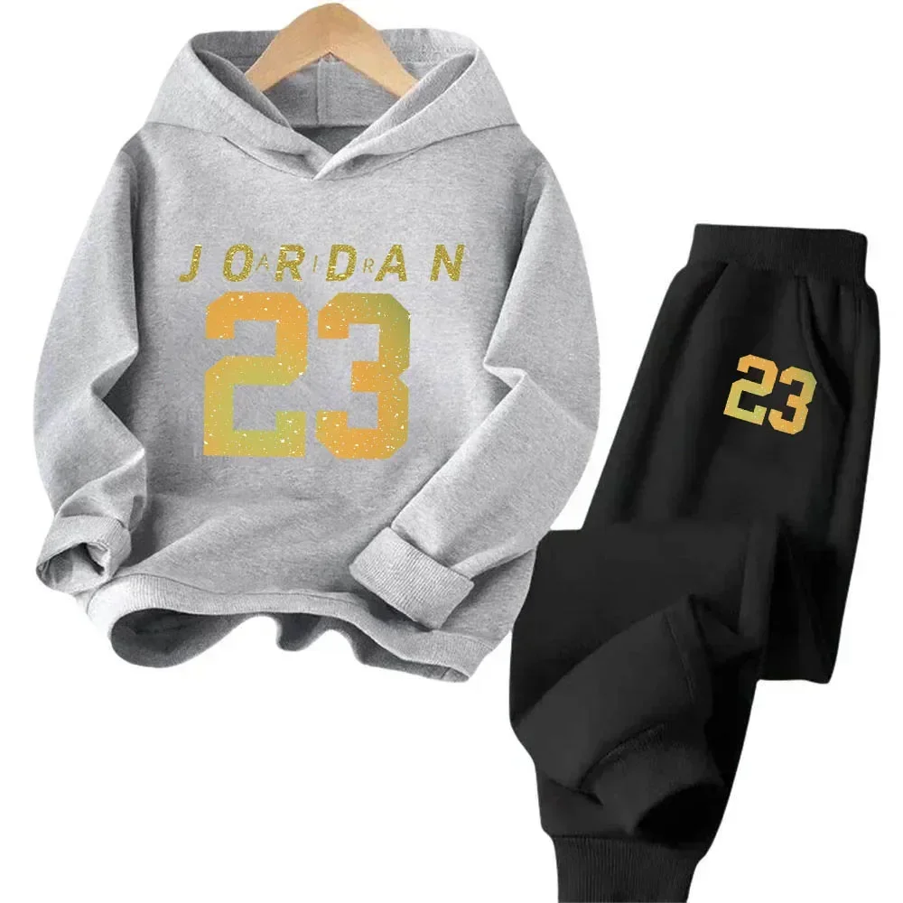 23 Felpe con cappuccio per bambini con stampa semplice da lettera Set Top e pantaloni casual comodi da ragazzo Set da 2 pezzi Sport Autunno e inverno