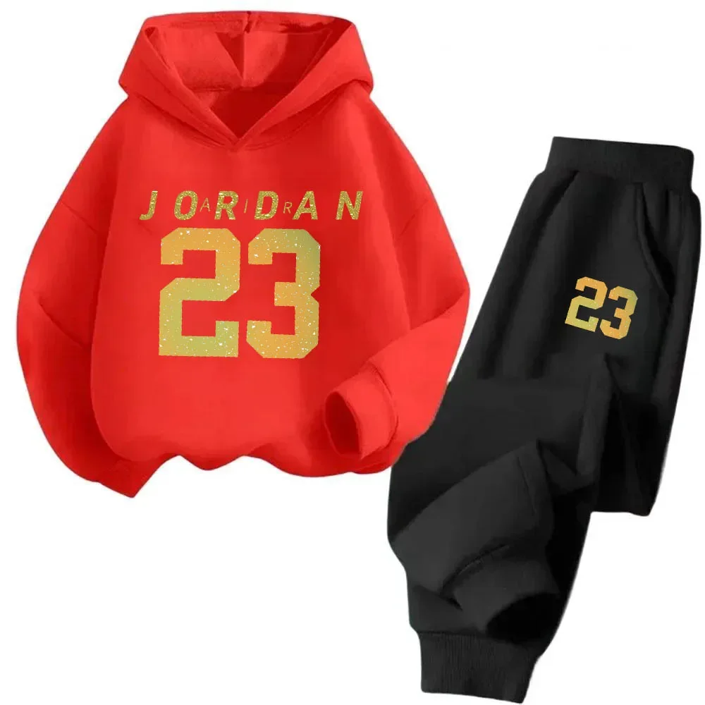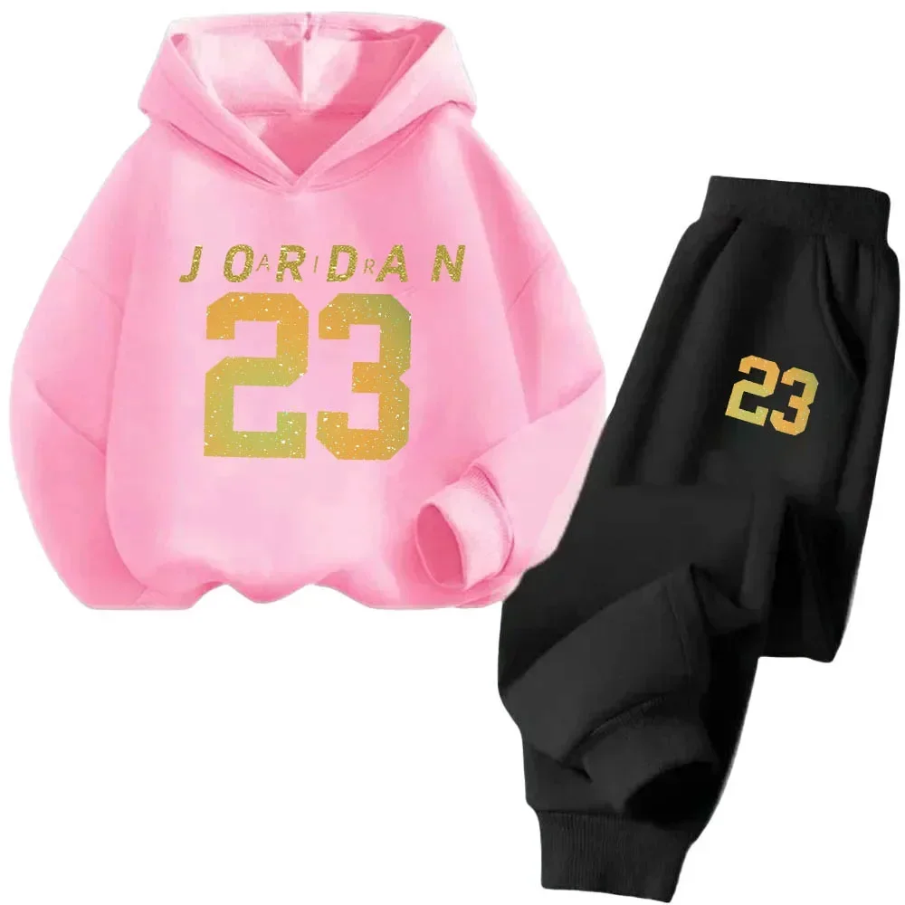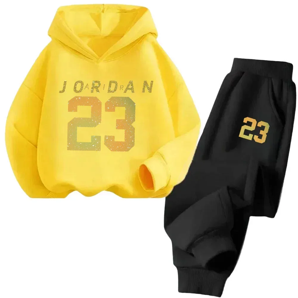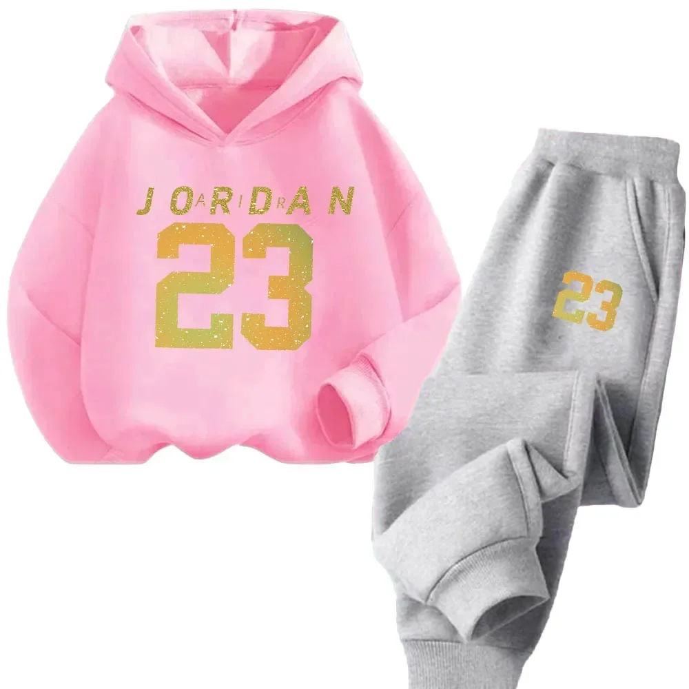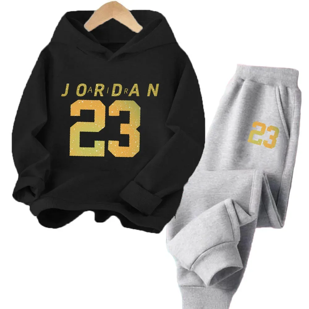 23 Felpe con cappuccio per bambini con stampa semplice da lettera Set Top e pantaloni casual comodi da ragazzo Set da 2 pezzi Sport Autunno e inverno