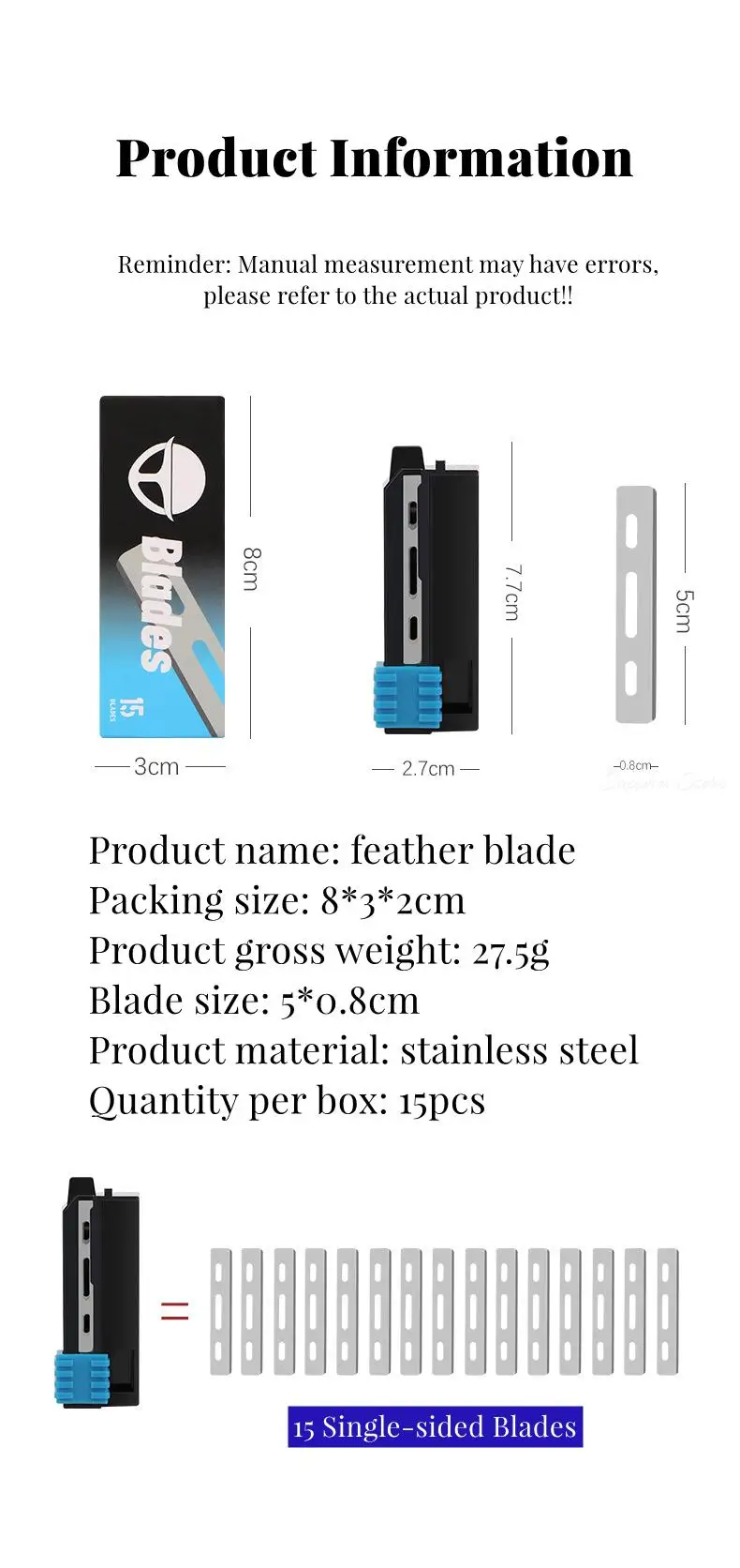 24 lame di rasoio in acciaio inossidabile pz/scatola con lame a spinta su un lato per rasoio di piume Unsex utilizzato per la depilazione da barba