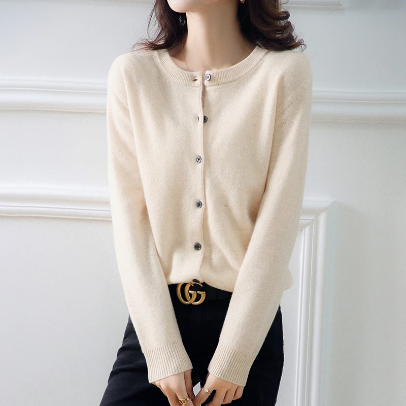24 Primavera e Autunno Nuovo Cardigan lavorato a maglia girocollo Maglione sottile da donna Maglione di lana stile occidentale allentato e versatile Top C