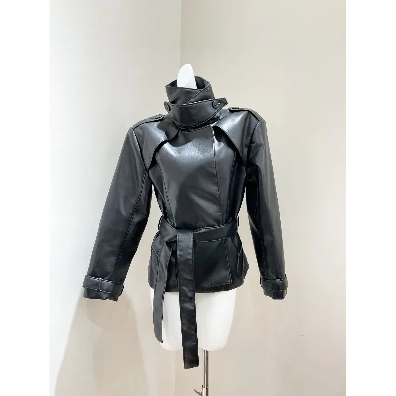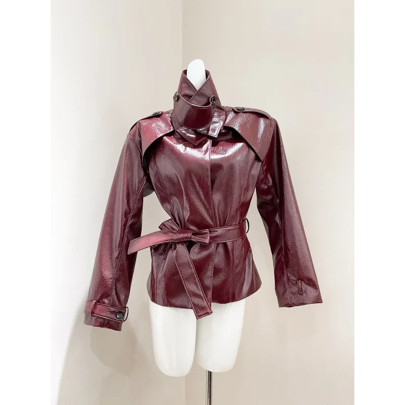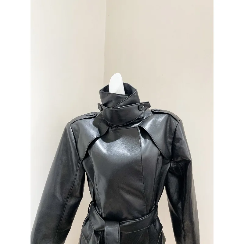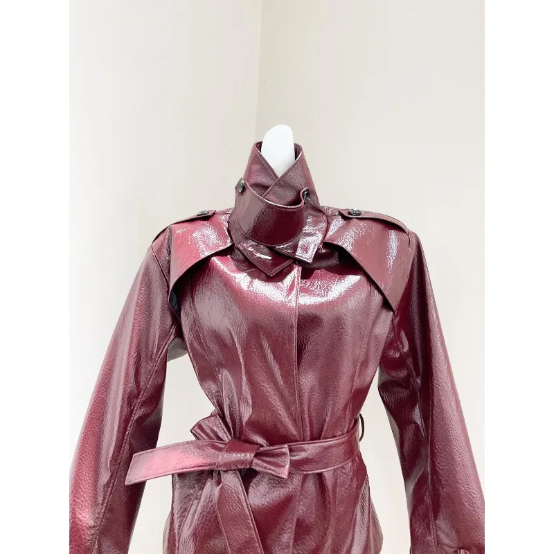 25 Autunno Inverno Millennium High Street Y2K Giacca in pelle su misura con colletto alto in pelle con motivo litchi bello