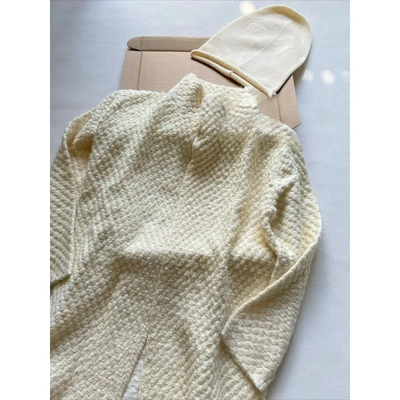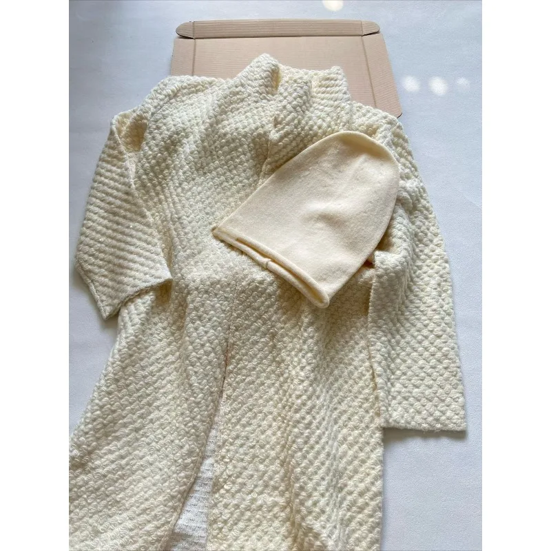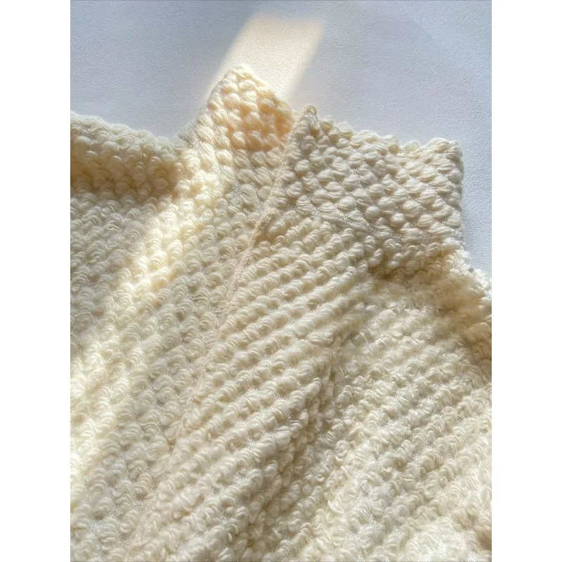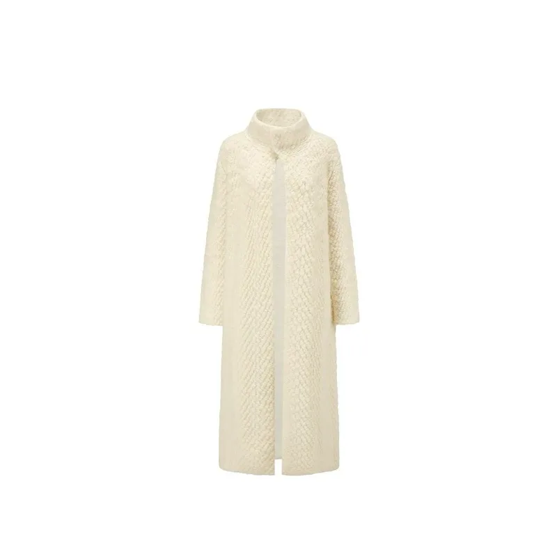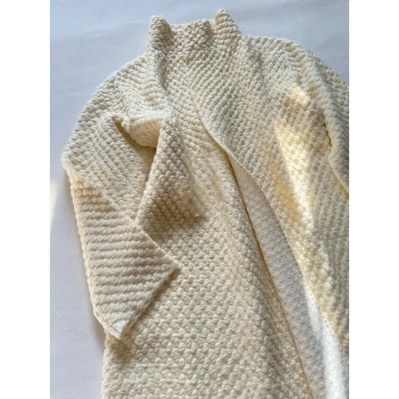 25 Cappotto lungo lavorato a maglia jacquard nuvola con risvolto caldo alla moda autunno e inverno