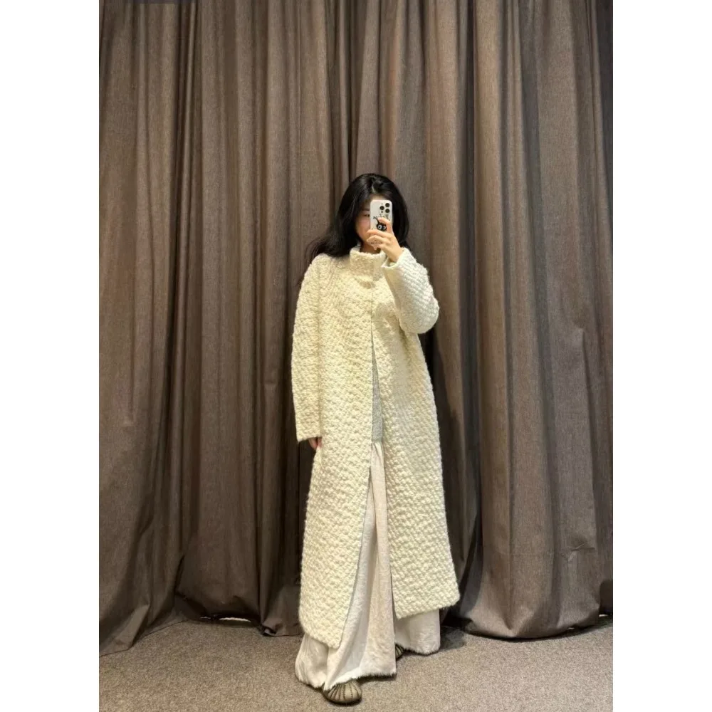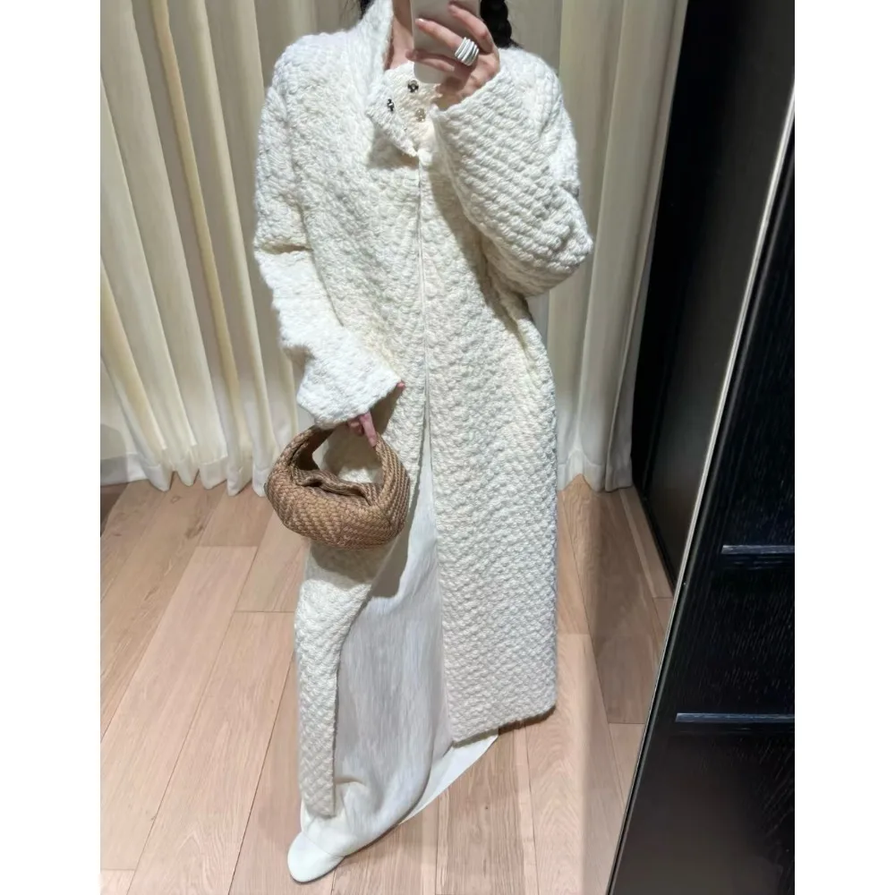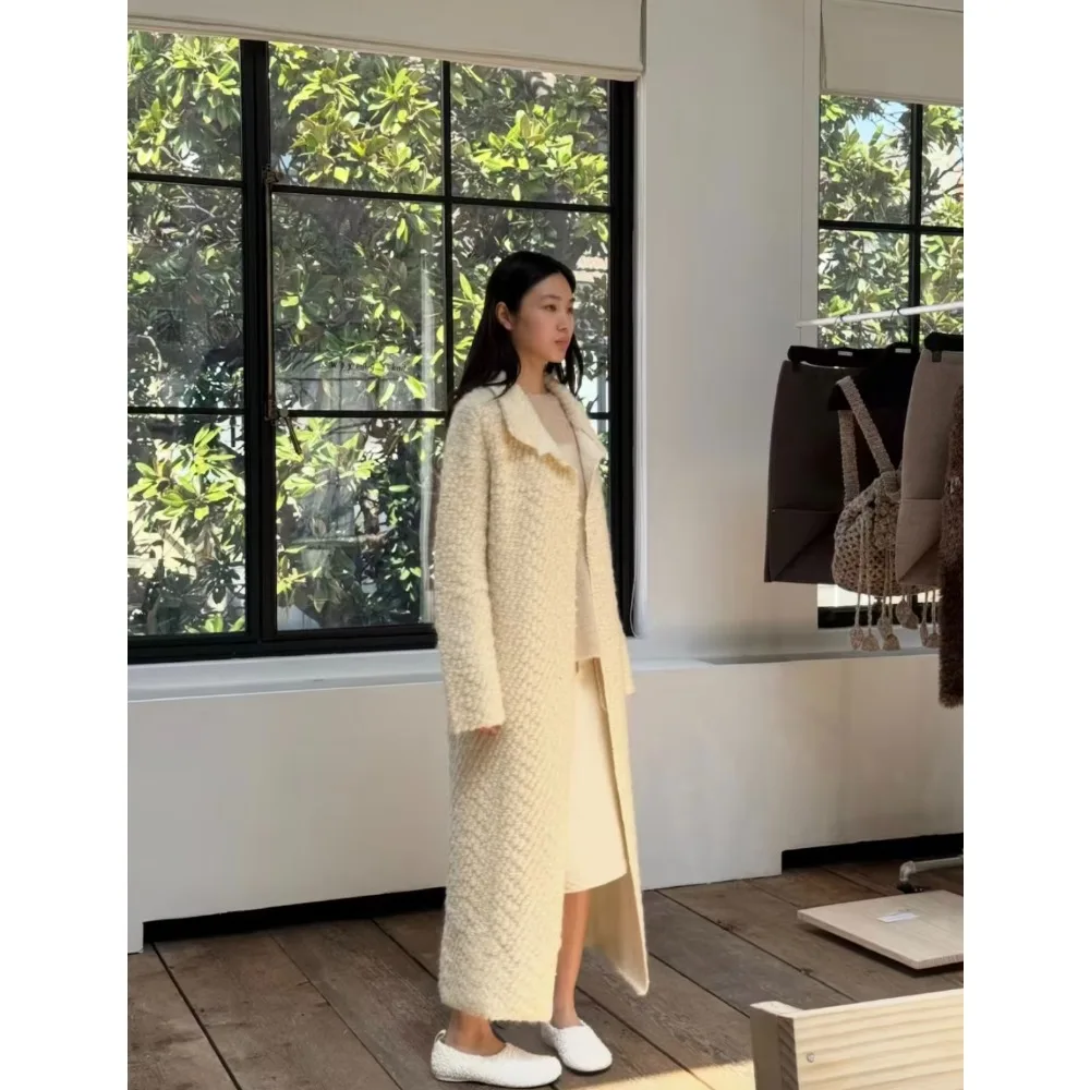 25 Cappotto lungo lavorato a maglia jacquard nuvola con risvolto caldo alla moda autunno e inverno