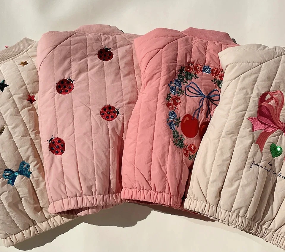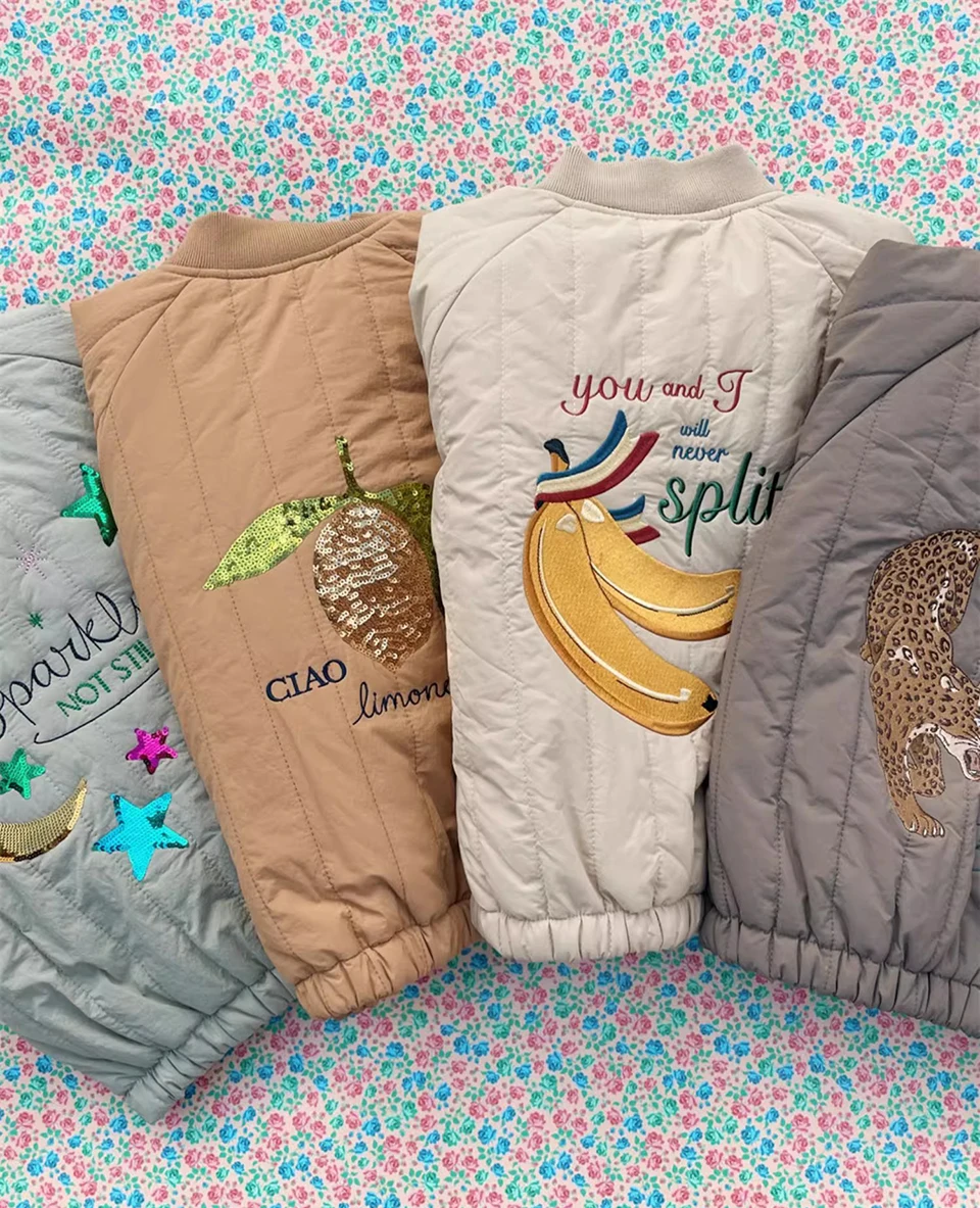 2025 Cappotti in pile di cotone caldo con paillettes per bambine Giacca in lana d’agnello per bambini Cappotto ricamato per ragazzi Capispalla per bambini