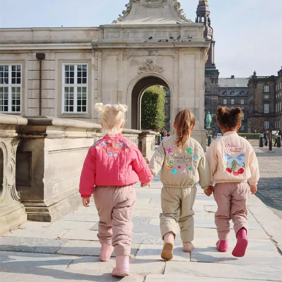 2025 Cappotti in pile di cotone caldo con paillettes per bambine Giacca in lana d’agnello per bambini Cappotto ricamato per ragazzi Capispalla per bambini